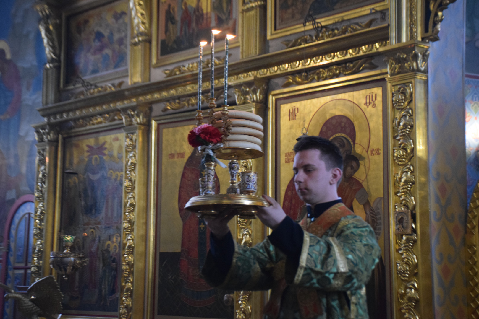 На чтении праздничного канона Преосвященный Владыка помазывал молящихся освященным елеем. Число подошедших к елеопомазанию составило 317 человек.