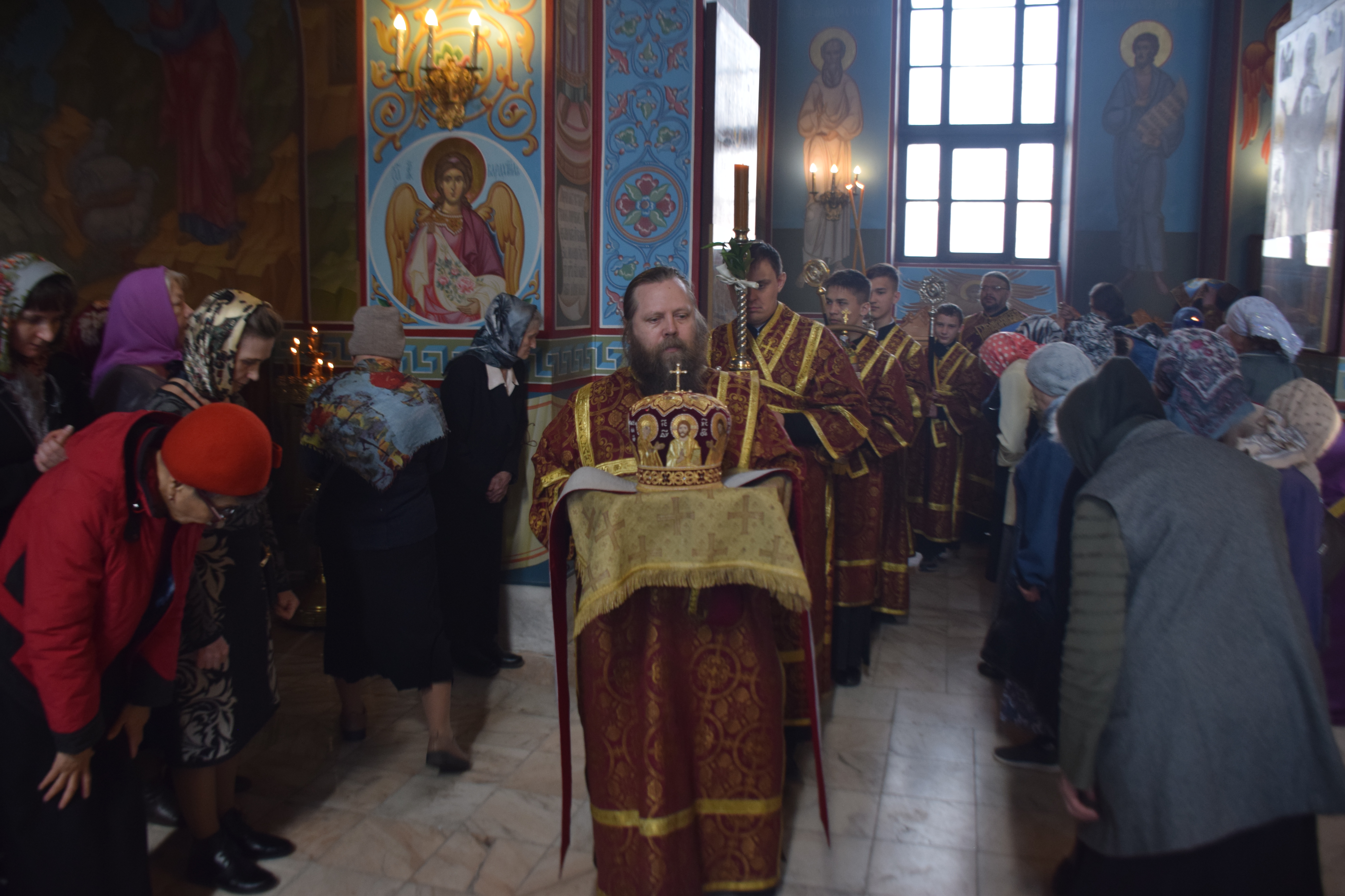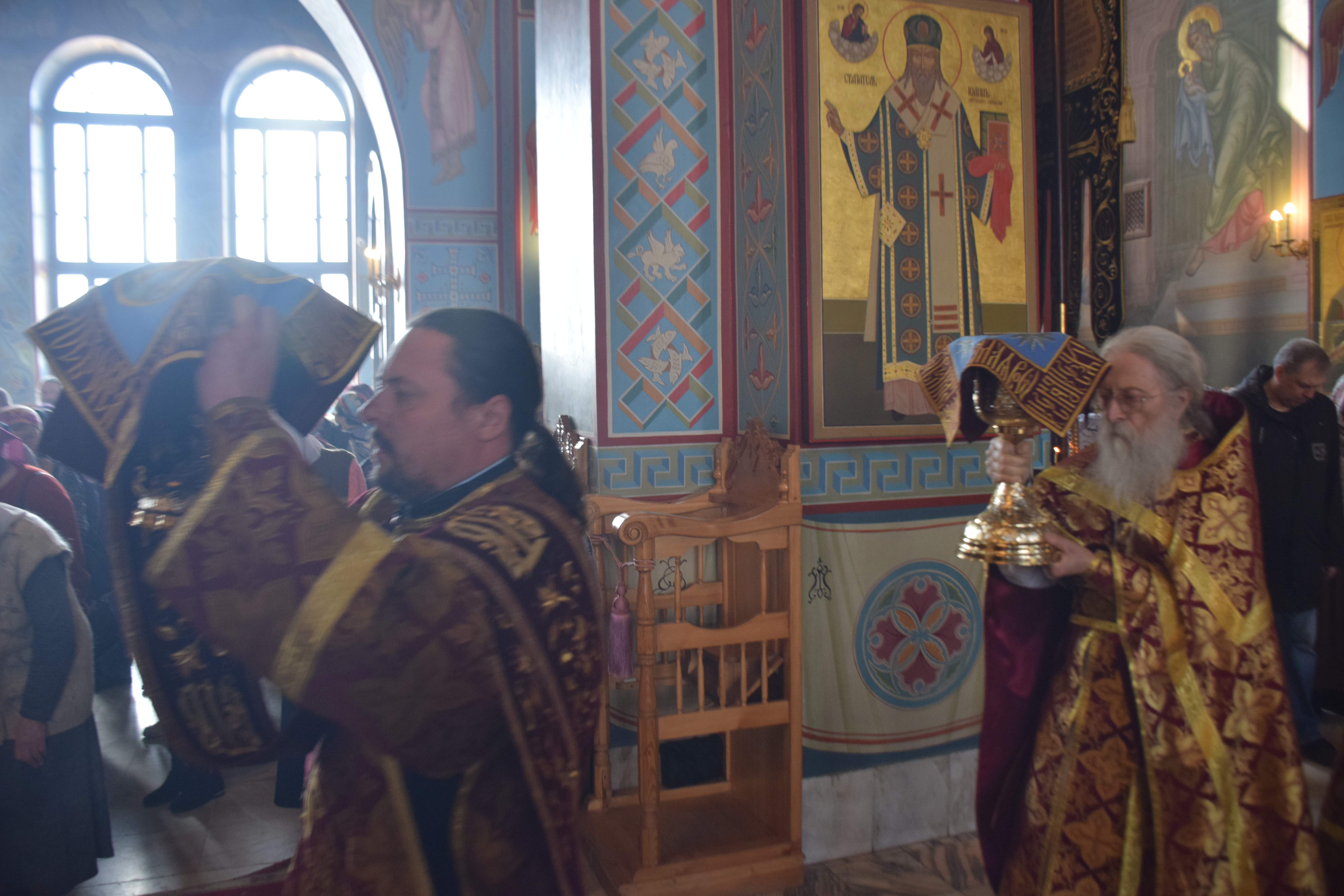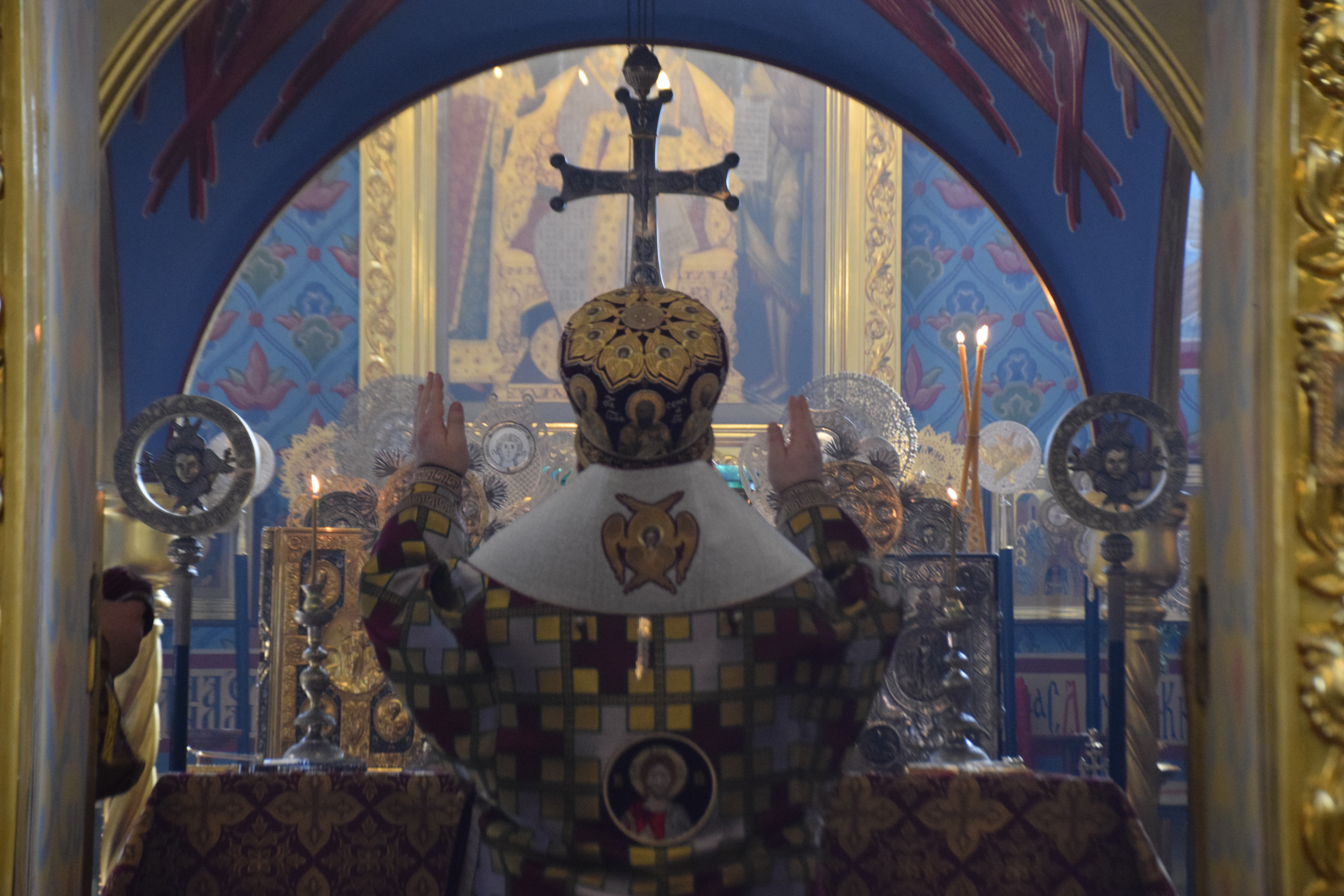 Владыке сослужили протоиерей Геннадий Фаст и соборные клирики в пресвитерском и диаконском сане. Литургические песнопения исполнил архиерейский хор собора. Проповедь по запричастном стихе произнес отец Геннадий.