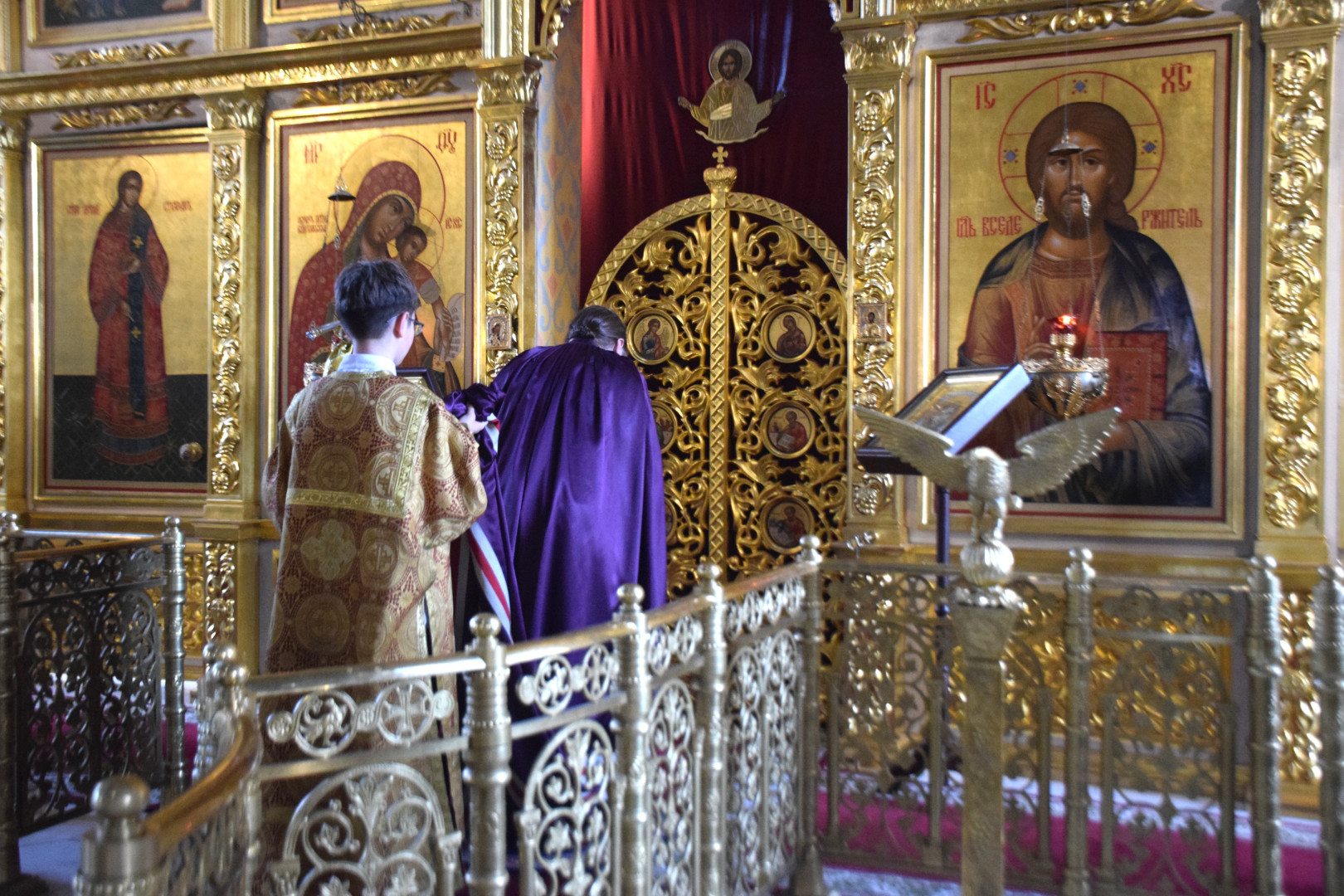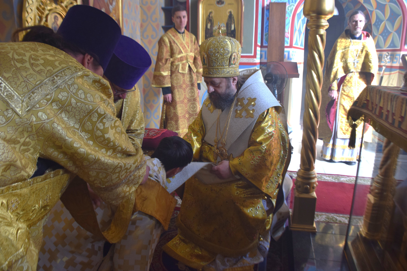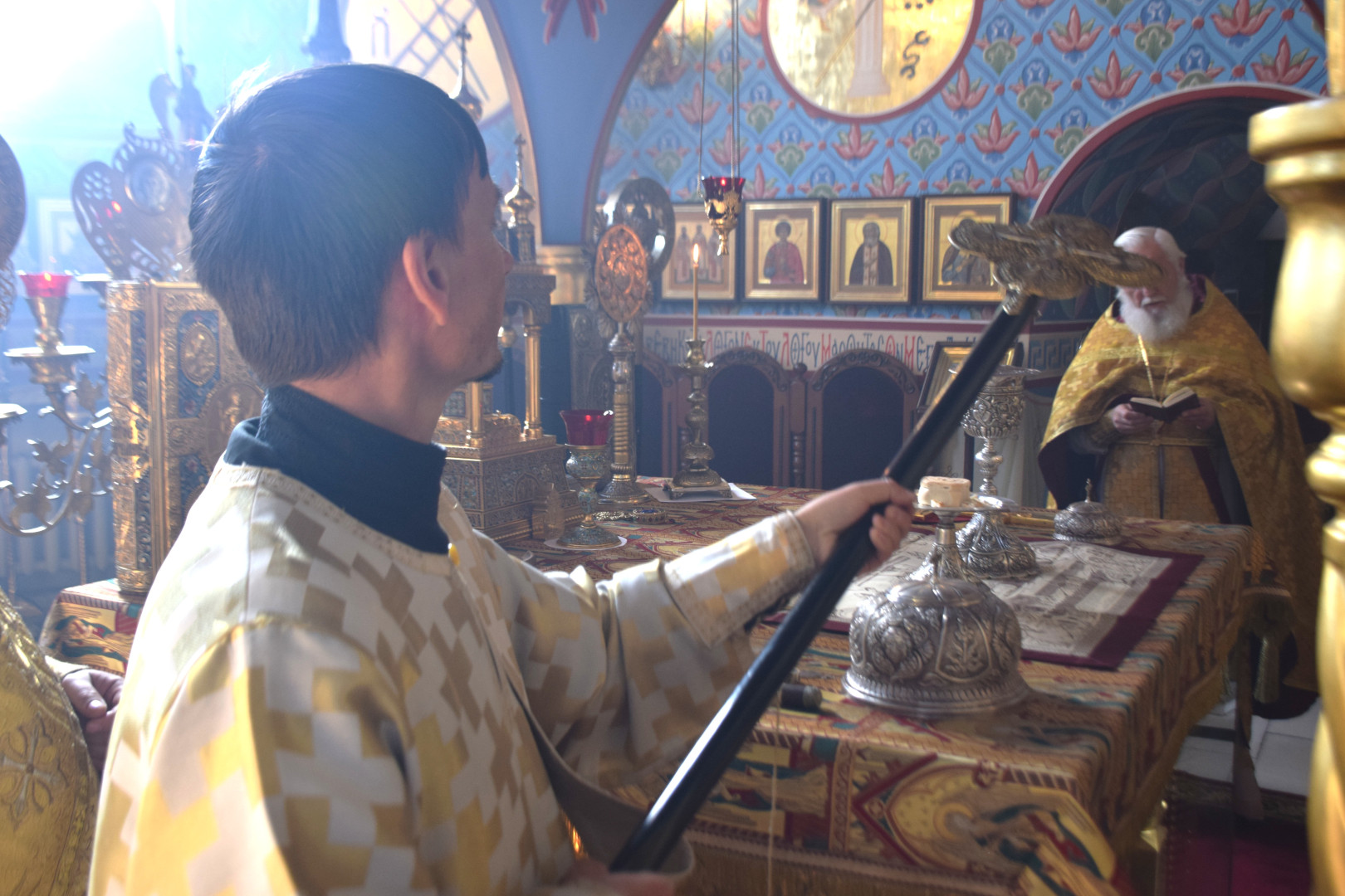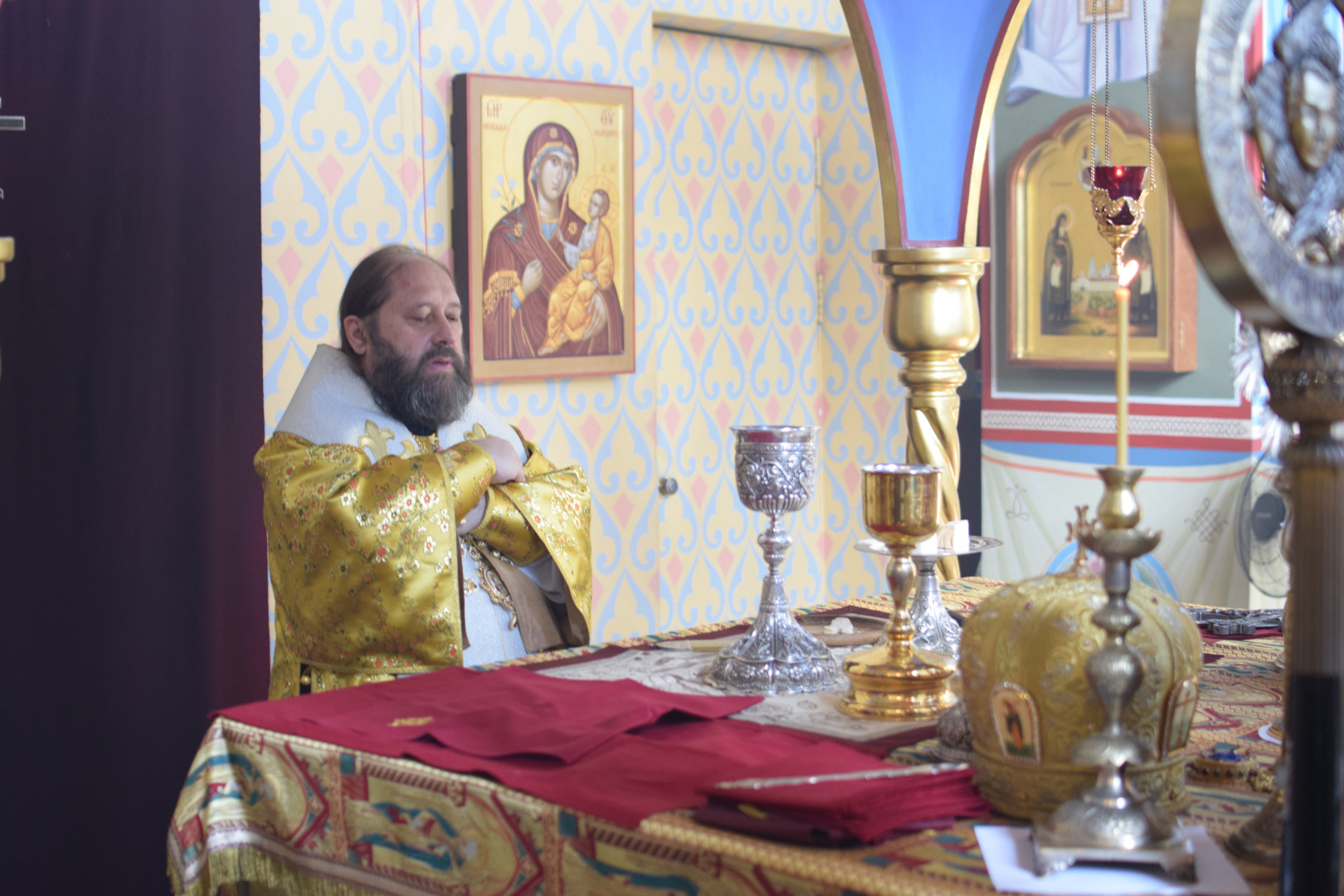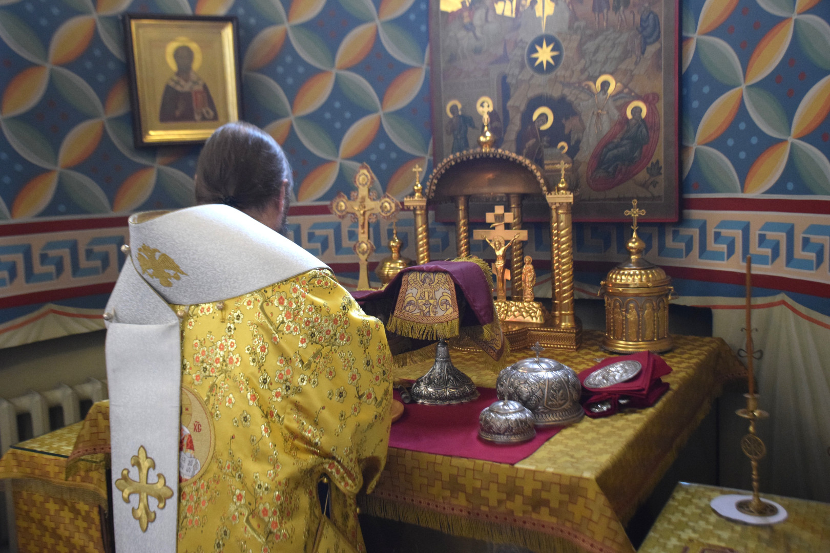 Владыке сослужили протоиерей Иоанн Будзар и священник Павел Кузьмин. Диаконское служение совершали протодиакон Андрей Ермаков, диакон Сергий Симонов и иеродиакон Нестор (Рыбин).