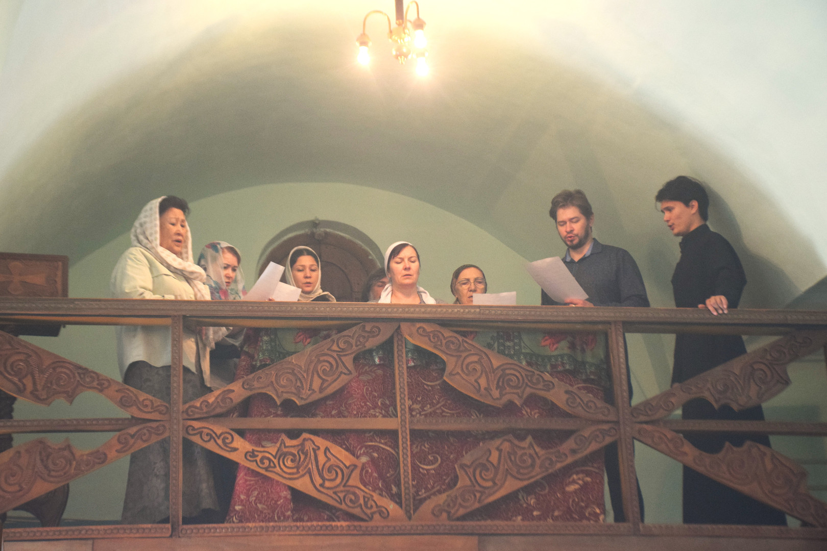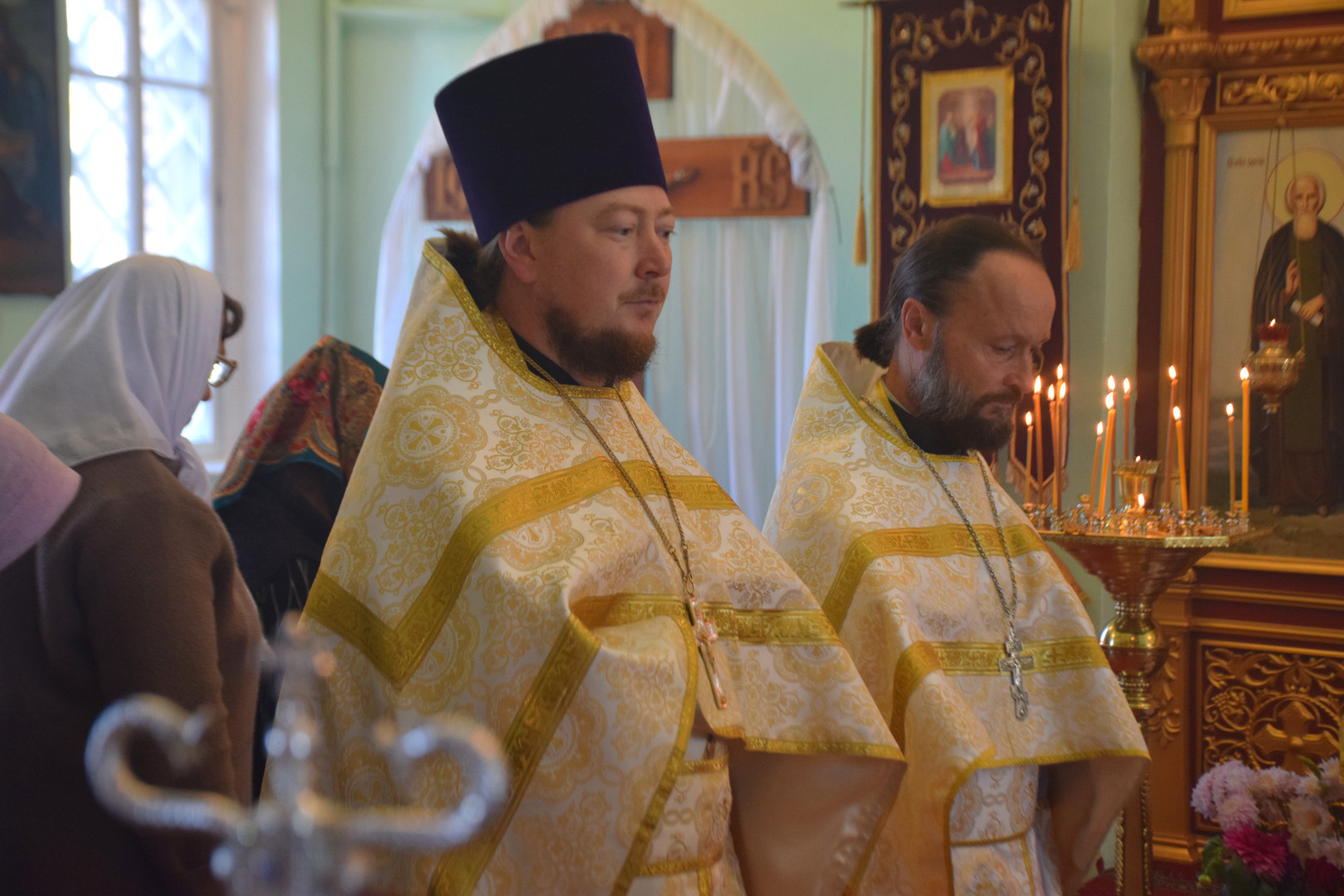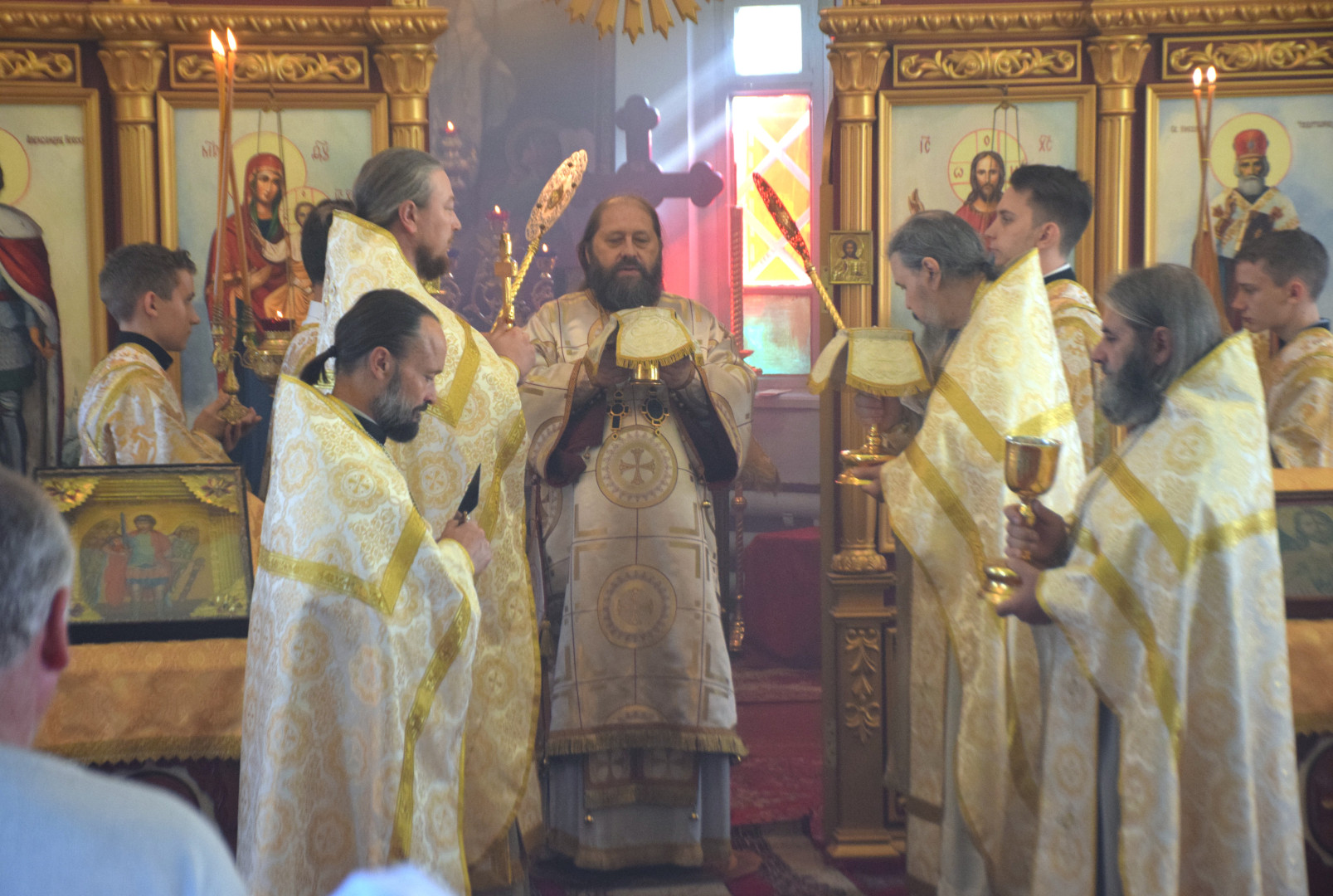 Архипастырю сослужили благочинный Северного округа и настоятель храма игумен Лазарь (Казанцев), священники Андрей Спирин, Владимир Костенко и Владимир Старшов. Диаконский чин составили протодиакон Андрей Ермаков и диакон Сергий Симонов. Песнопения Литургии исполнила группа архиерейского хора под управлением Марии Ермаковой.