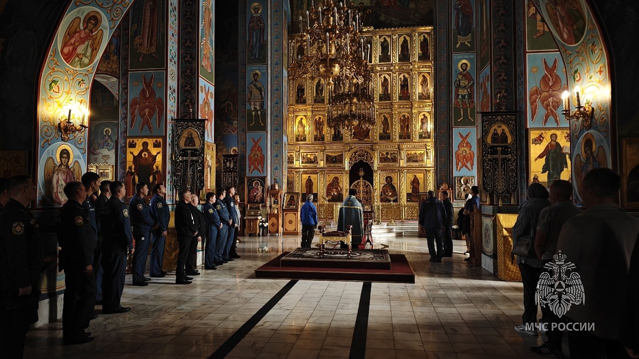 В храме присутствовали руководство Главного управления МЧС России по Хакасии и личный состав подведомственных учреждений: спасатели Южно-Сибирского поисково-спасательного отряда МЧС России, огнеборцы Хакасии, студенты Училища олимпийского резерва, обучающиеся на факультете «Пожарная безопасность», горноспасатели.
