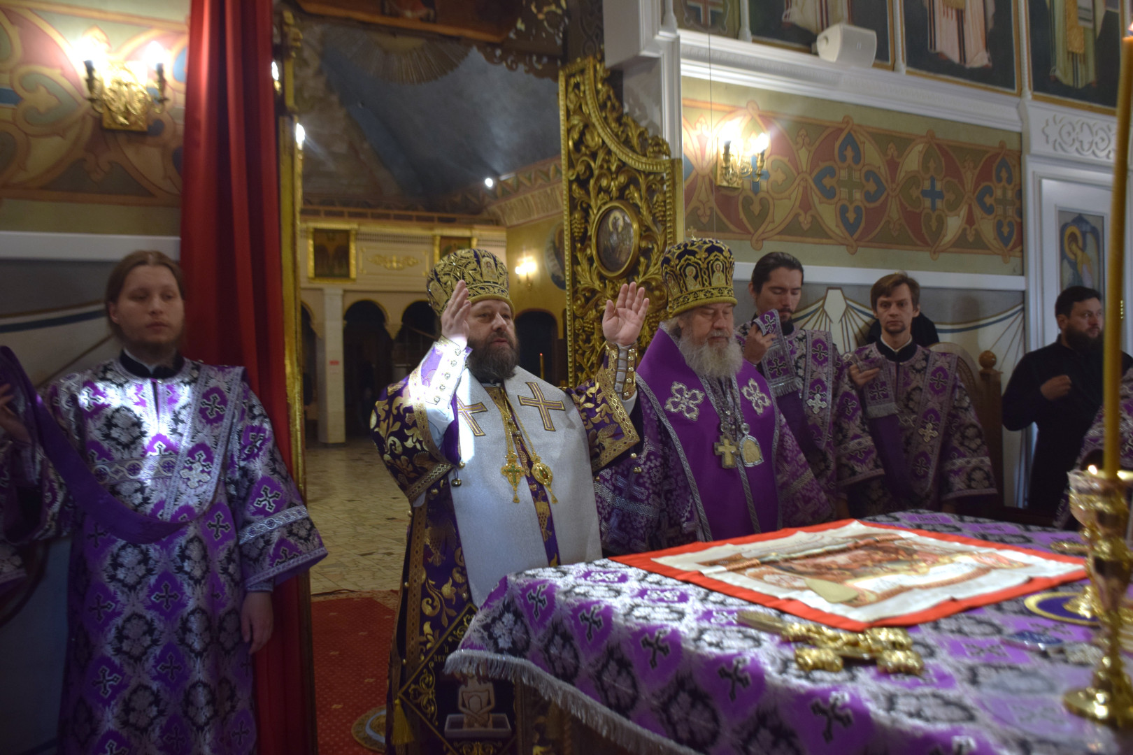 По благословению Святейшего Патриарха Московского и всея Руси Кирилла богослужение возглавили архиепископ Абаканский и Хакасский Ионафан и епископ Елецкий и Лебедянский Максим.