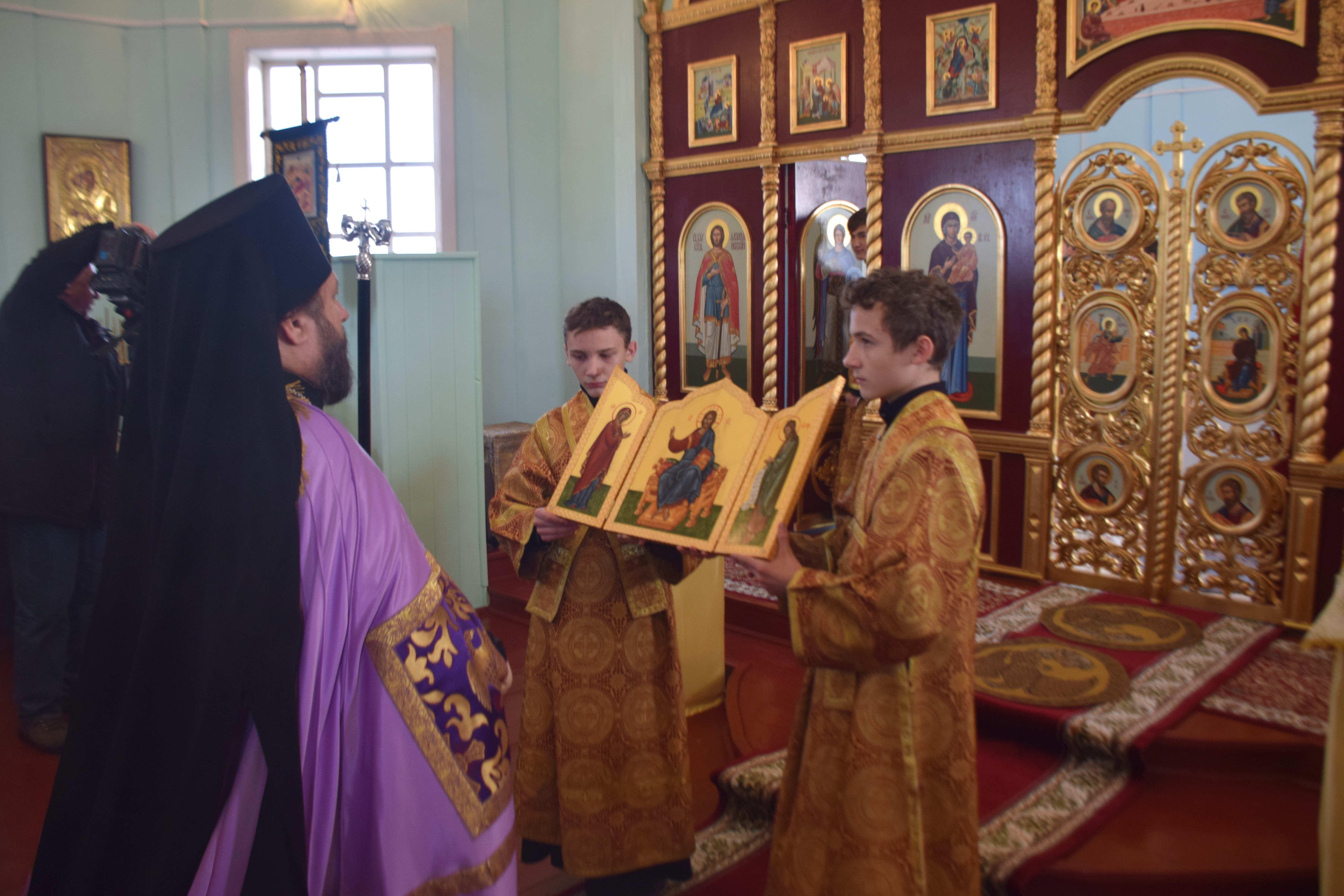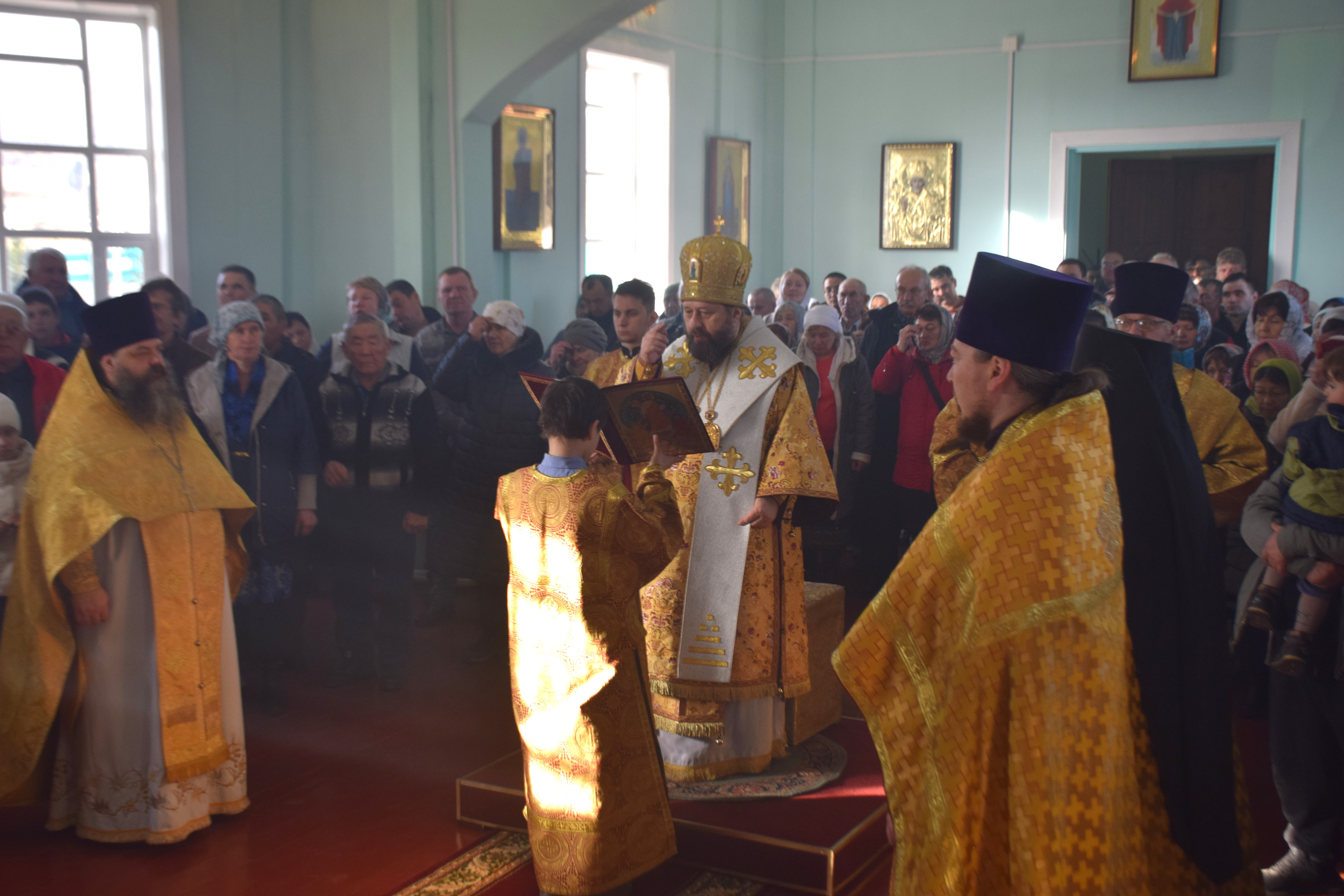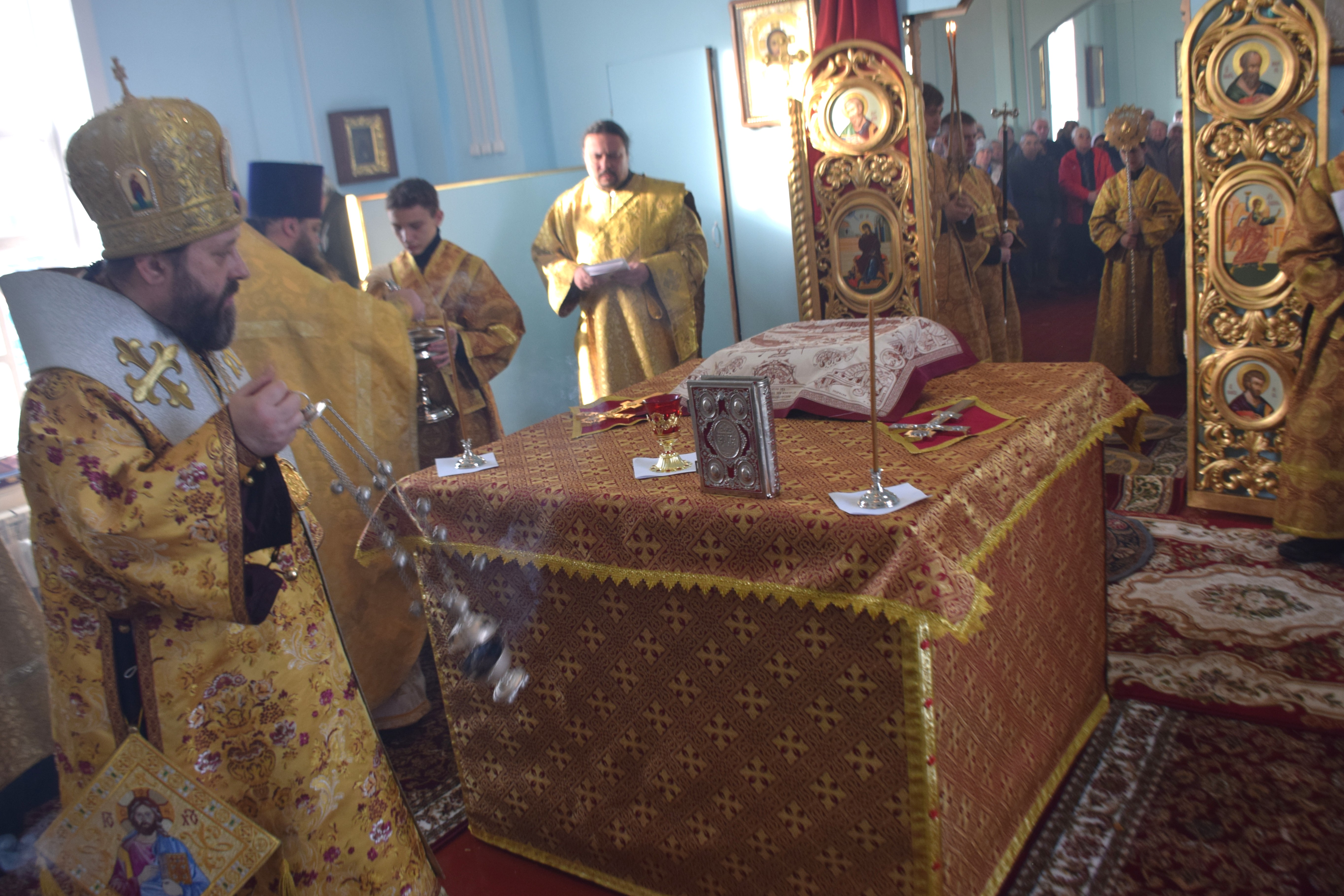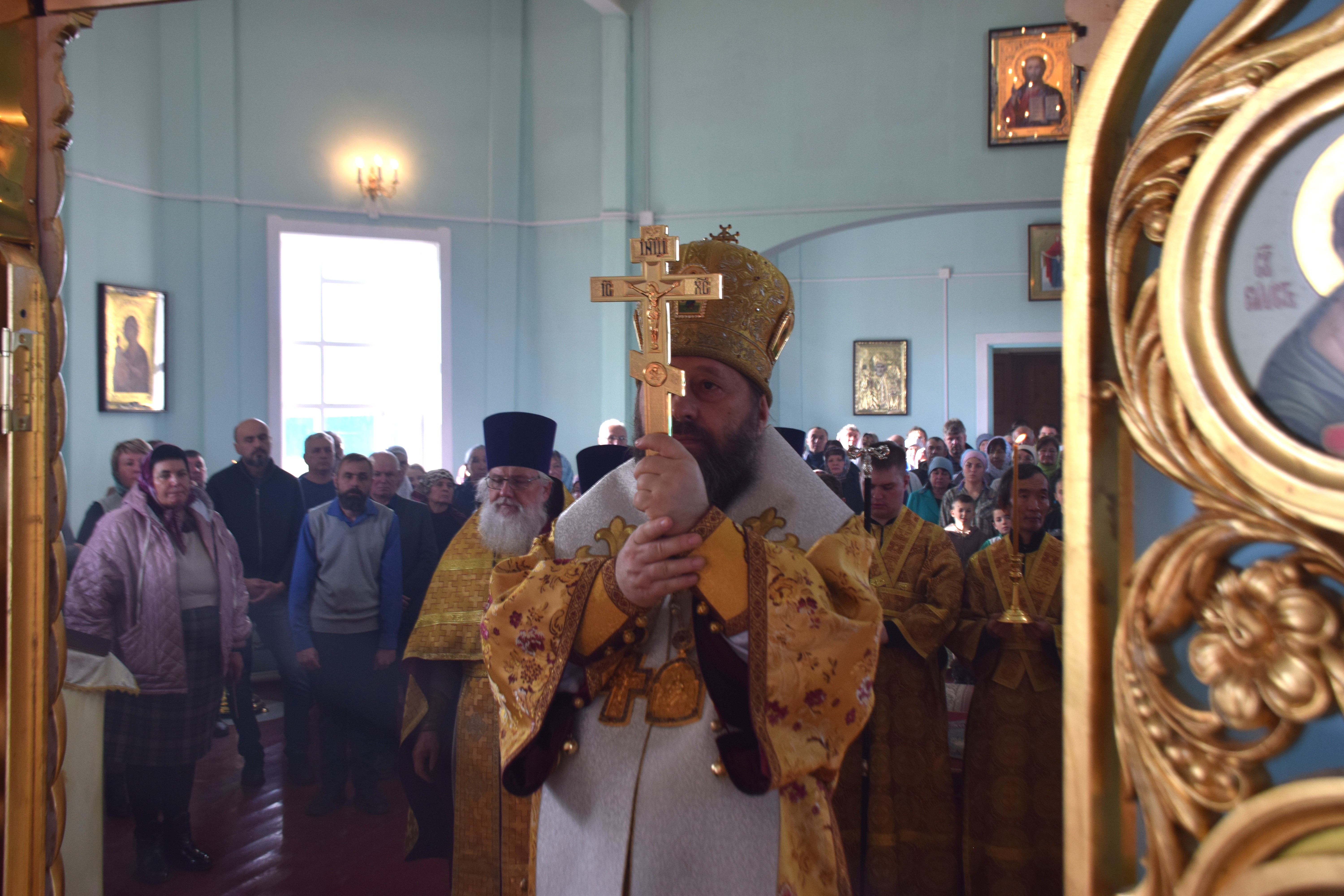 По отпусте Литургии Правящий архиерей проповедовал, а также поблагодарил приходской актив за труды и поздравил всех пришедших с воскресным днем и с совершившимся освящением восстановленного храма.