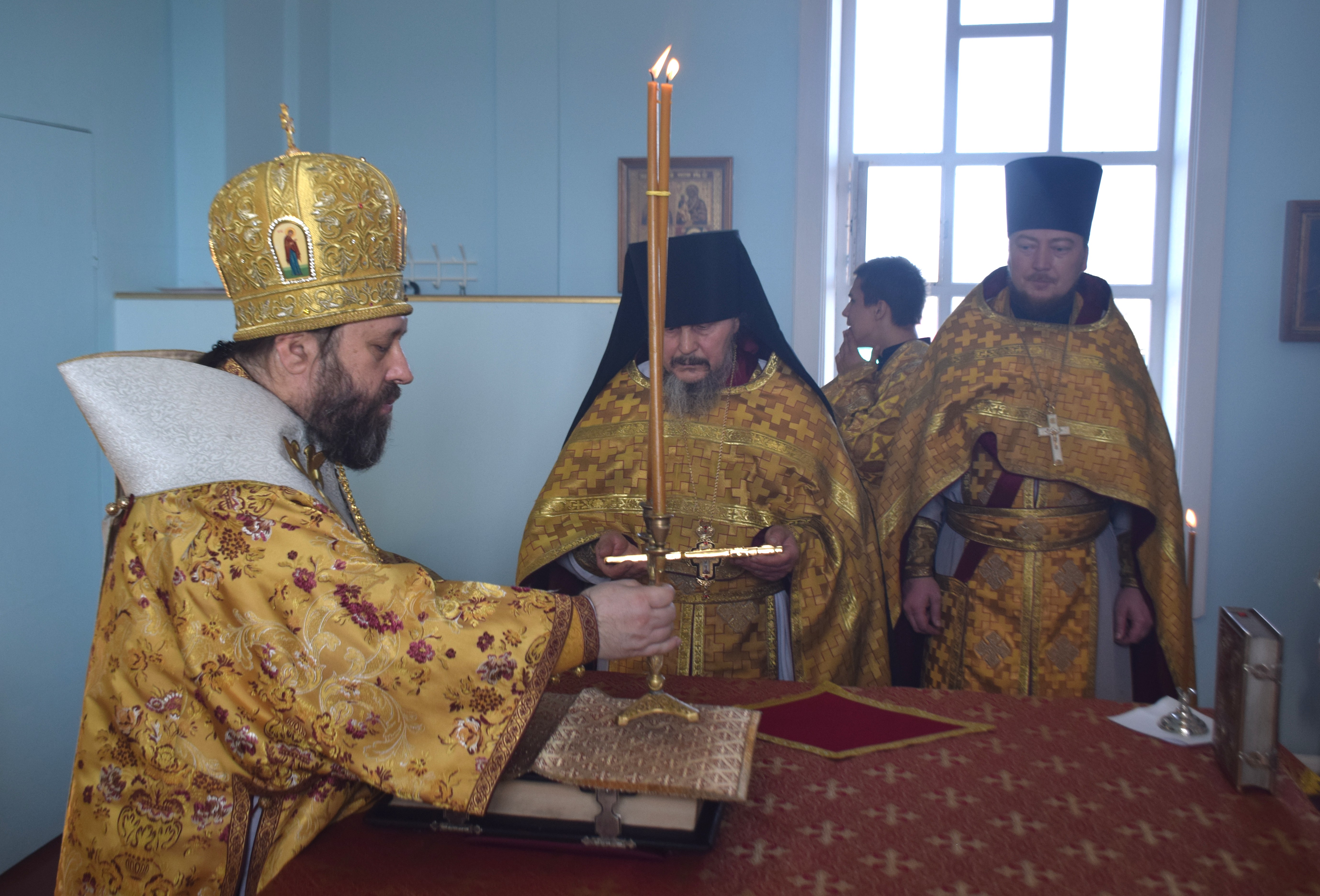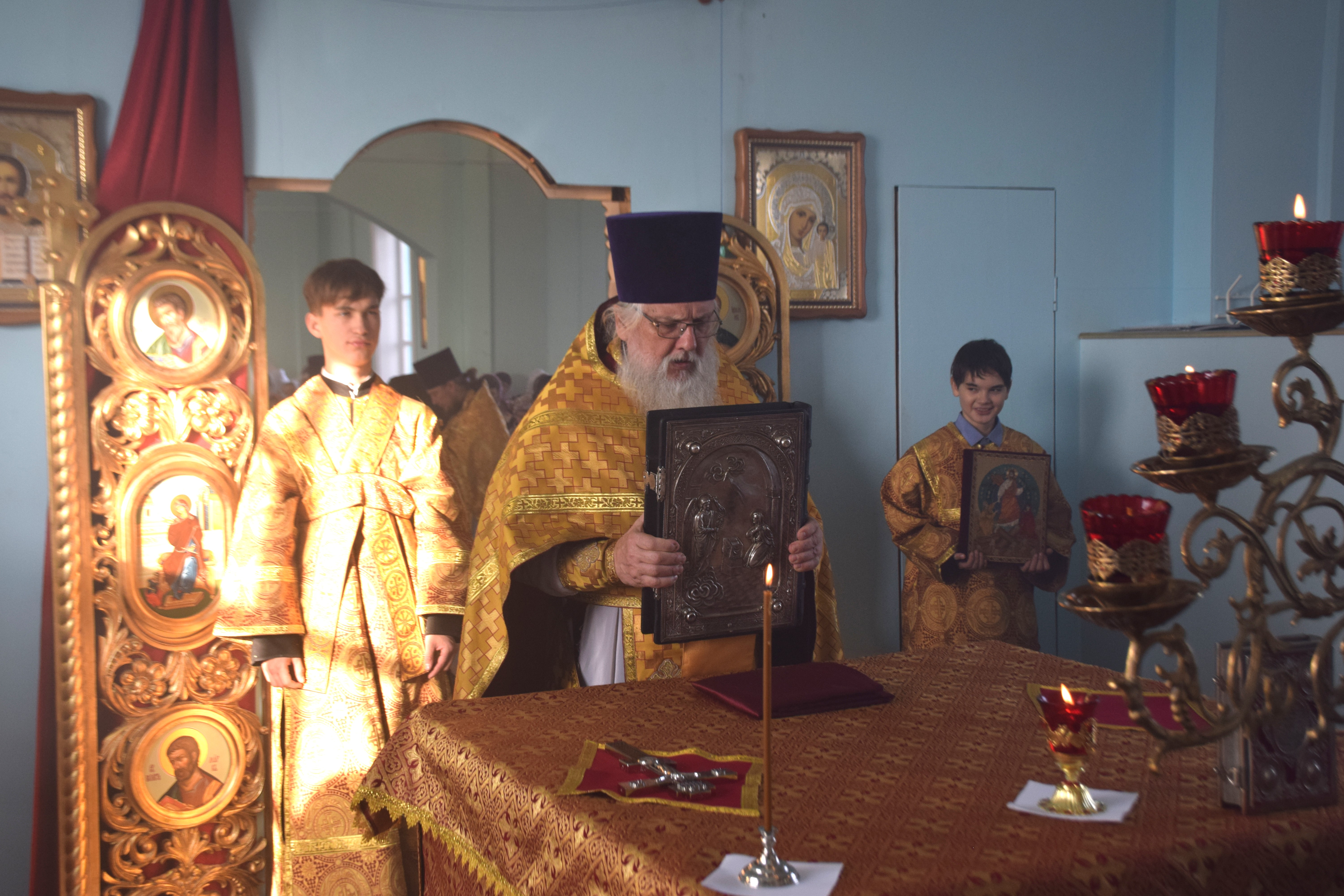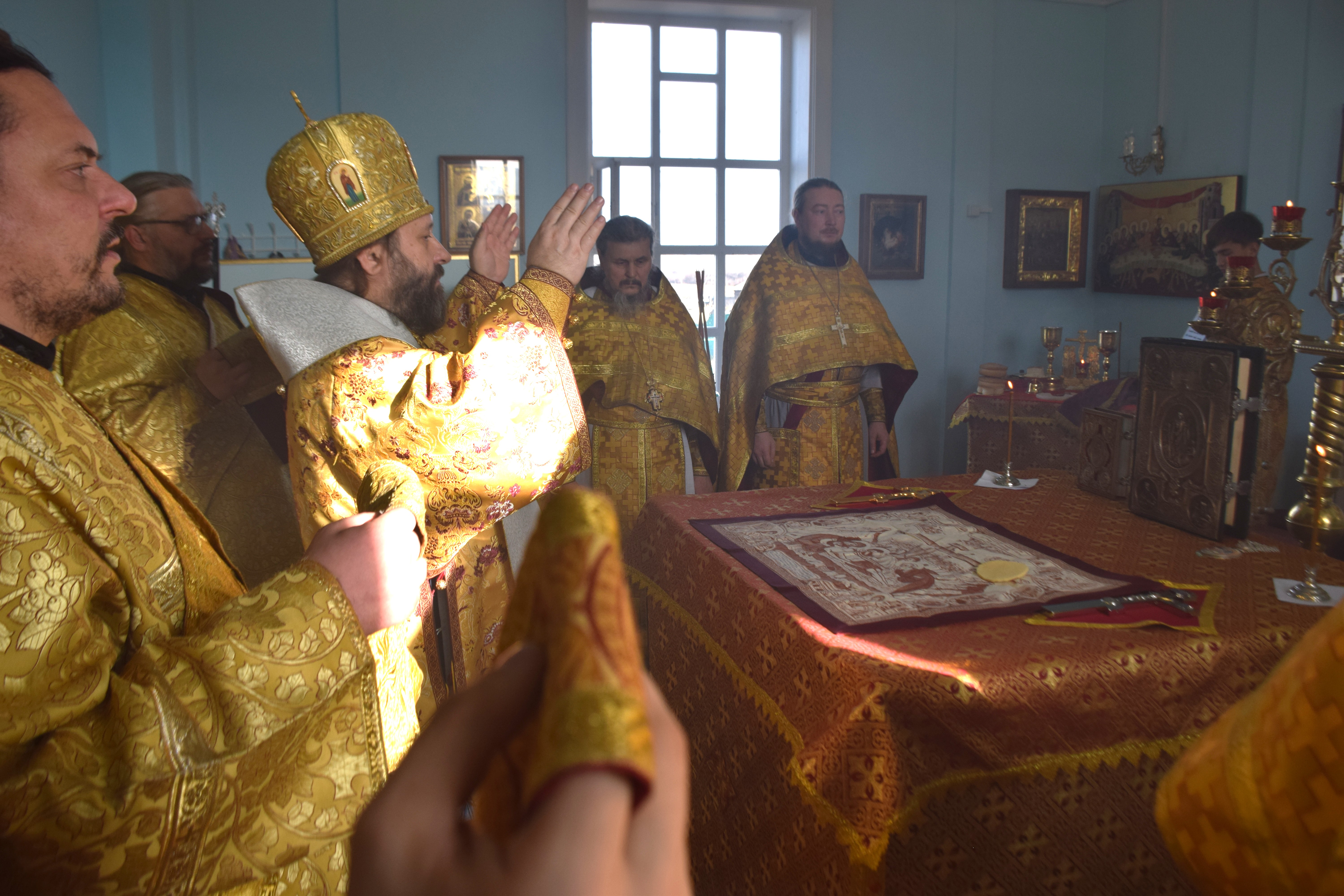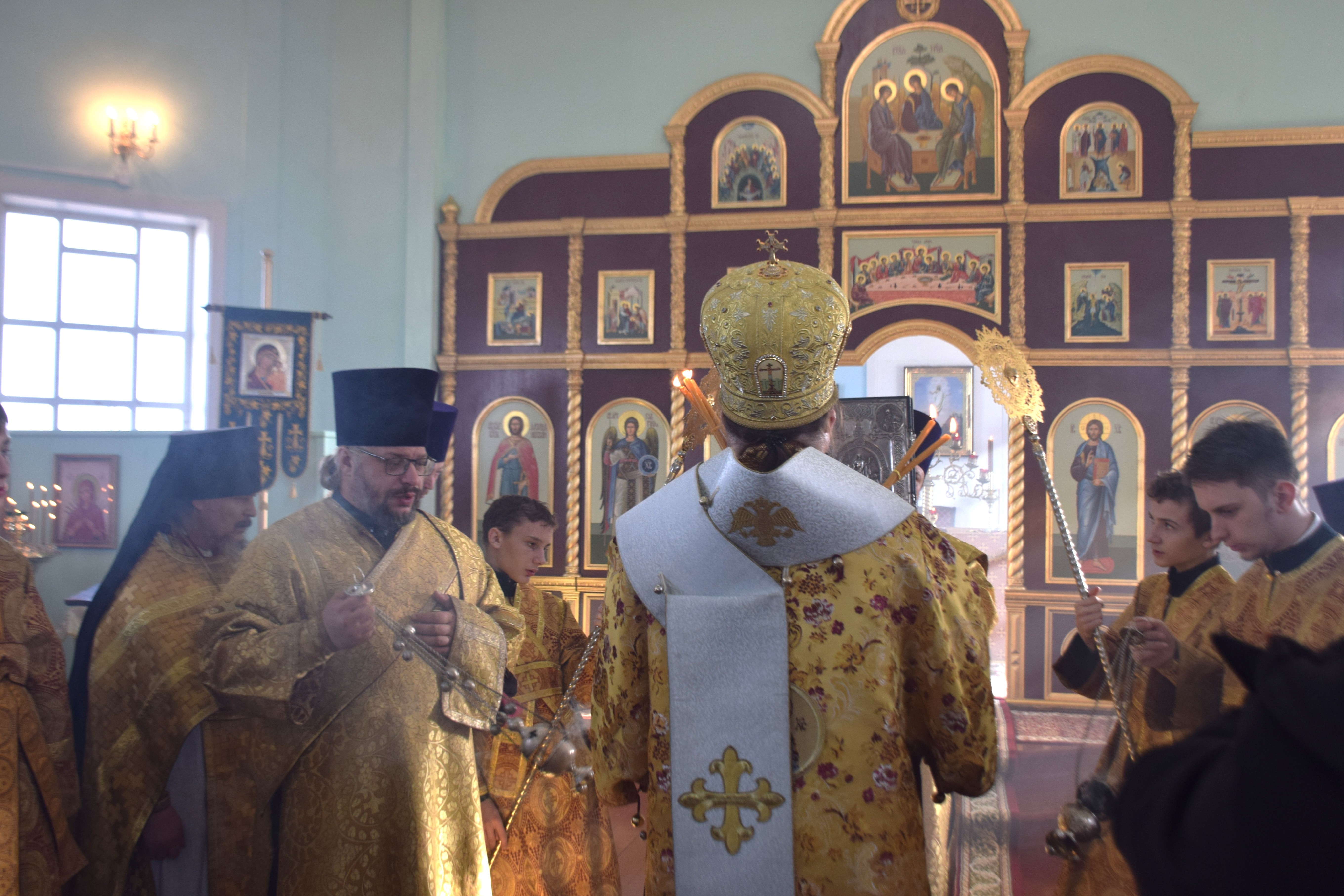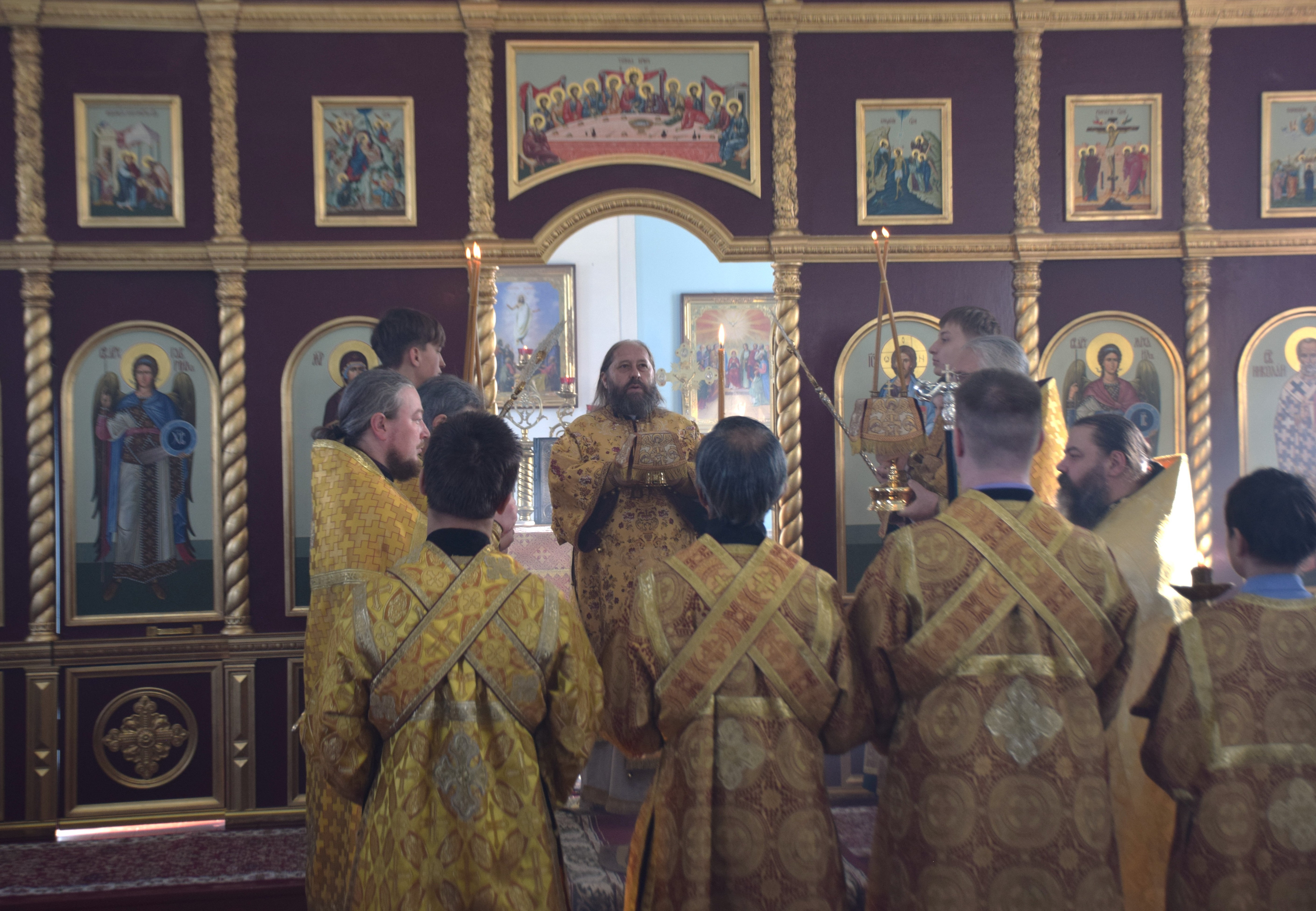 Владыке сослужили протоиереи Олег Попов, игумен Лазарь (Казанцев), протоиерей Александр Фоминых и священник Андрей Спирин. Диаконский чин составили протодиакон Андрей Ермаков, диаконы Сергий Симонов и Михаил Луцик. Богослужебные песнопения исполнила группа архиерейского хора под управлением Марии Ермаковой.
