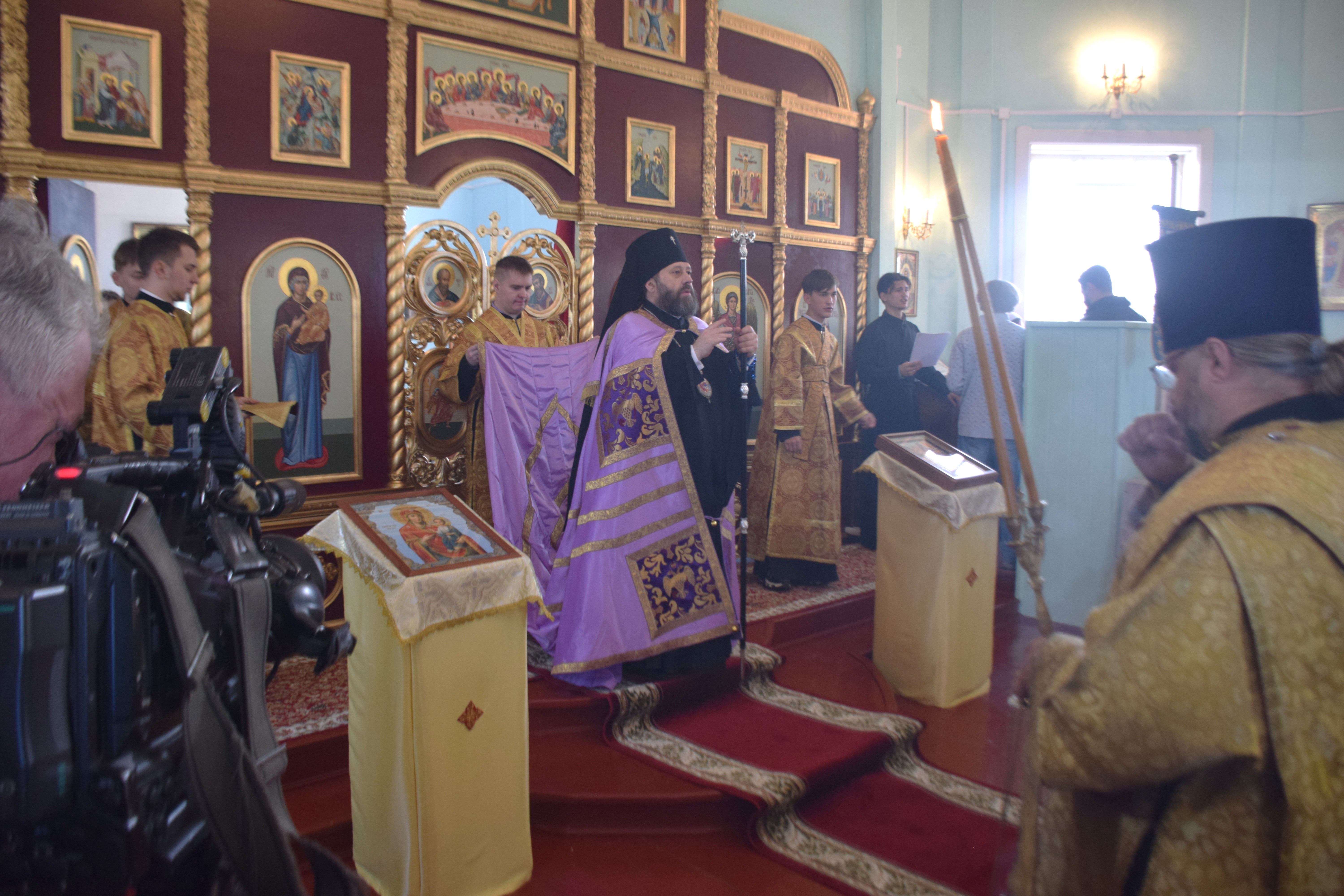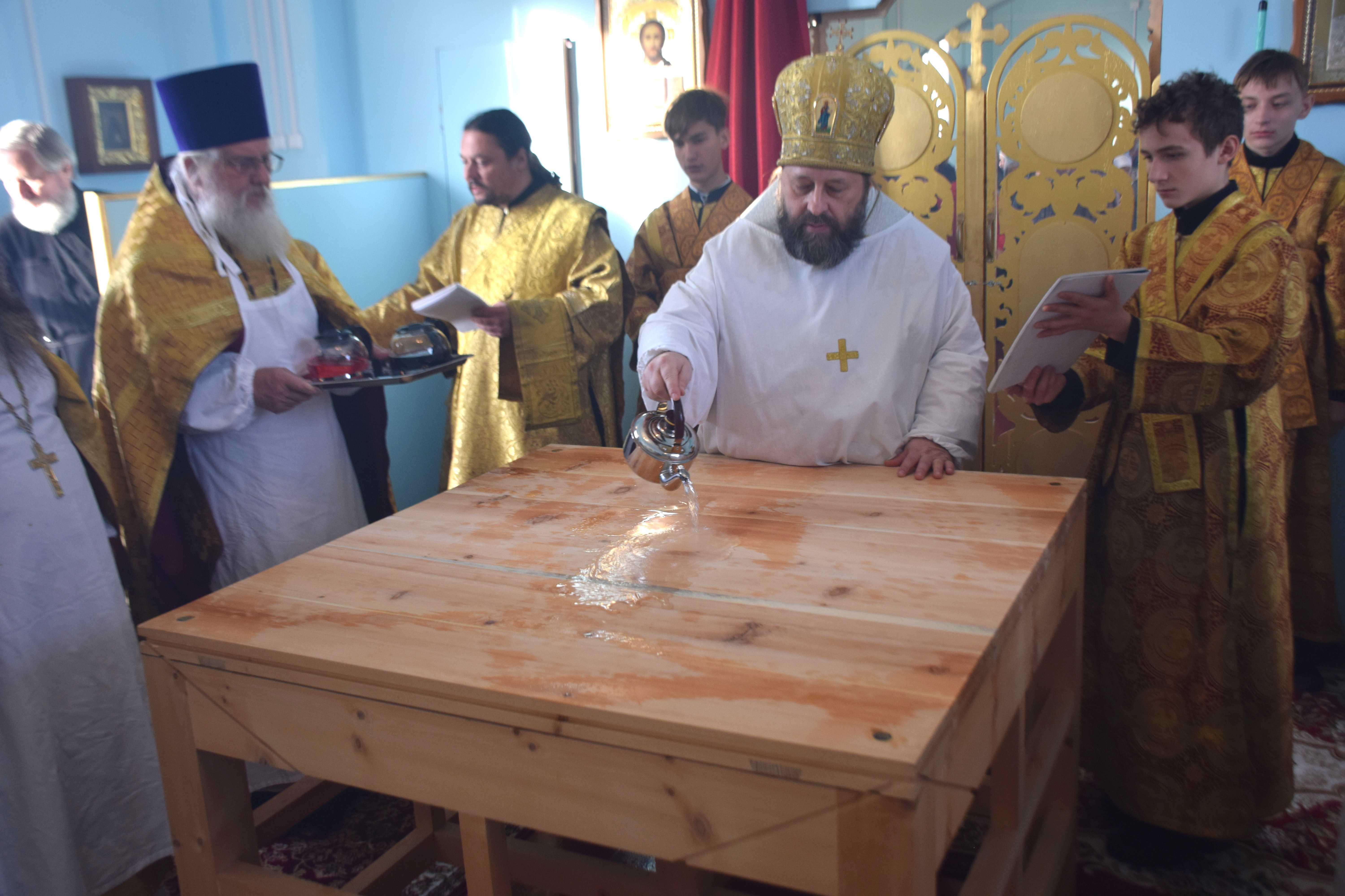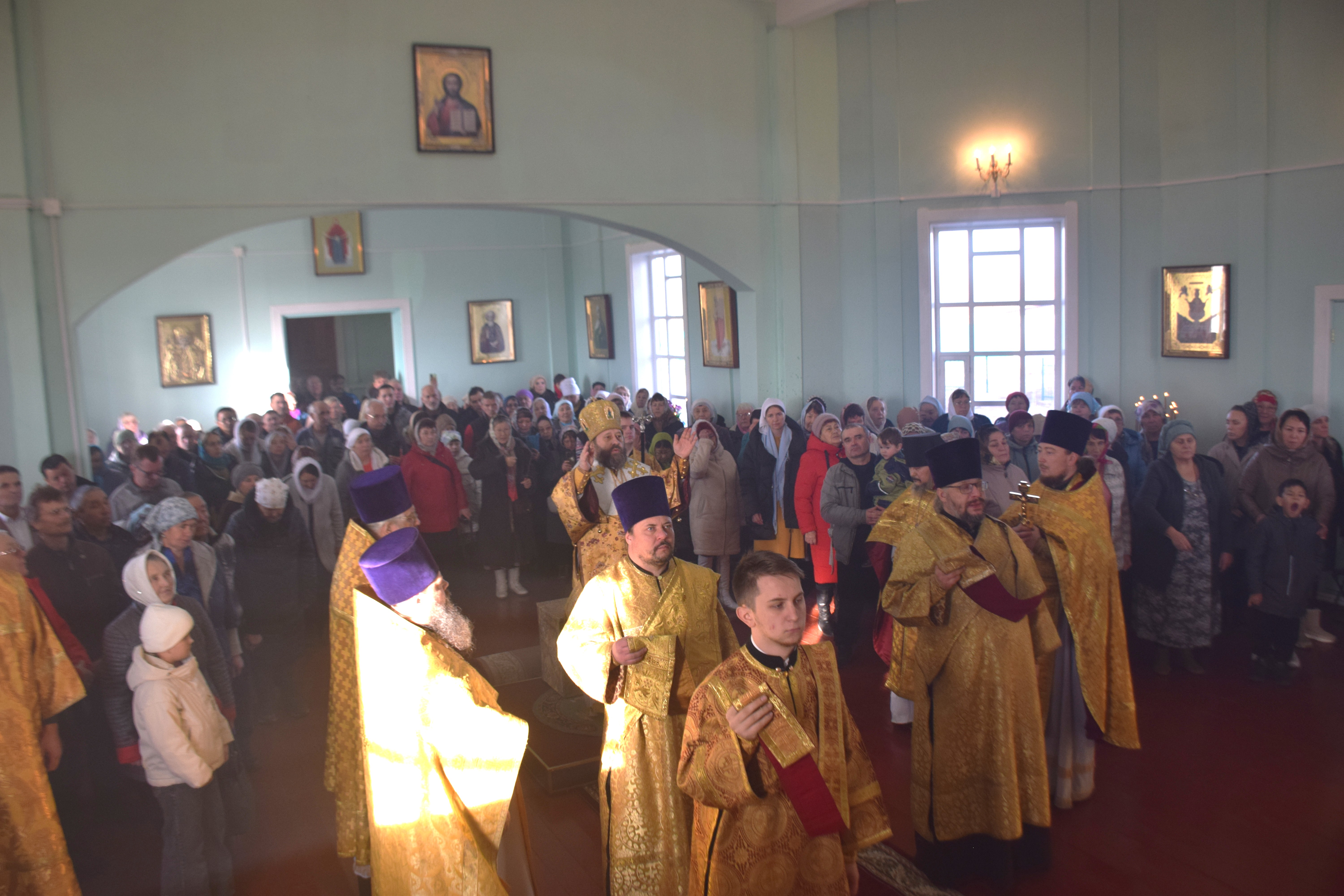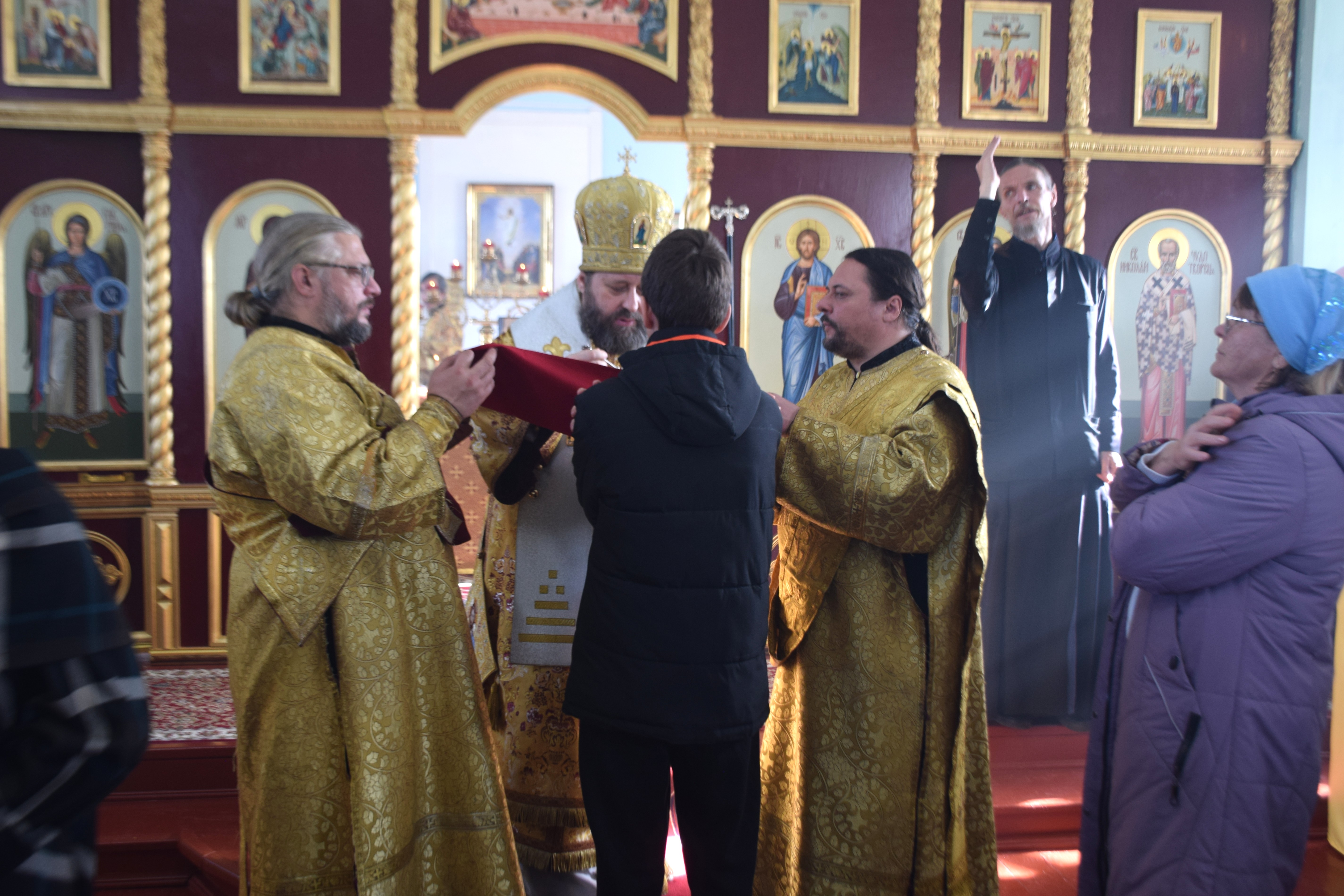 Владыке сослужили протоиереи Олег Попов, игумен Лазарь (Казанцев), протоиерей Александр Фоминых и священник Андрей Спирин. Диаконский чин составили протодиакон Андрей Ермаков, диаконы Сергий Симонов и Михаил Луцик. Богослужебные песнопения исполнила группа архиерейского хора под управлением Марии Ермаковой.