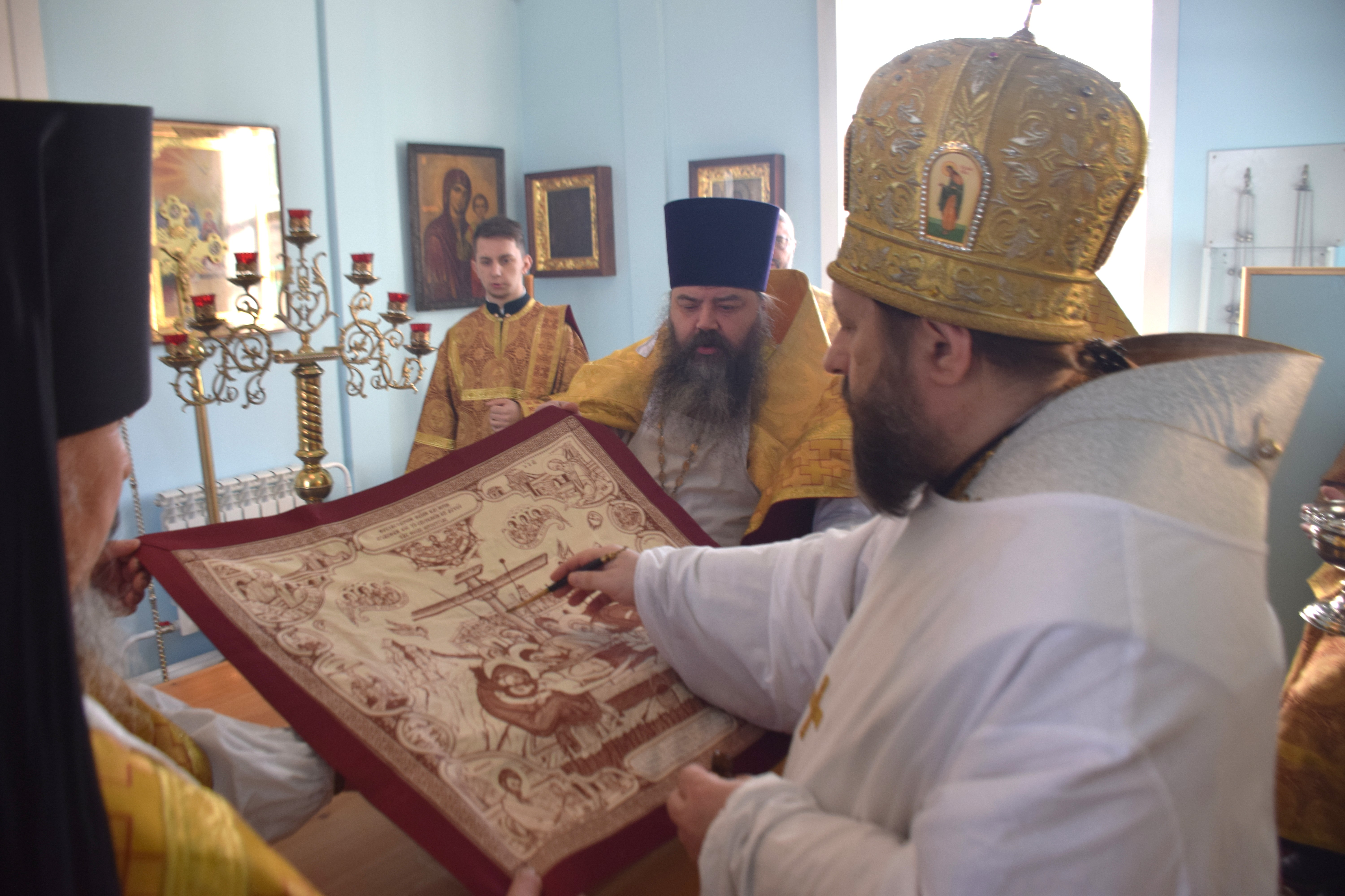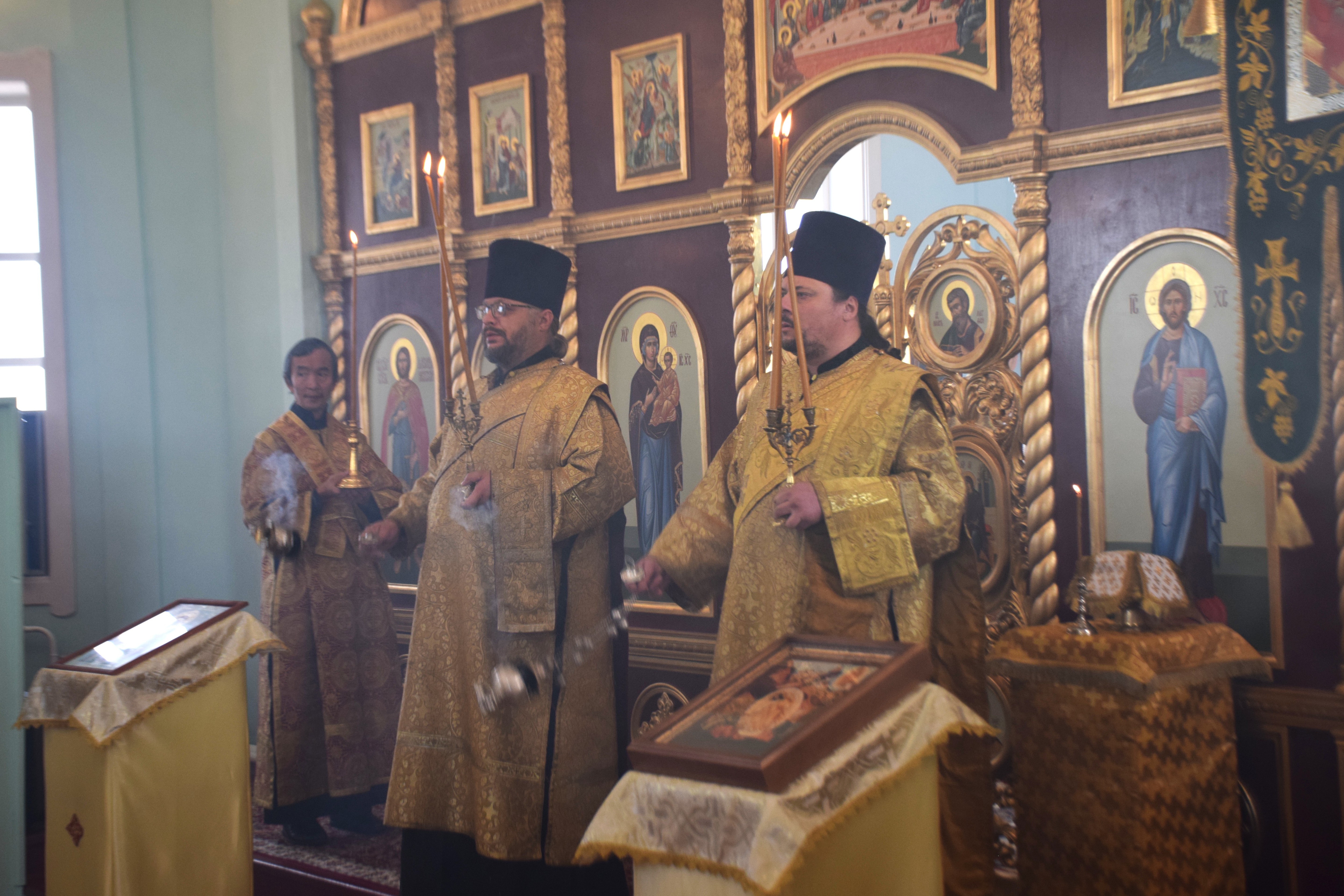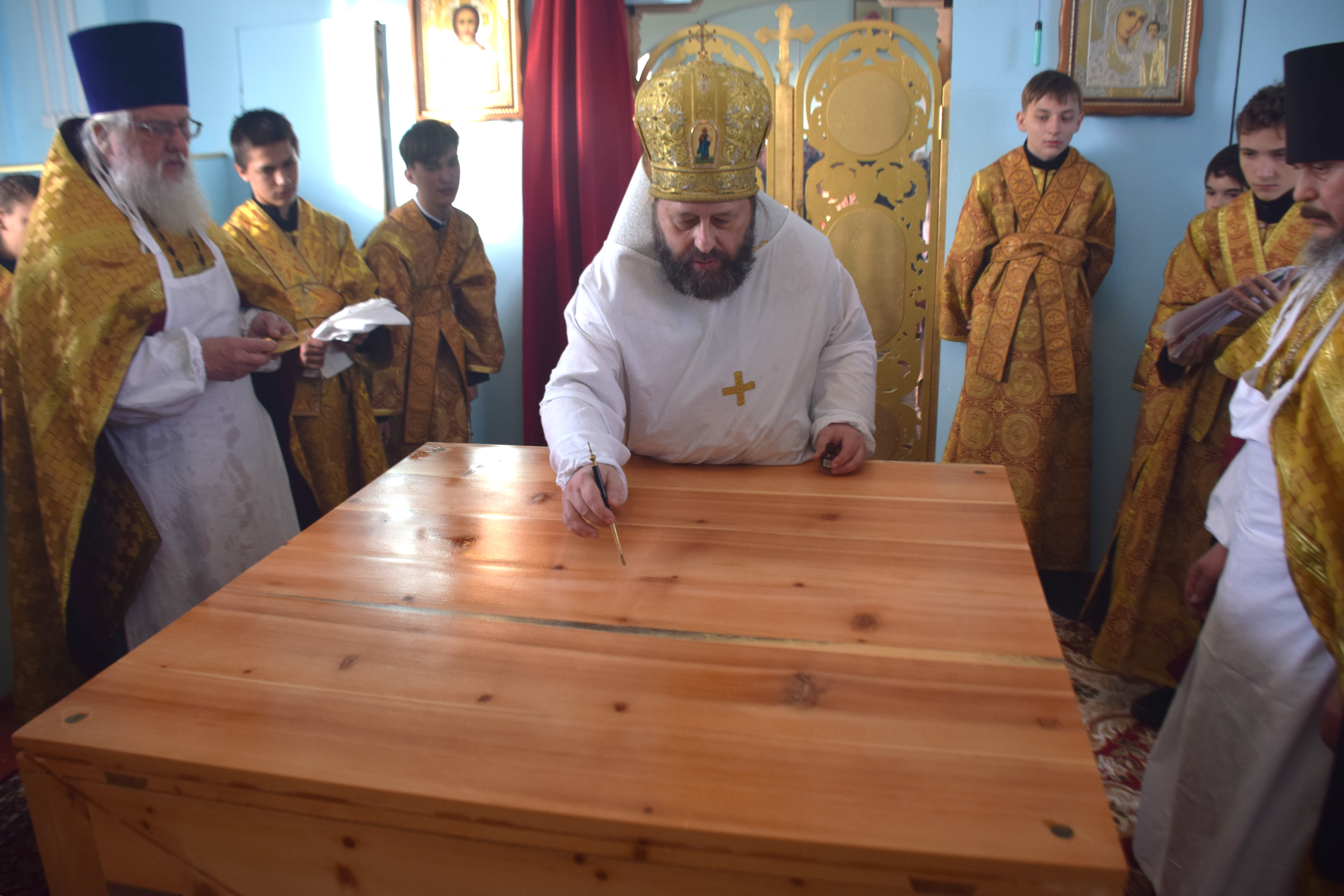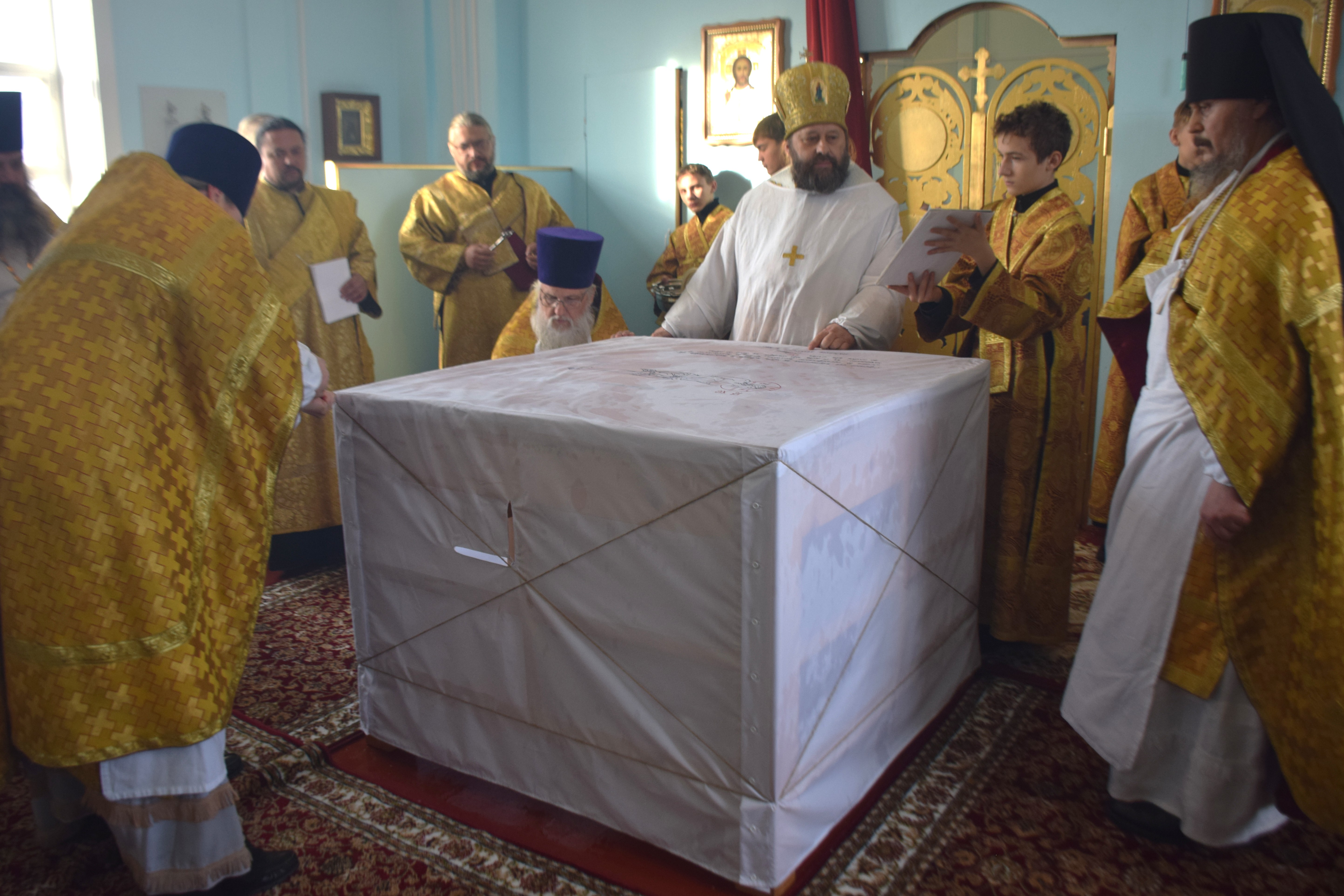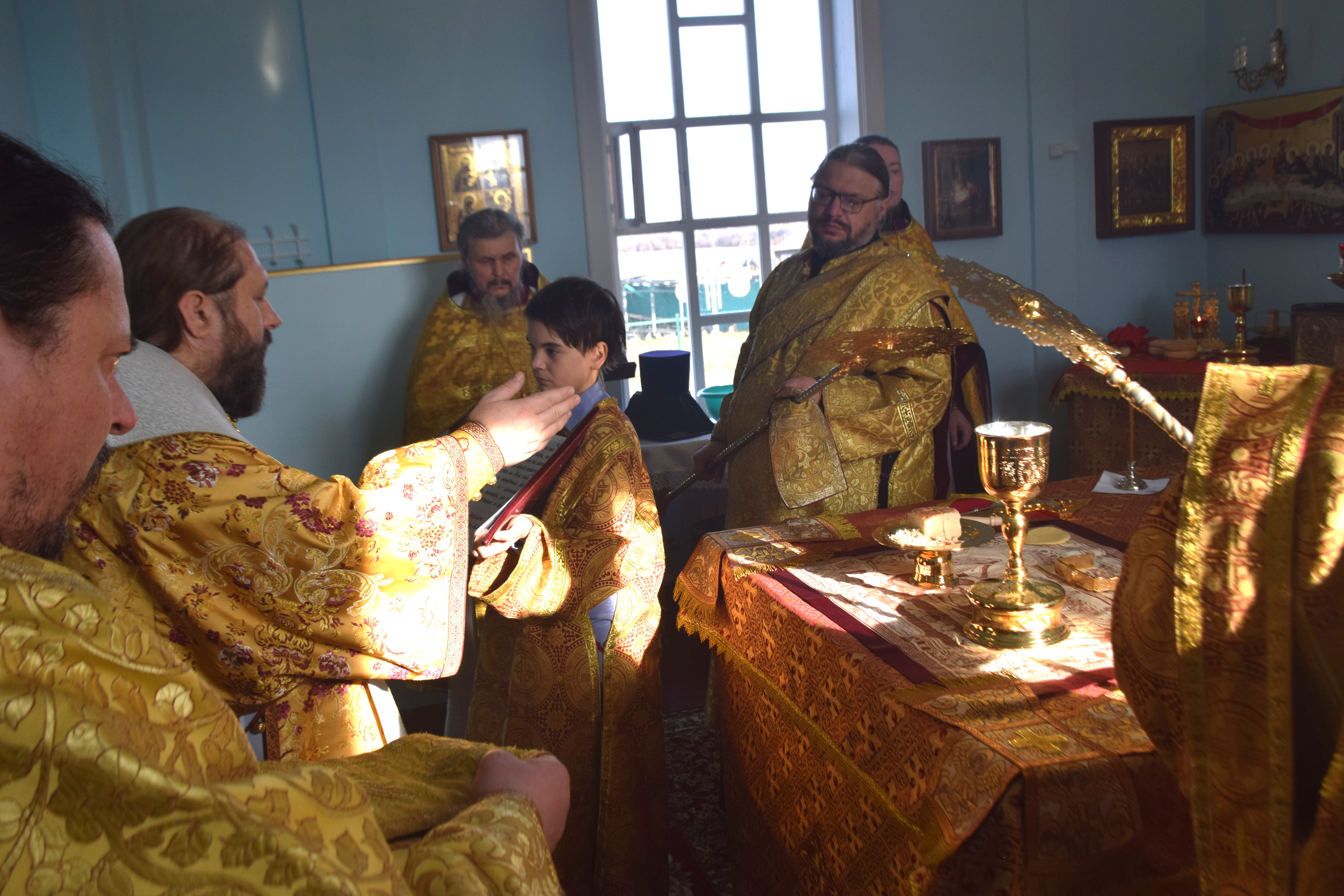 Владыке сослужили протоиереи Олег Попов, игумен Лазарь (Казанцев), протоиерей Александр Фоминых и священник Андрей Спирин. Диаконский чин составили протодиакон Андрей Ермаков, диаконы Сергий Симонов и Михаил Луцик. Богослужебные песнопения исполнила группа архиерейского хора под управлением Марии Ермаковой.