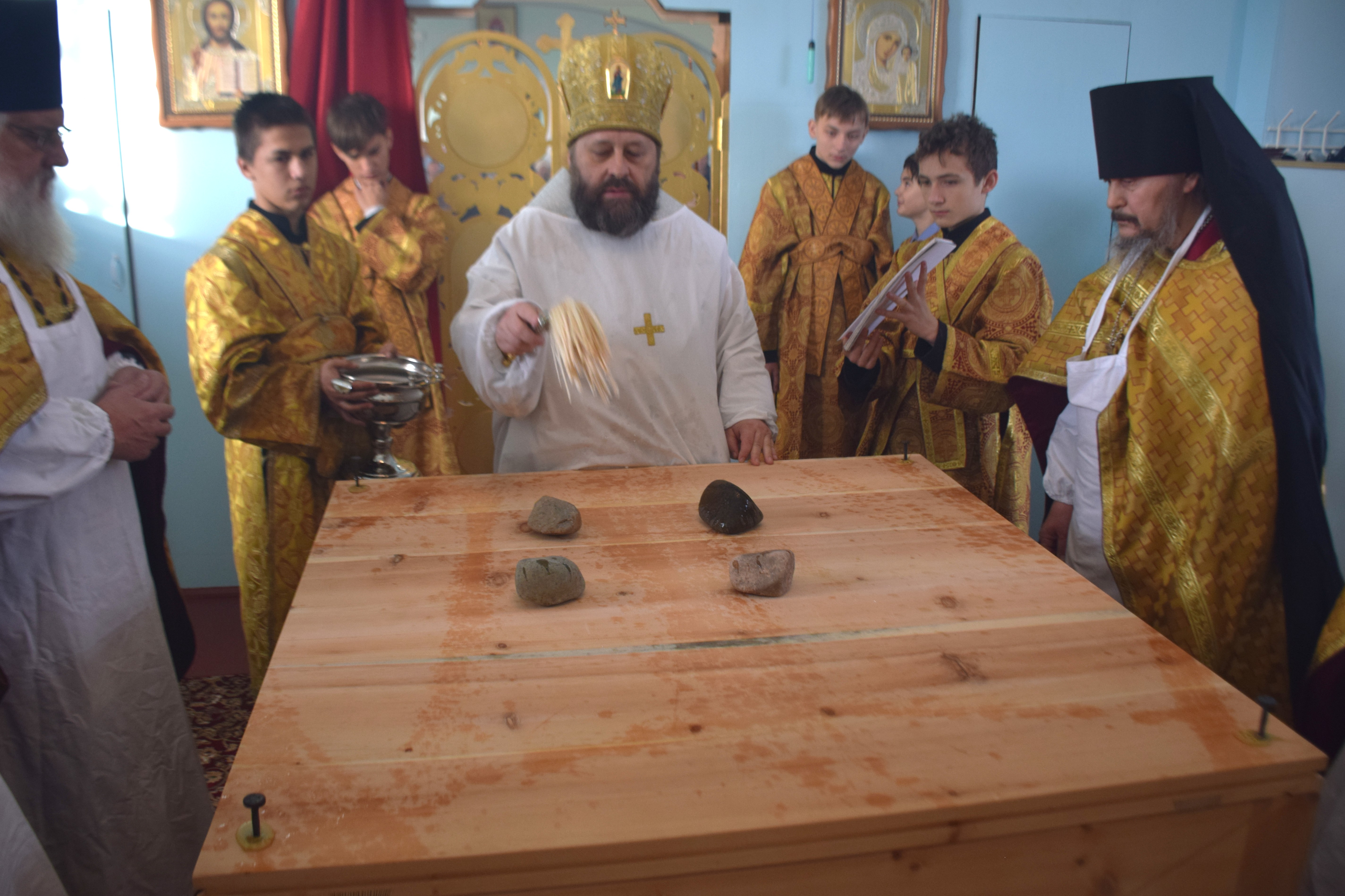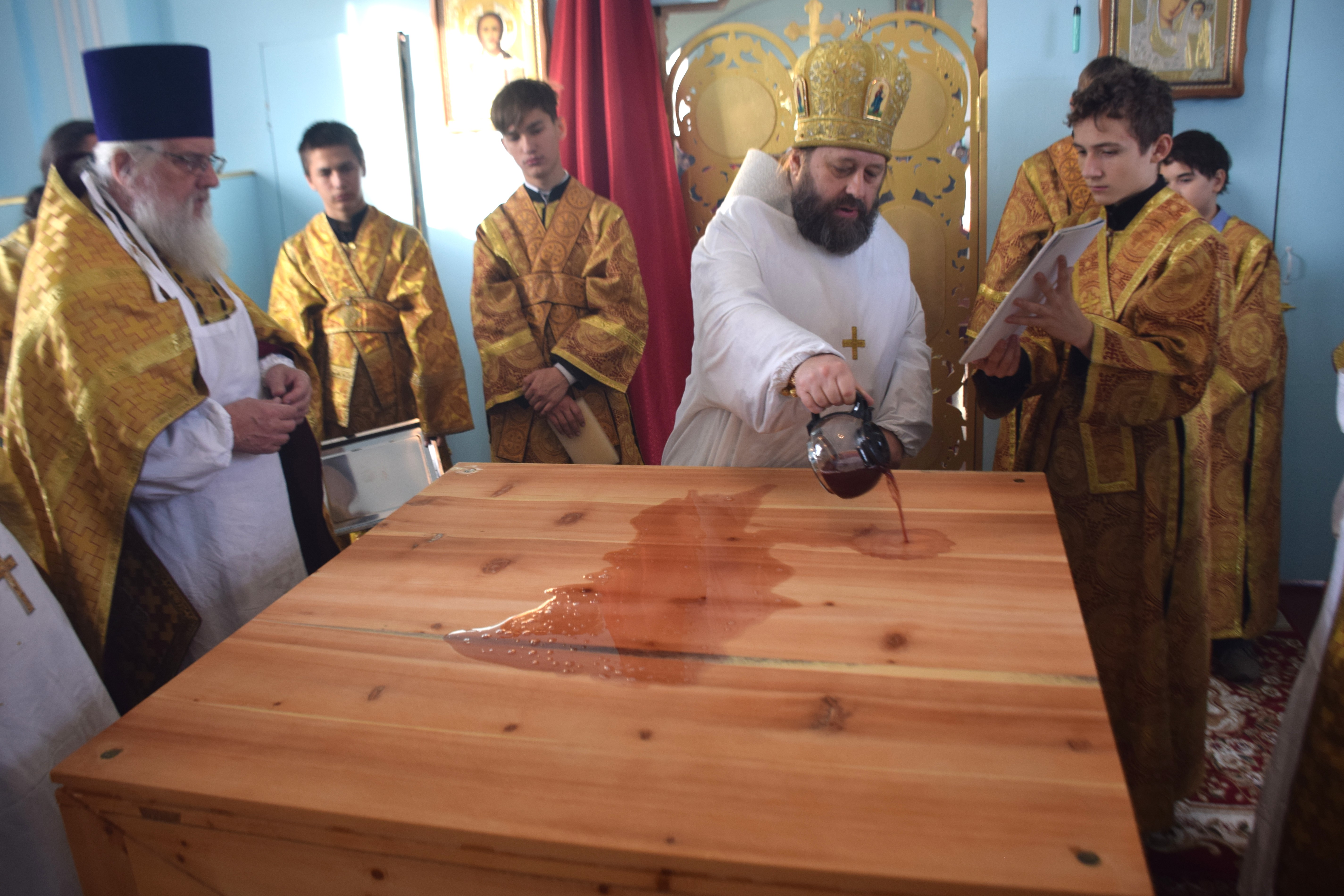 Чин освящения храма начался с кропления престола святой водой и чтения молитв на утверждение престола. Затем последовало омытие престола водой и вином, смешанным с розовой водой, освящение антиминса и престола молитвой и помазанием святым миром, облачение престола, а также освящение жертвенника. Стены храма были помазаны святым миром и окроплены святой водой. Вокруг храма был совершен крестный ход со святыми мощами, которые были вложены в святой престол и в антиминс, после чего были прочитаны совершительные молитвы.