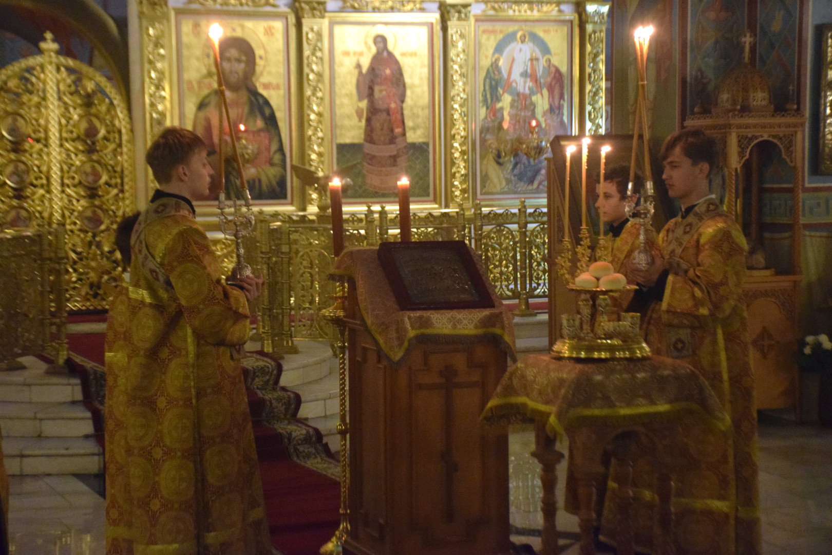Богослужение возглавил Преосвященный архиепископ Абаканский и Хакасский Ионафан. Владыке сослужили протоиереи Олег Попов, Димитрий Ляпустин, священники Николай Пугин и Евгений Девятов. Диаконский чин составили протодиакон Андрей Ермаков, диаконы Сергий Симонов, Владислав Бойченко, Михаил Луцик и иеродиакон Нестор (Рыбин). Песнопения исполнил архиерейский хор под руководством М. Ермаковой.