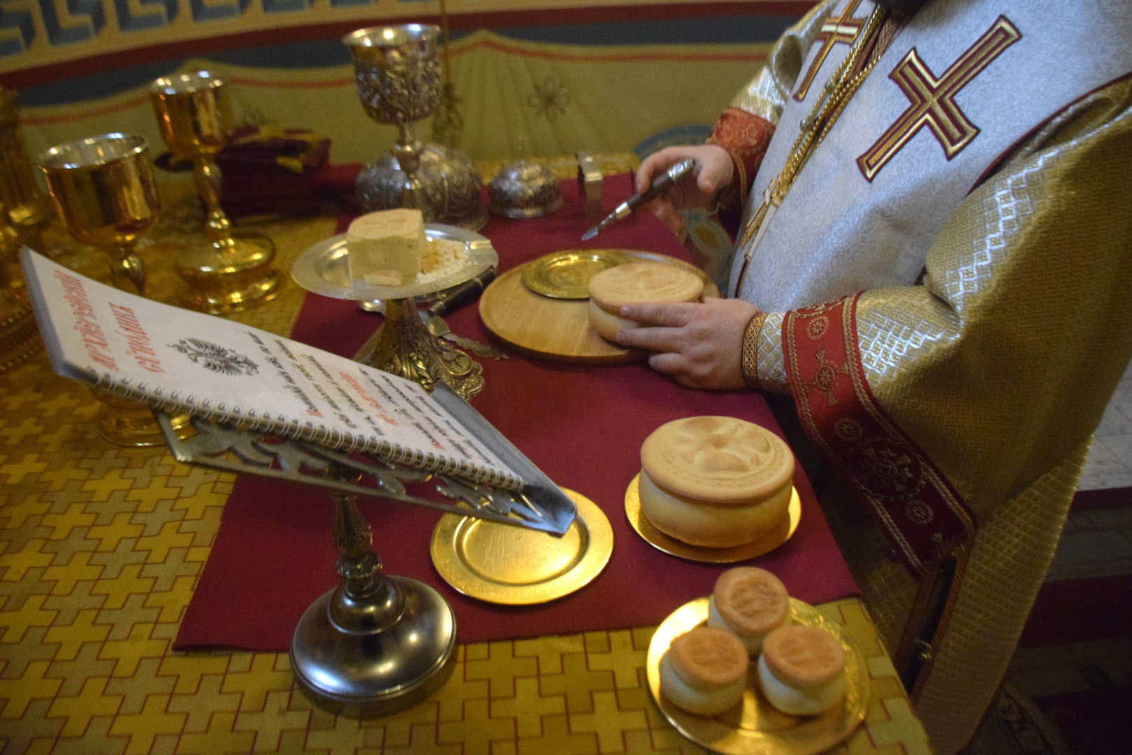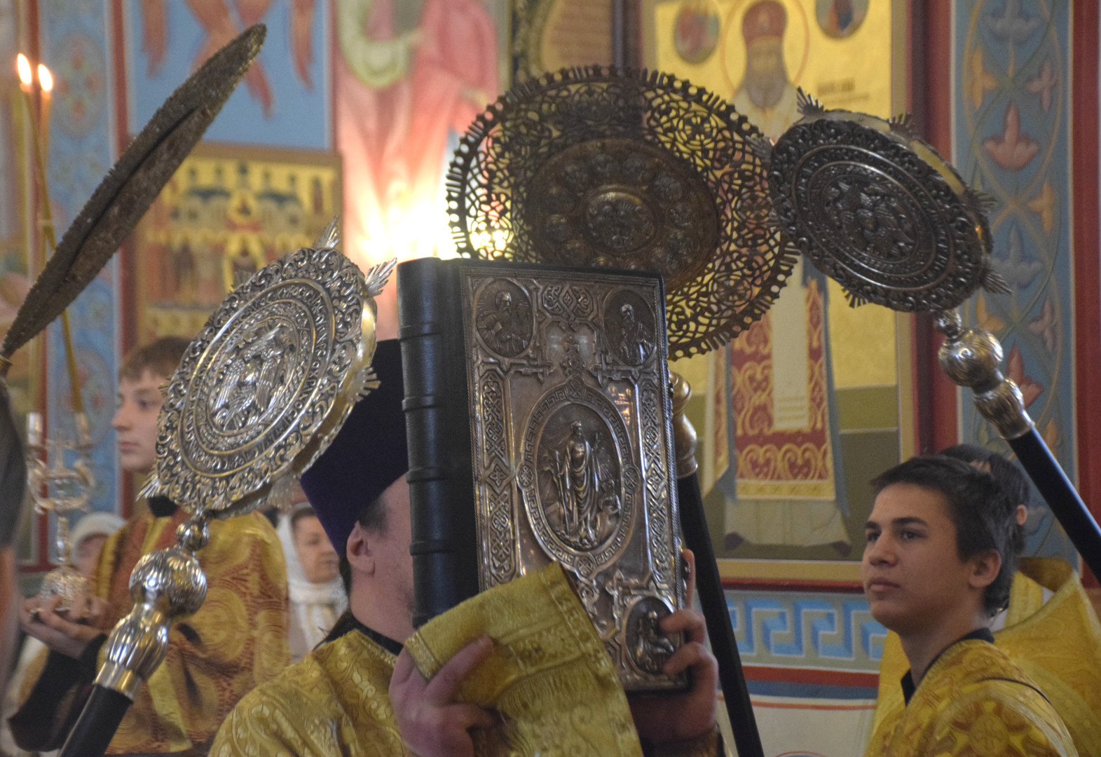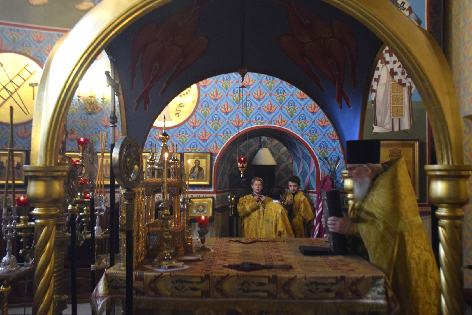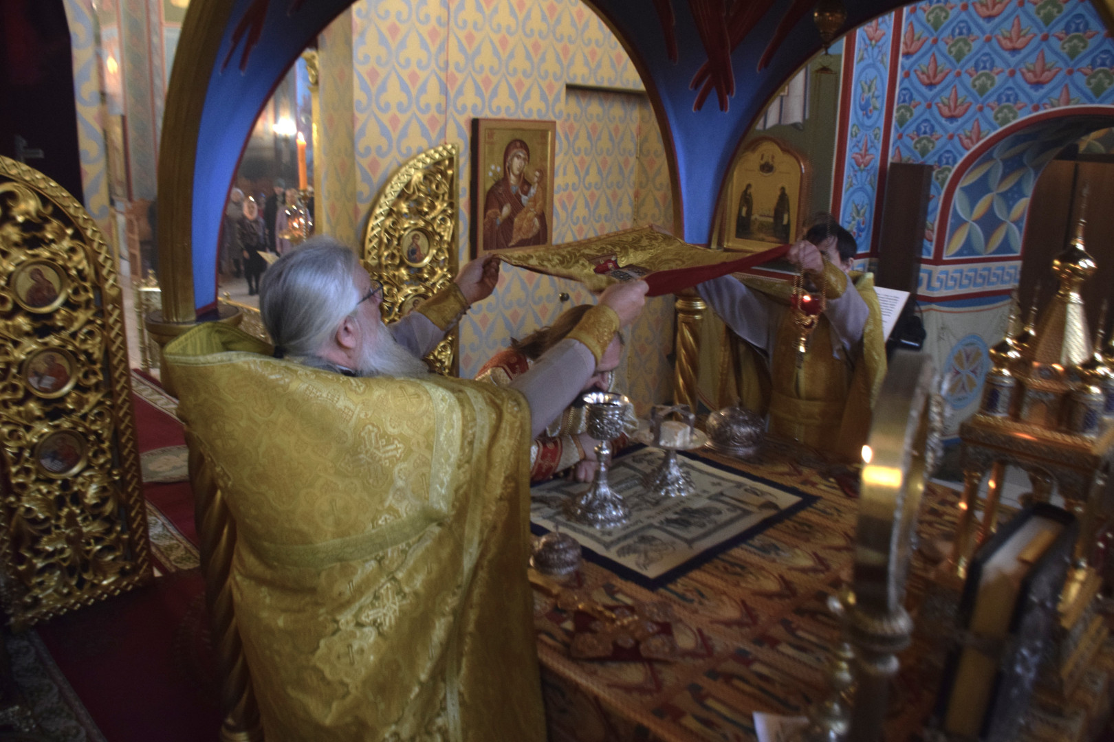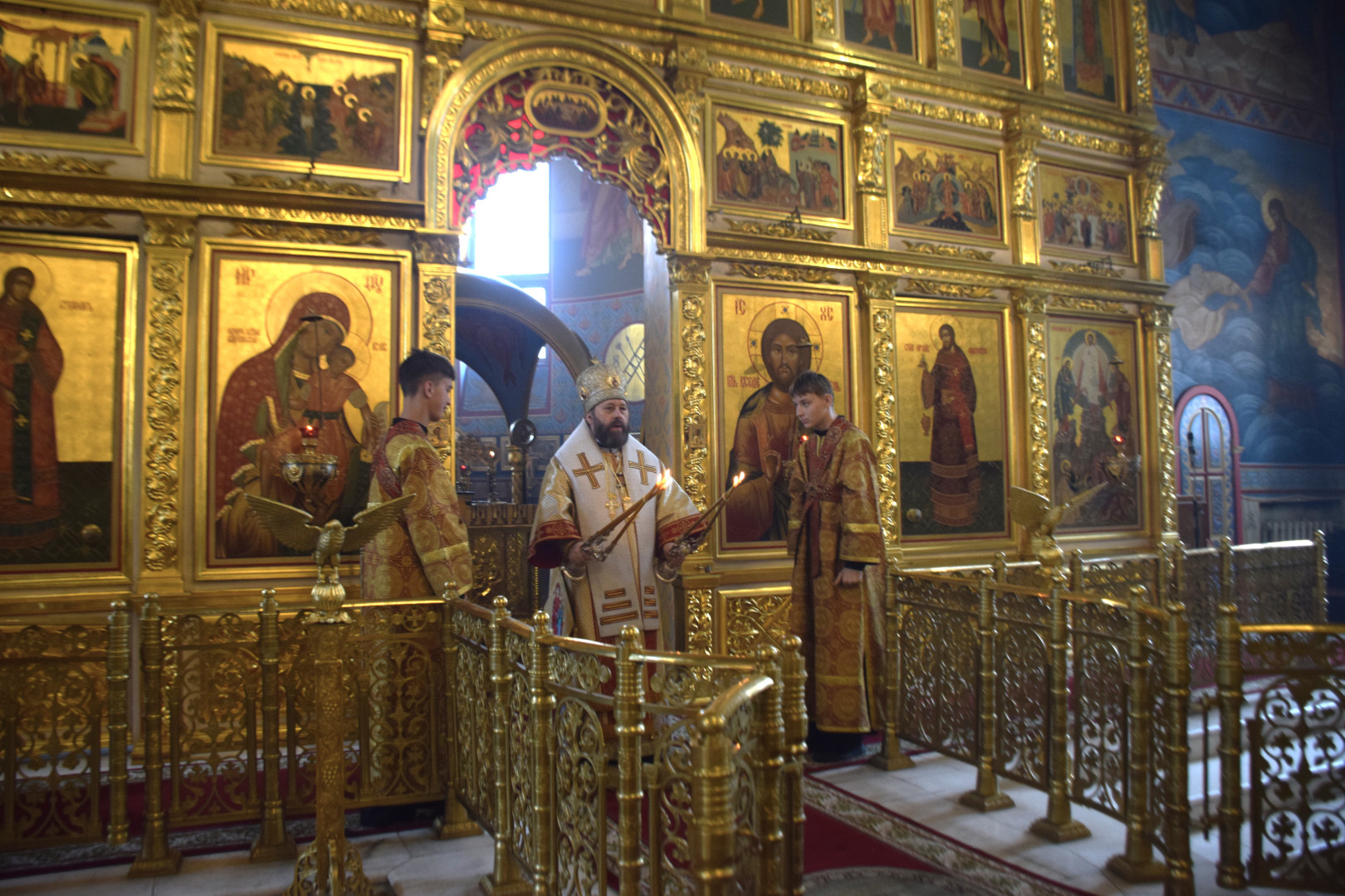 ВВладыке сослужили протоиерей Олег Попов и священник Евгений Девятов. Диаконский чин составили протодиакон Андрей Ермаков, диаконы Сергий Симонов, Владислав Бойченко, Михаил Луцик и иеродиакон Нестор (Рыбин). Песнопения Литургии исполнила группа архиерейского хора под управлением Марии Ермаковой.