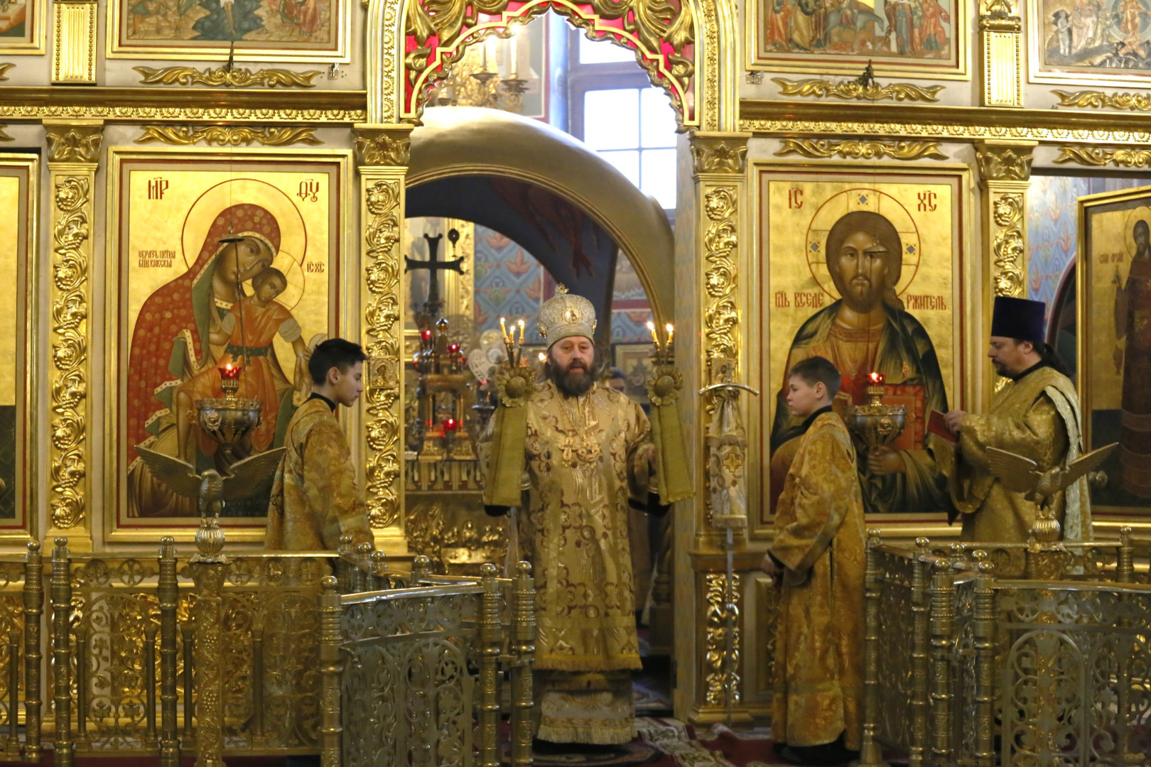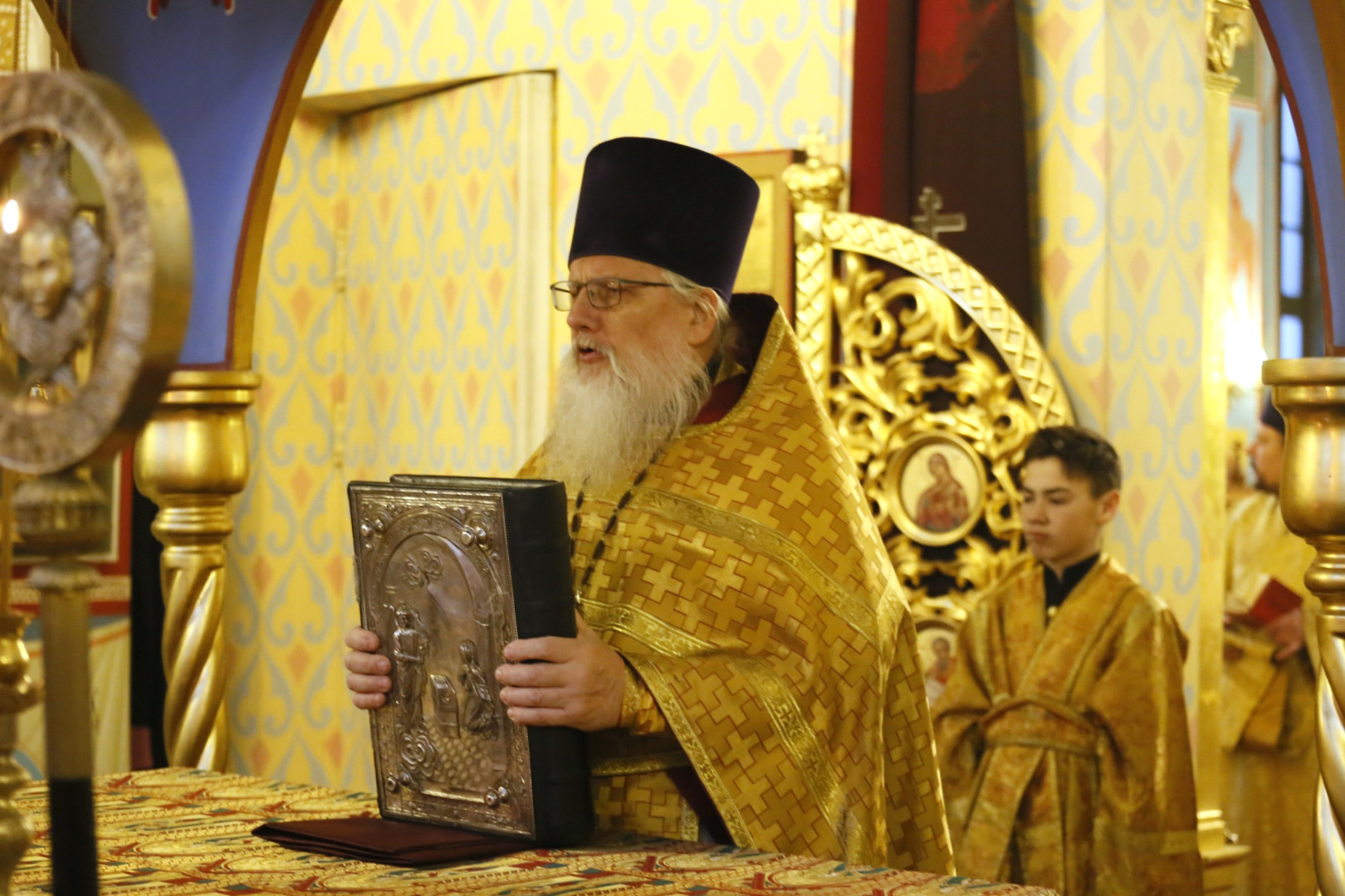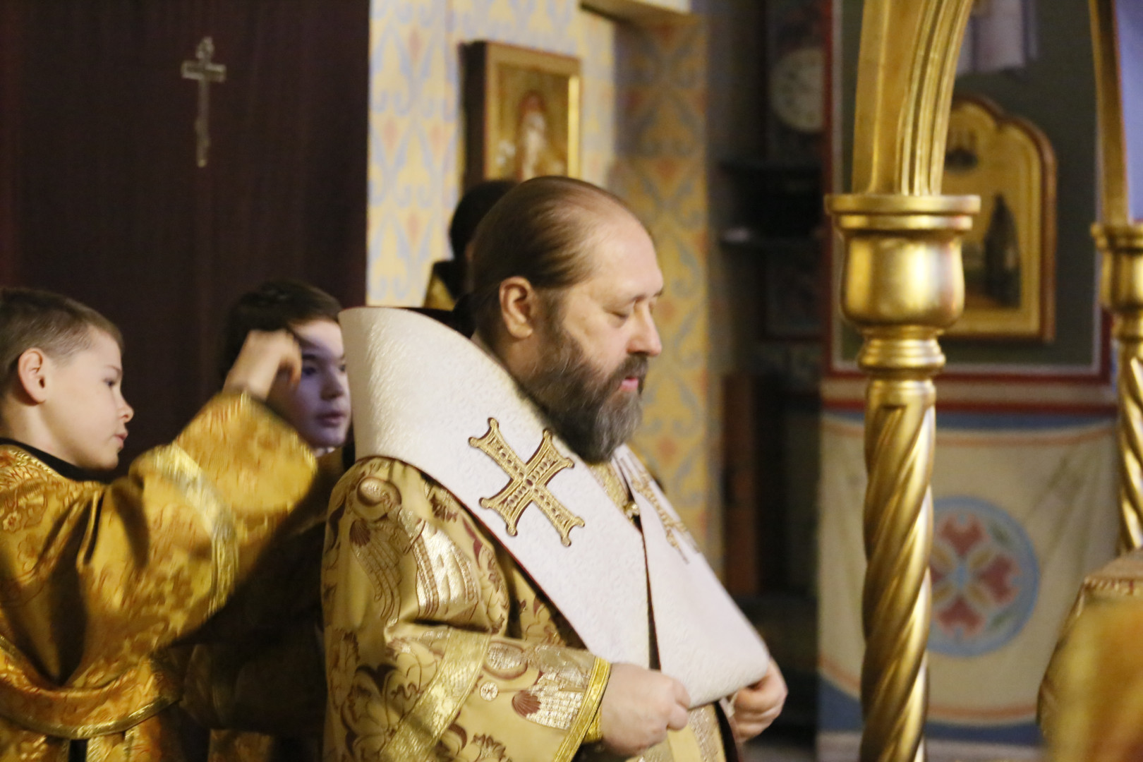 Владыке сослужили протоиереи Олег Попов, Димитрий Ляпустин, священник Евгений Мотькин и Евгений Девятов. Диаконский чин возглавил протодиакон Андрей Ермаков.