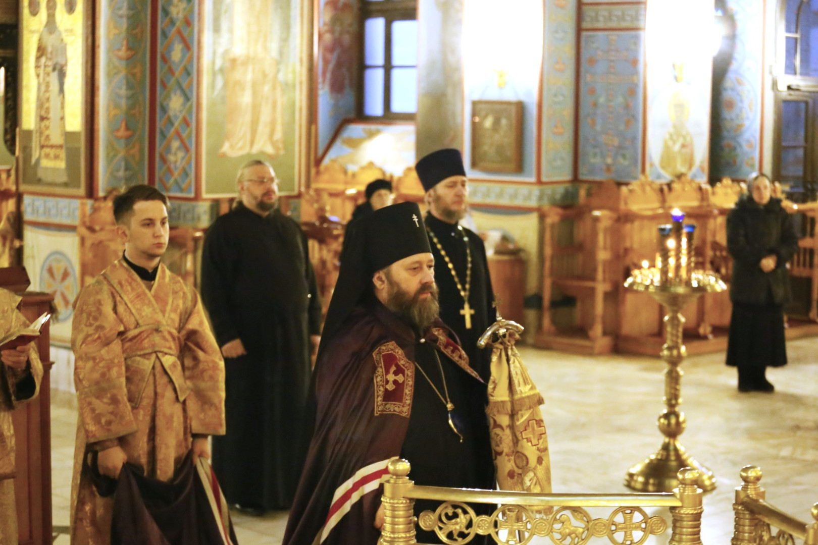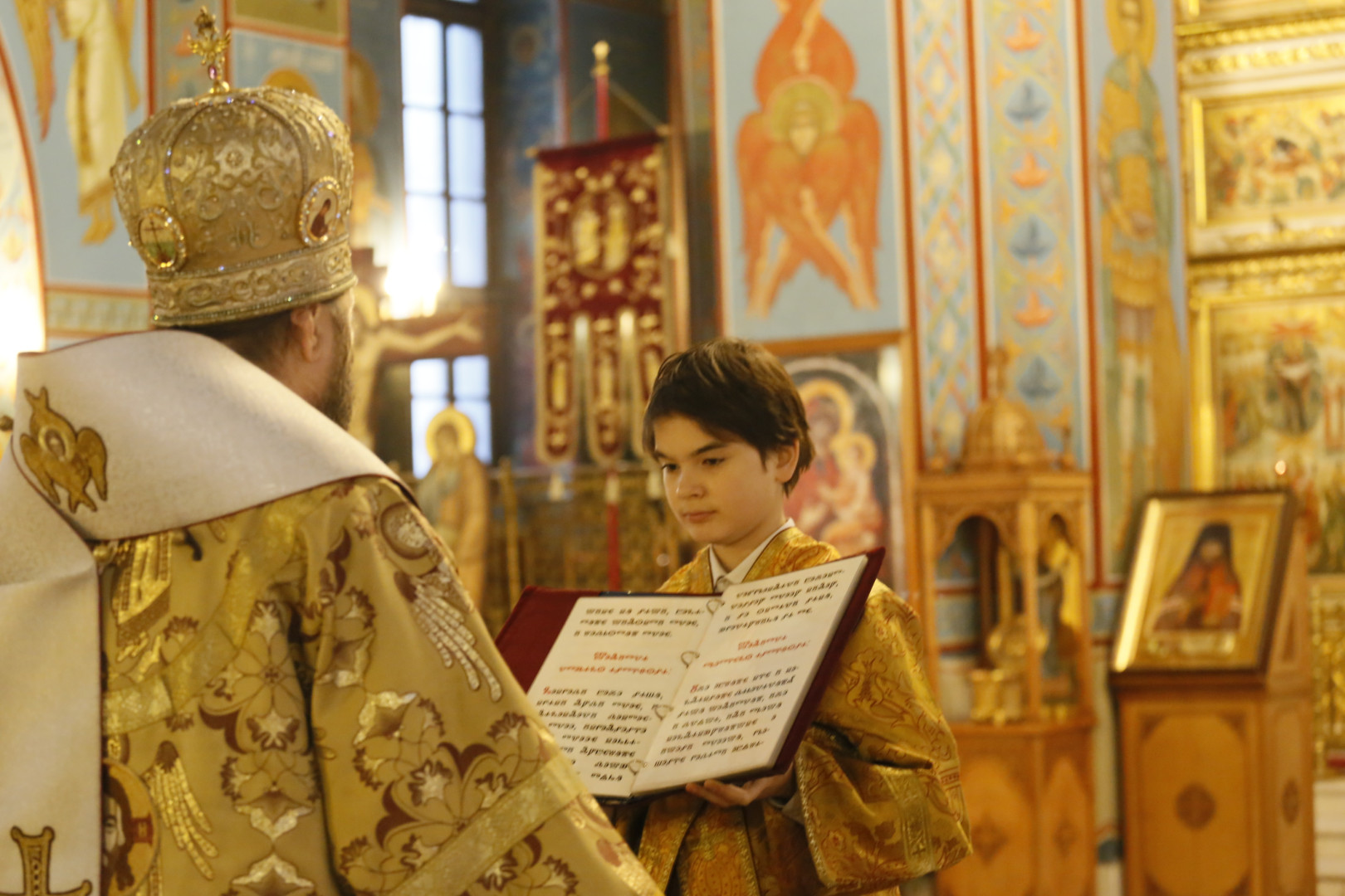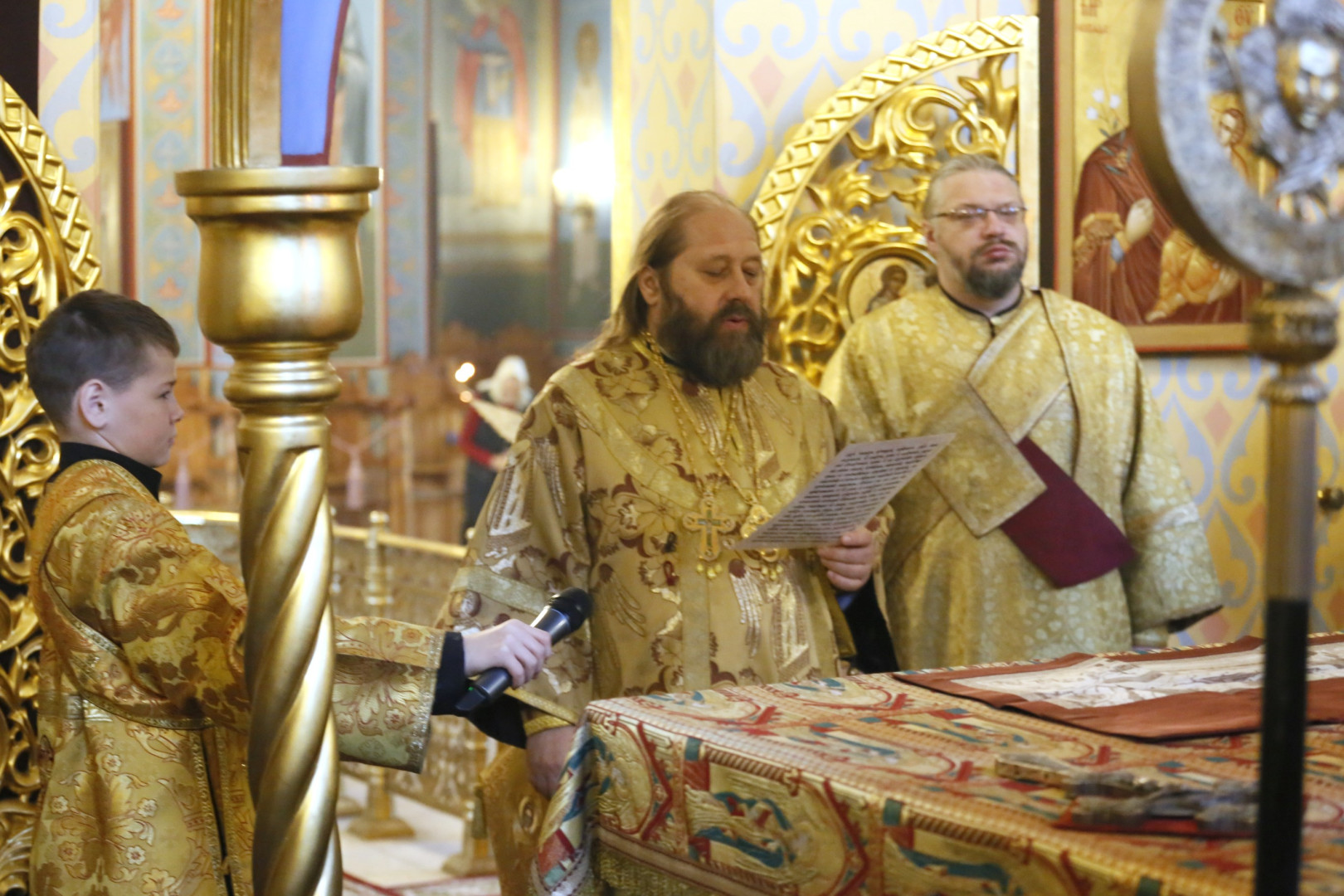 Владыке сослужили протоиереи Олег Попов, Димитрий Ляпустин, священник Евгений Мотькин и Евгений Девятов. Диаконский чин возглавил протодиакон Андрей Ермаков.