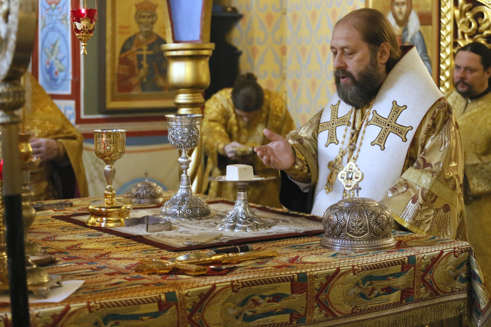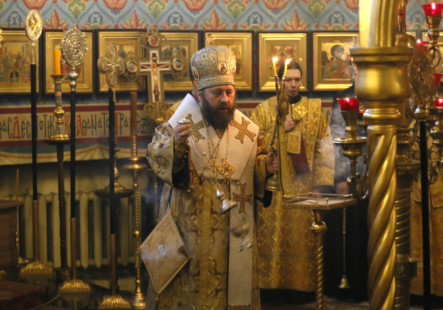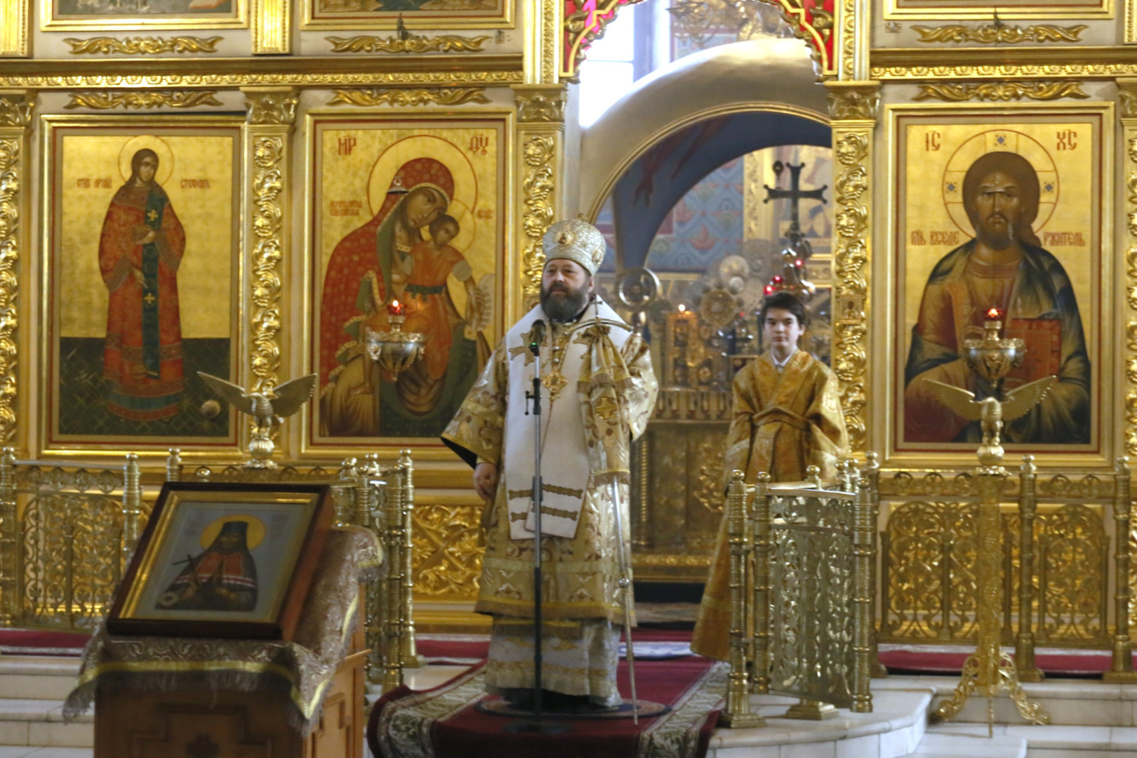 По отпусте Правящий архиерей проповедовал, рассказав о просветительской и миссионерской деятельности святителя.