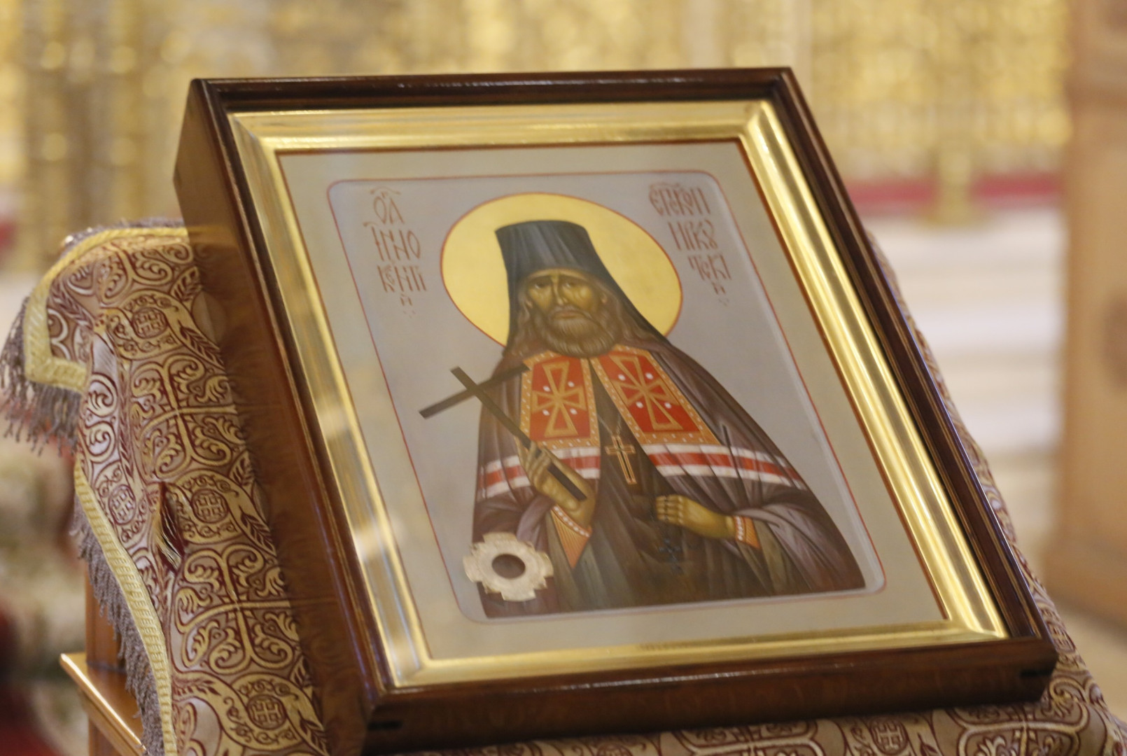 На середине храма находилась икона святителя Иннокентия Иркутского с частицей его святых мощей.