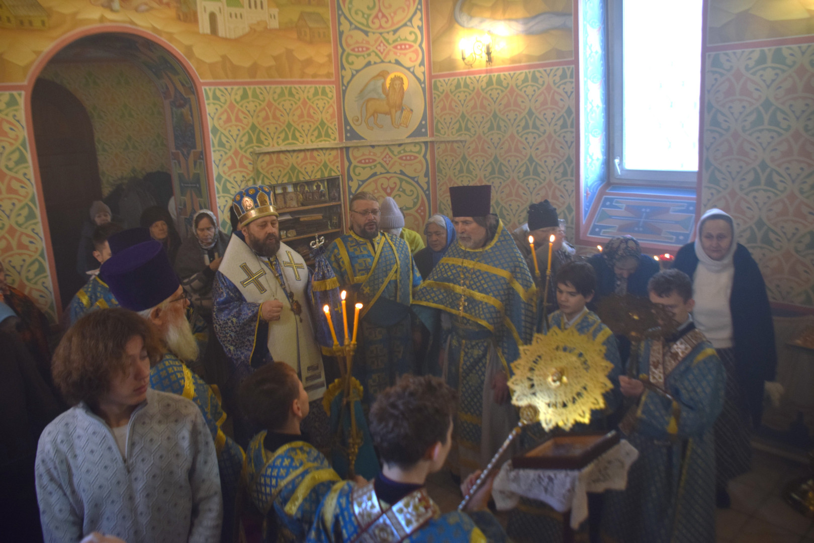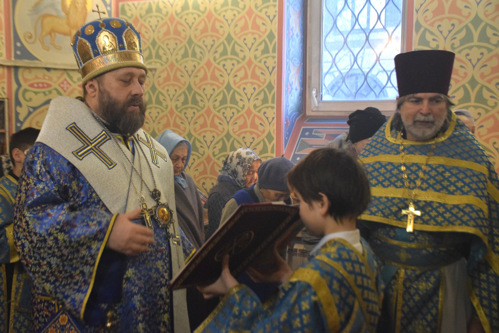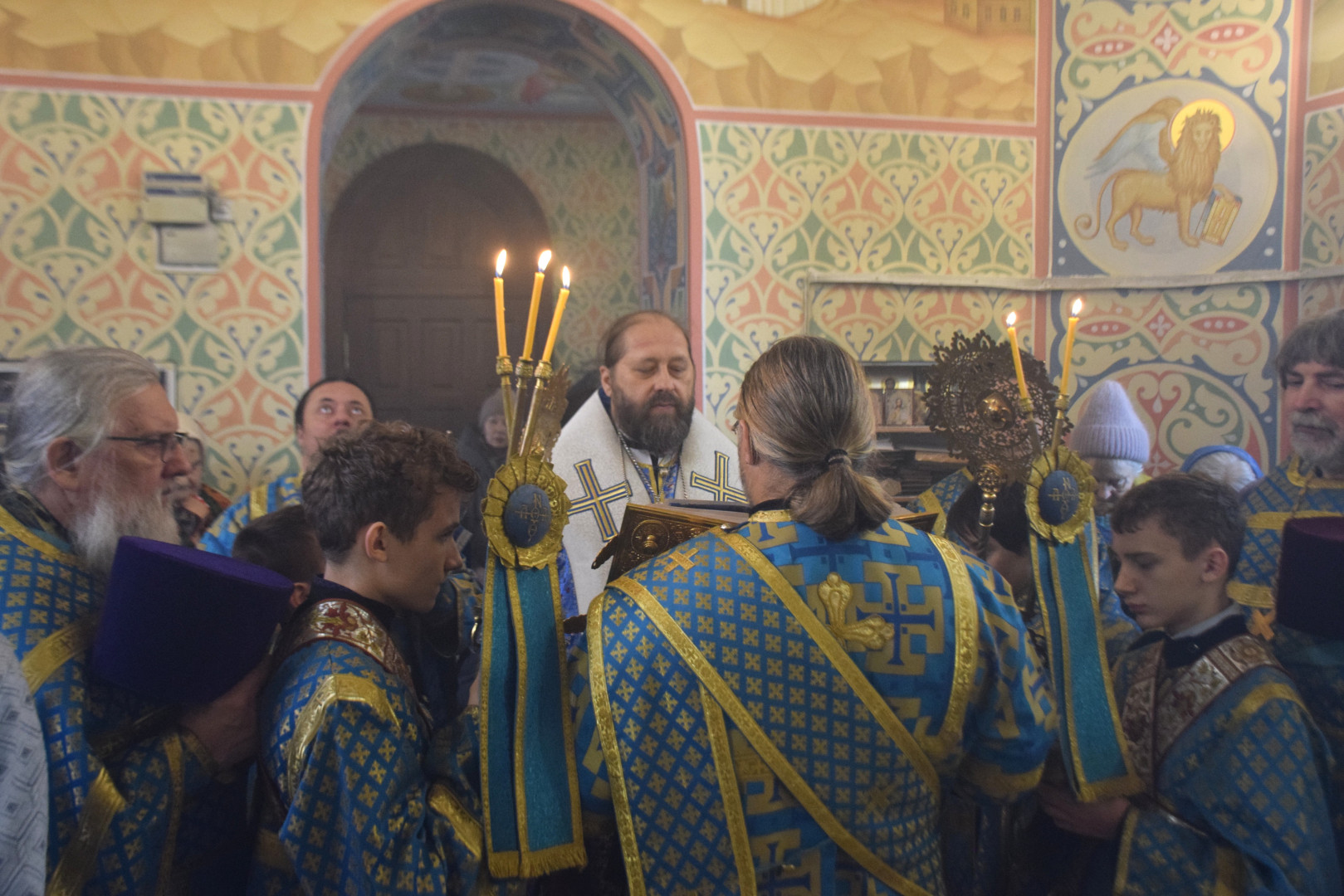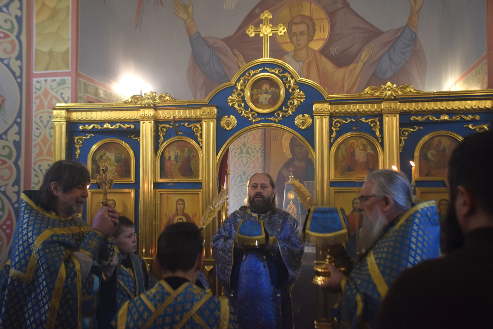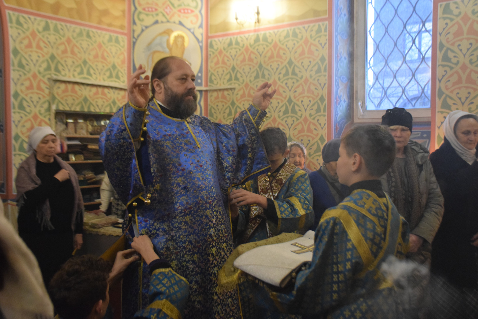 Владыке сослужили протоиерей Олег Попов и священник Алексий Демченко. Диаконский чин составили протодиакон Андрей Ермаков и диакон Сергий Симонов. Литургические песнопения исполнил архиерейский хор под управлением Марии Ермаковой.