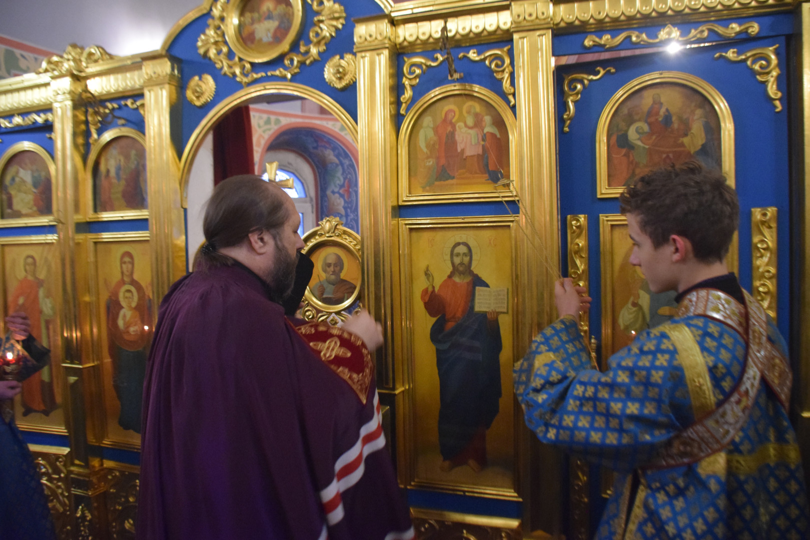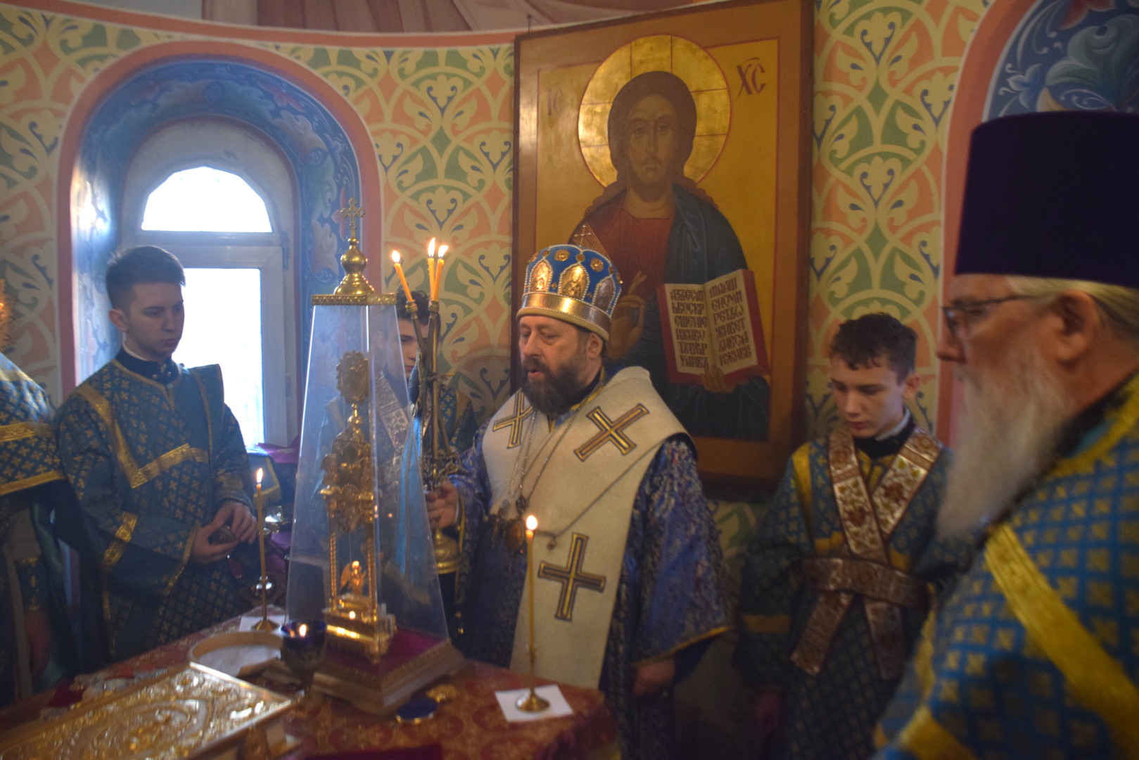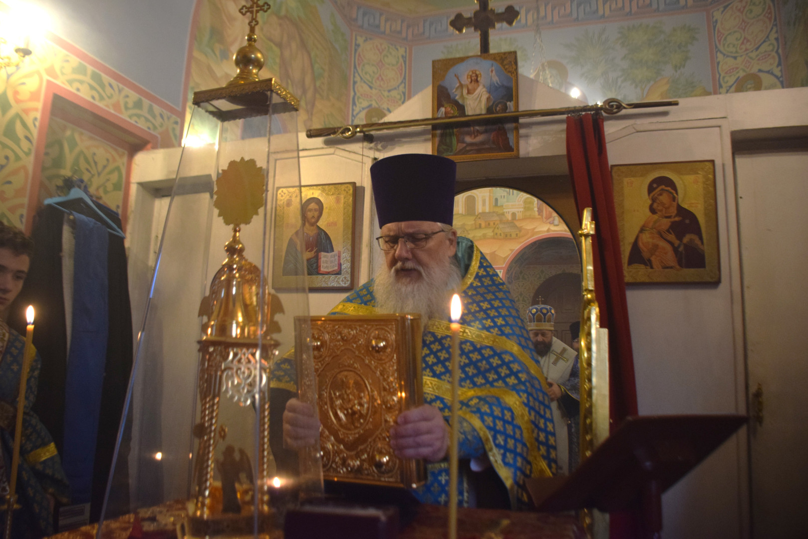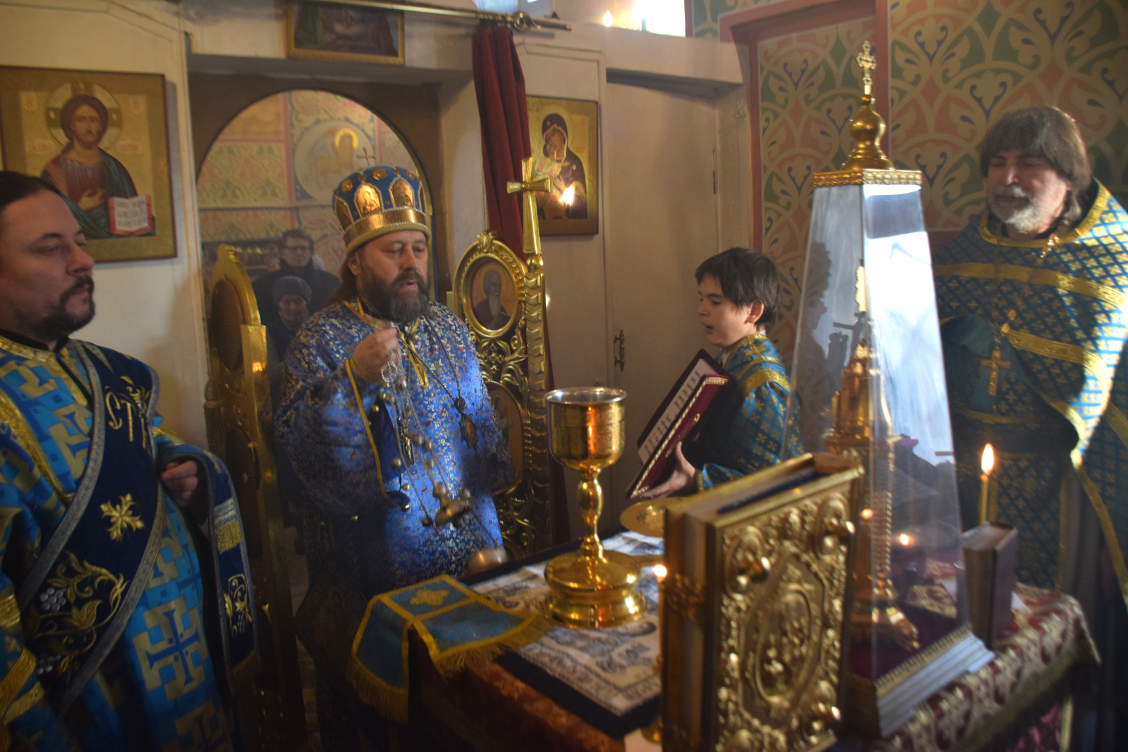 Владыке сослужили протоиерей Олег Попов и священник Алексий Демченко. Диаконский чин составили протодиакон Андрей Ермаков и диакон Сергий Симонов. Литургические песнопения исполнил архиерейский хор под управлением Марии Ермаковой.
