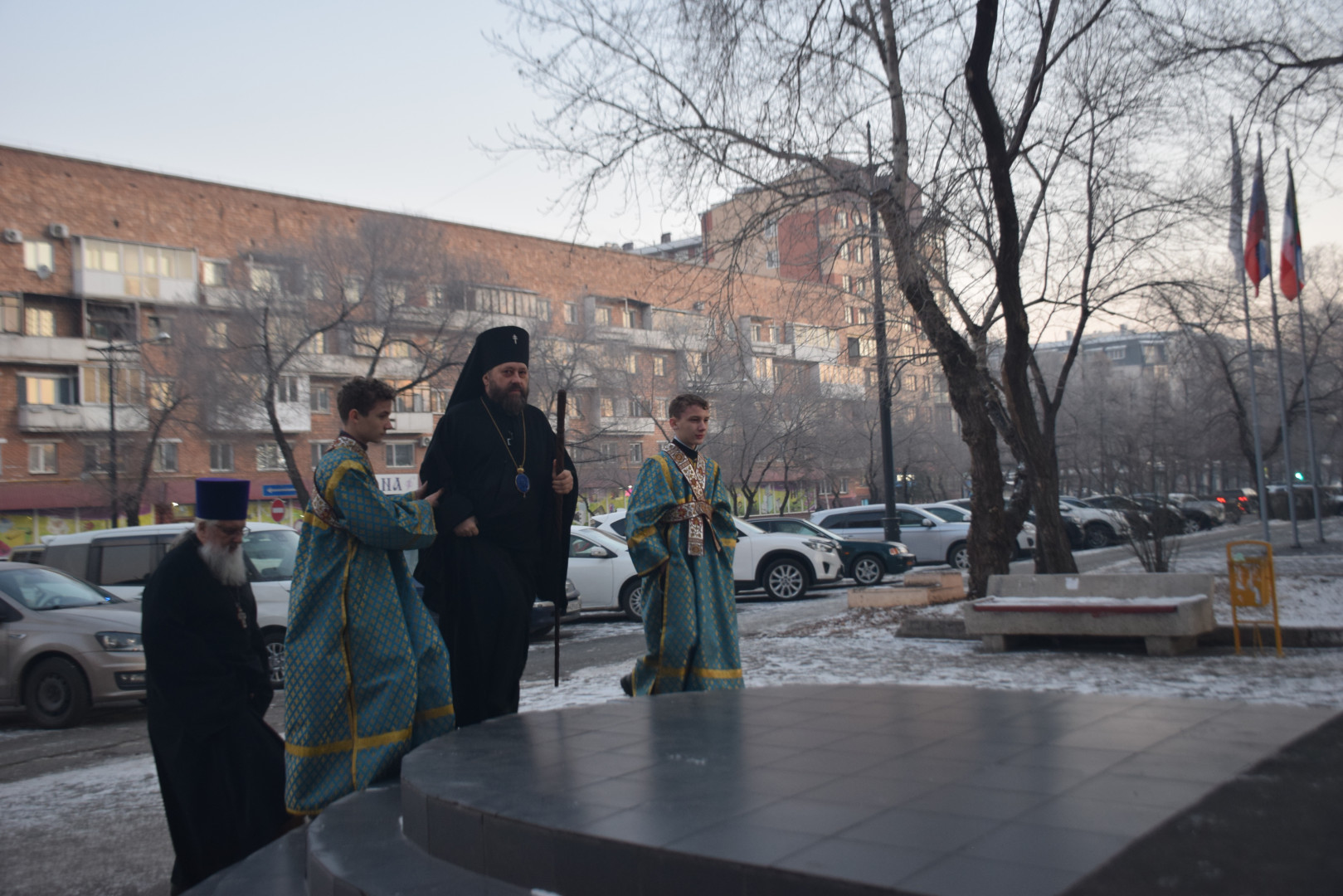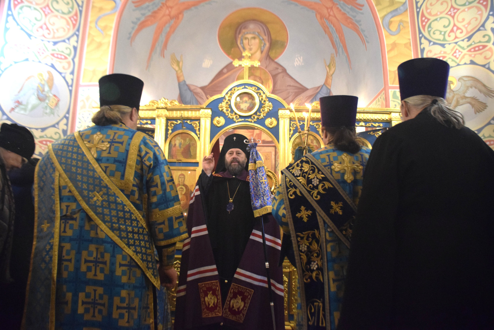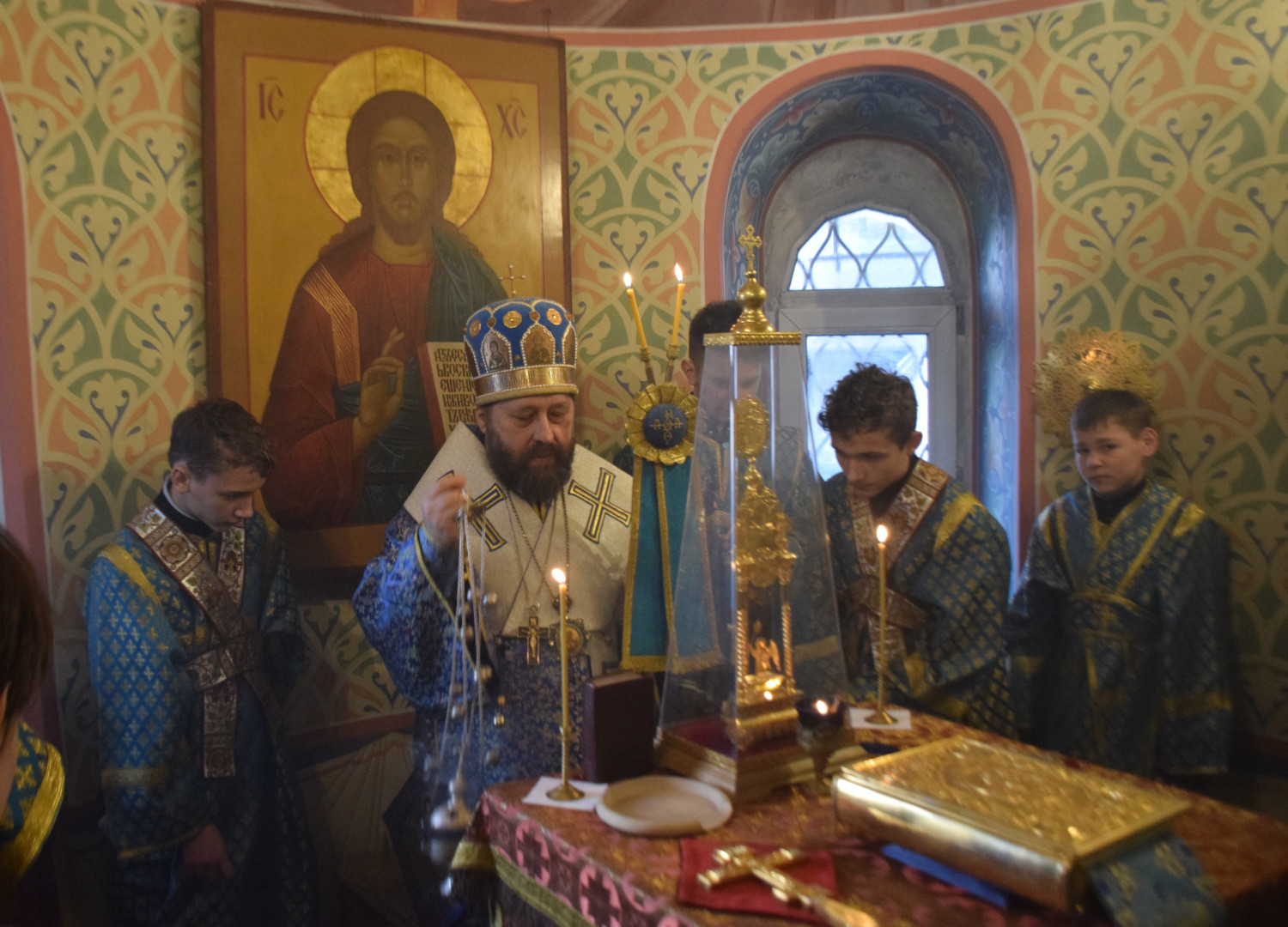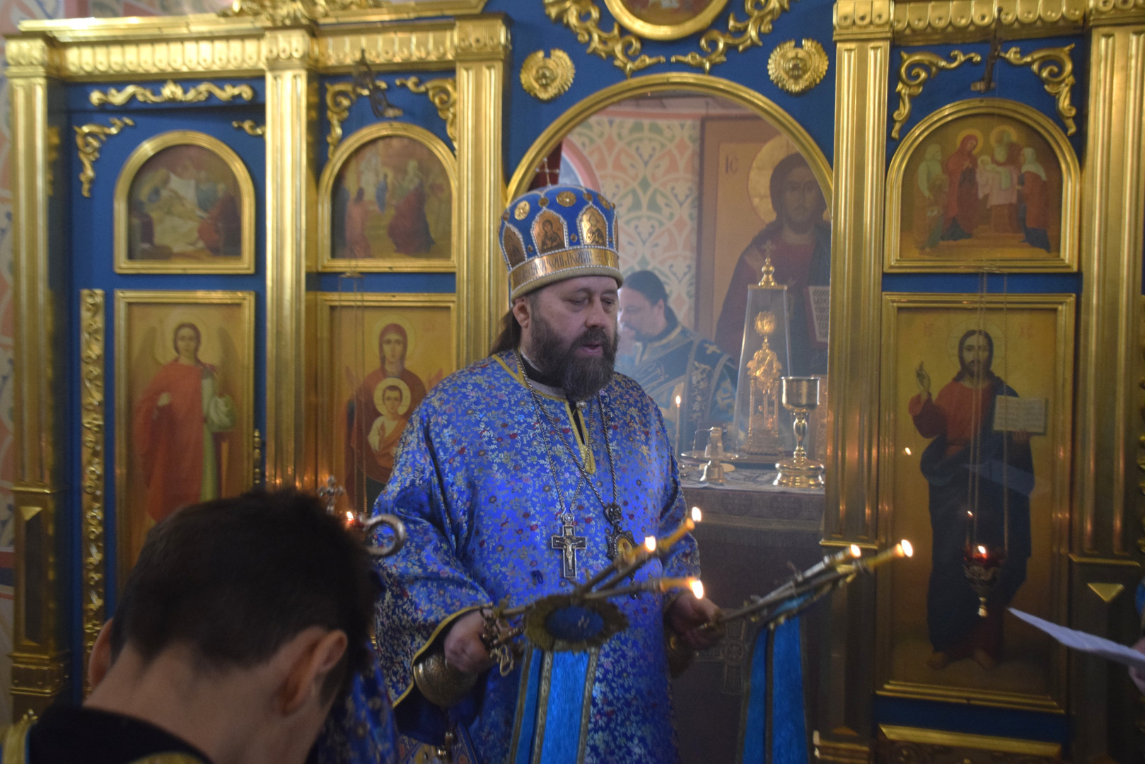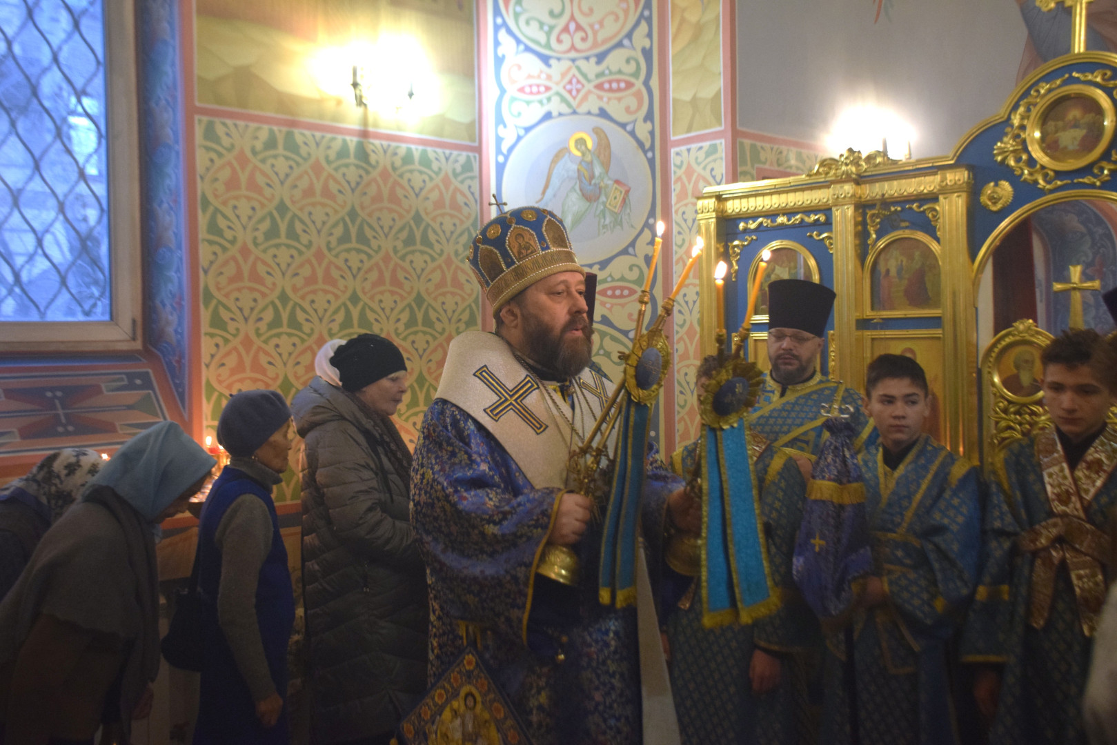 Владыке сослужили протоиерей Олег Попов и священник Алексий Демченко. Диаконский чин составили протодиакон Андрей Ермаков и диакон Сергий Симонов. Литургические песнопения исполнил архиерейский хор под управлением Марии Ермаковой.