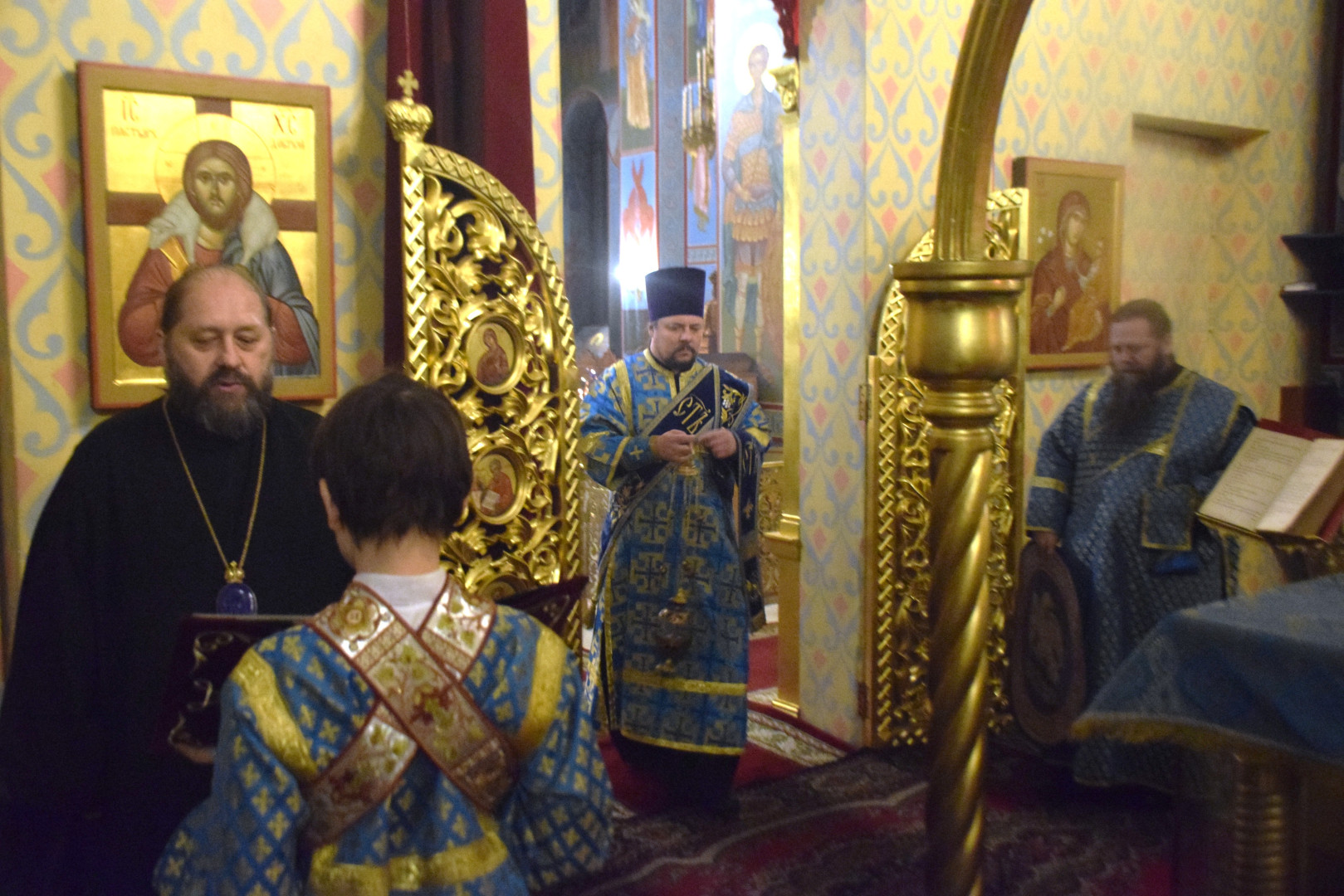 Владыке сослужили протоиереи Олег Попов, Димитрий Ляпустин, священник Евгений Мотькин и Евгений Девятов. Диаконский чин составили протодиакон Андрей Ермаков, диаконы Сергий Симонов, Владислав Бойченко, Михаил Луцик и иеродиакон Нестор (Рыбин). Богослужебные песнопения исполнил архиерейский хор под управлением М. Ермаковой.