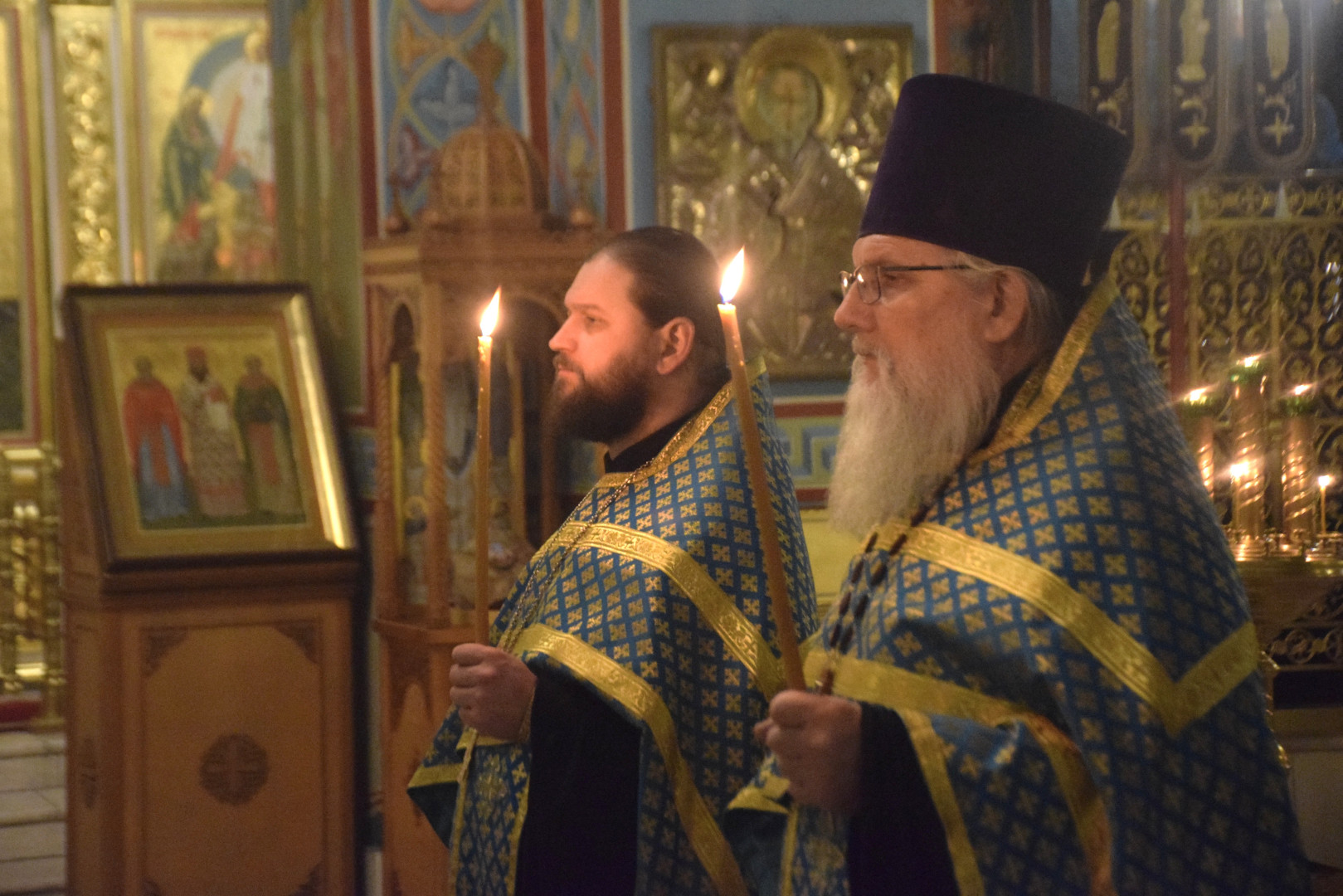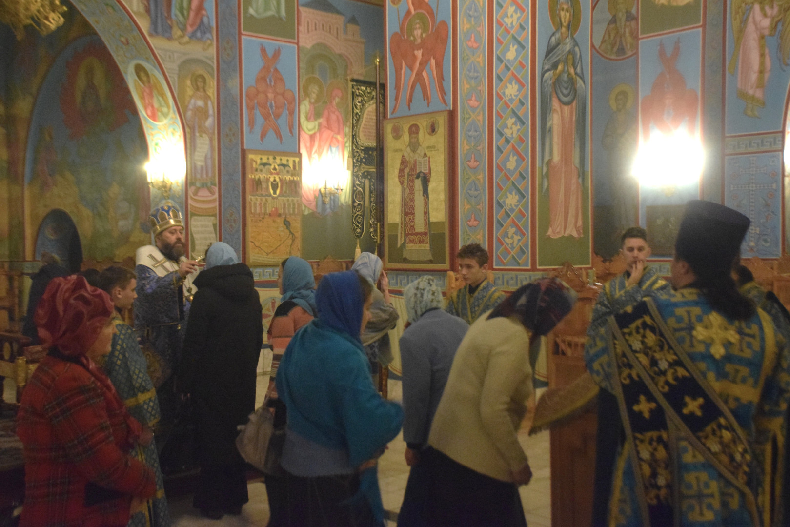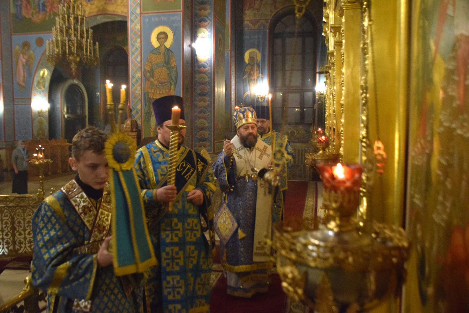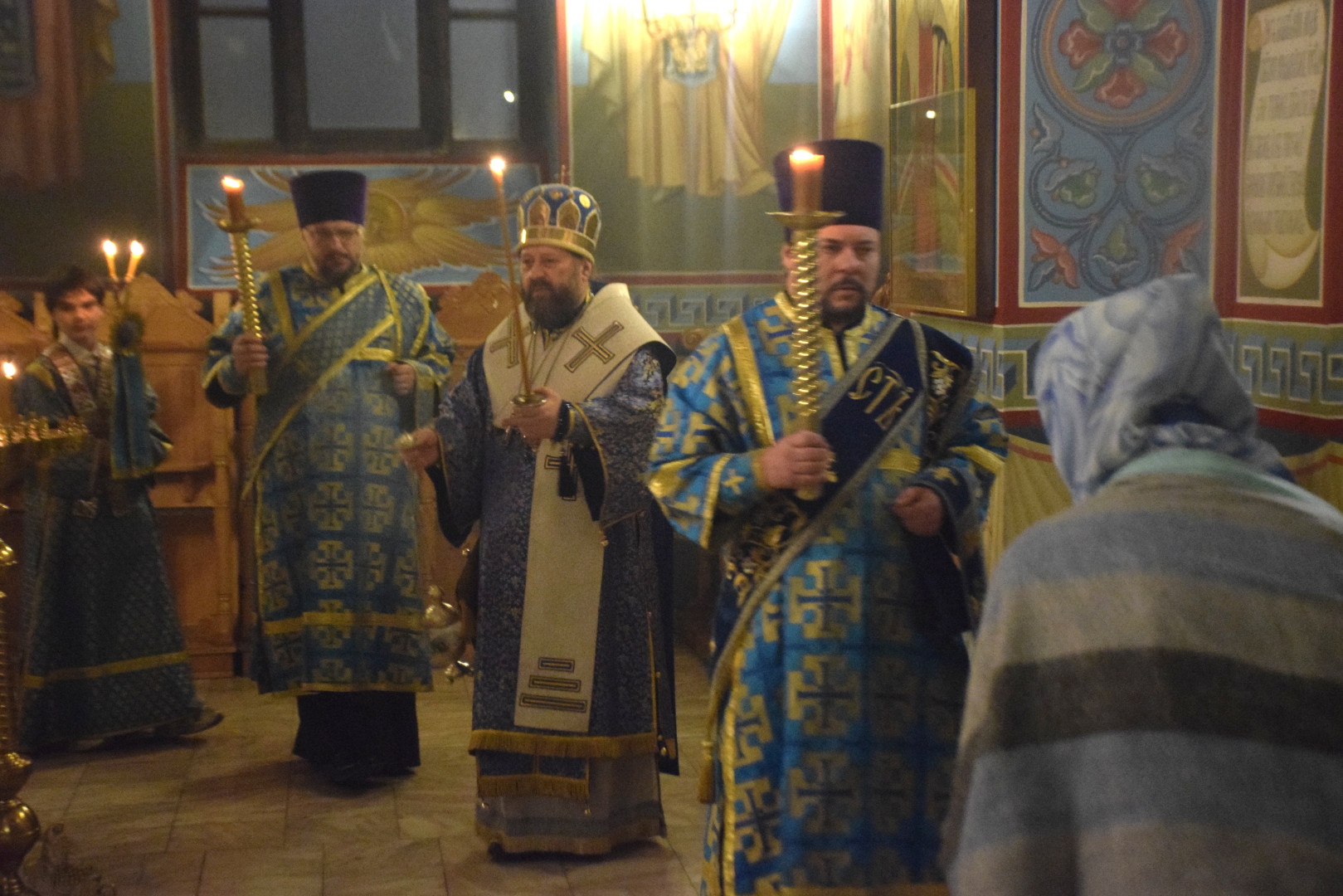 На полиелее прозвучало величание Божией Матери: «Достойно есть величати Тя, Богородице, Честнейшую Херувим и Славнейшую без сравнения Серафим».