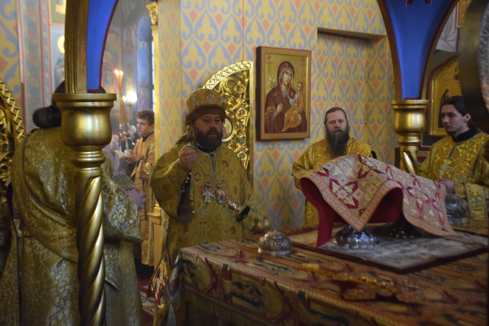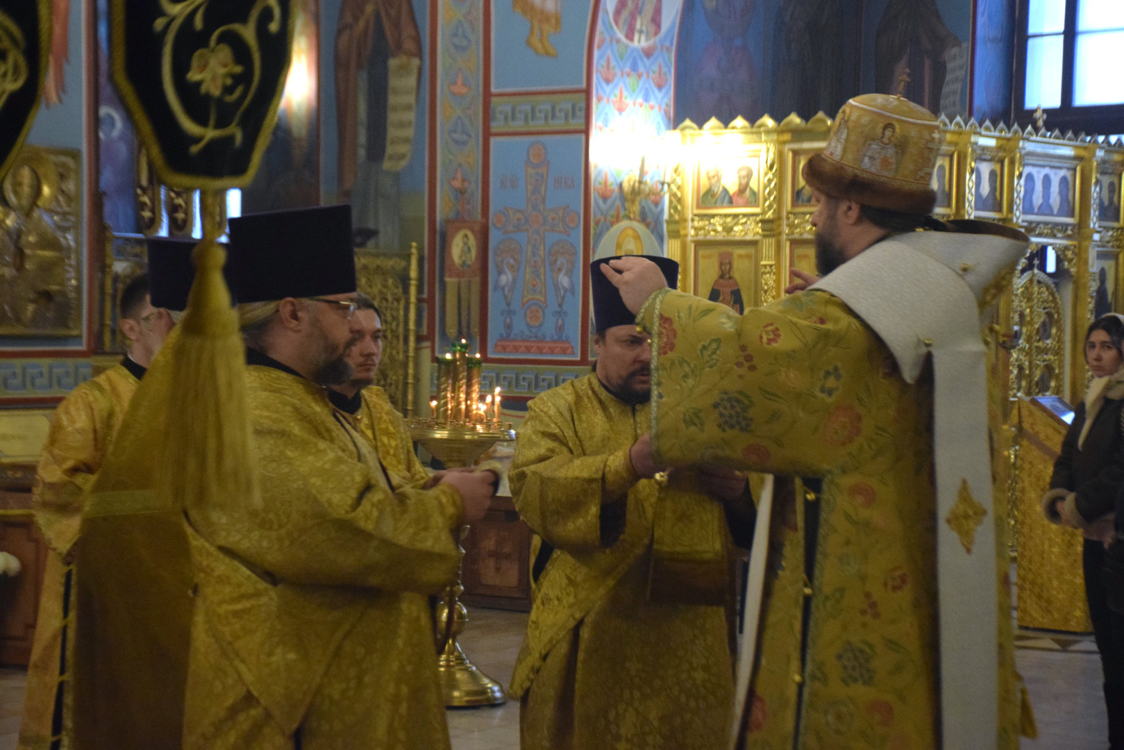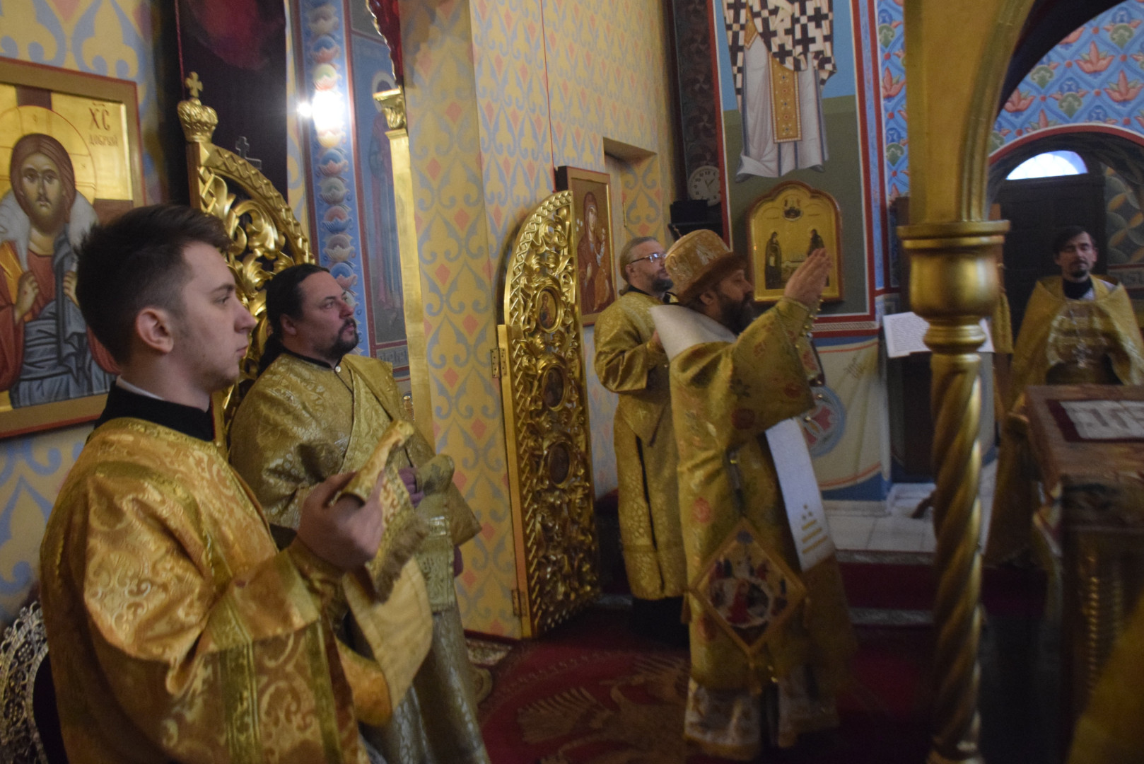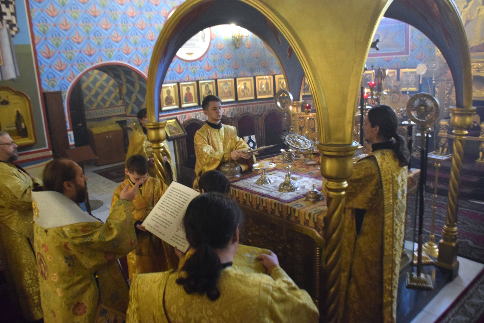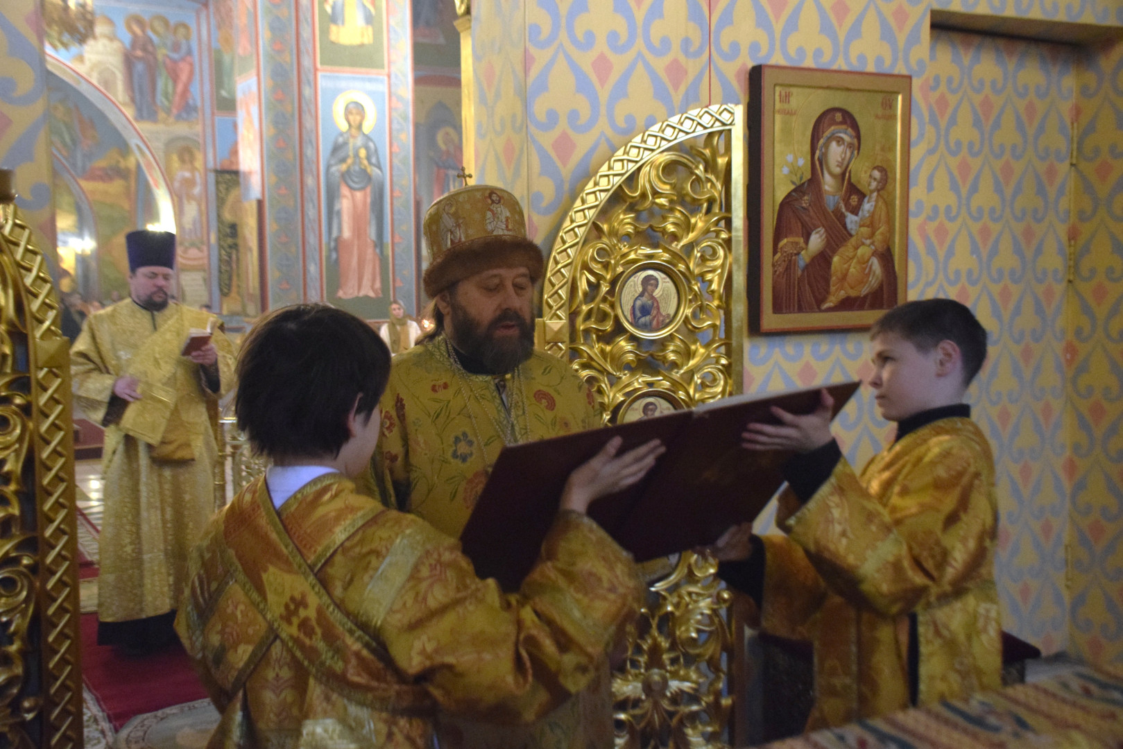 Владыке сослужили протоиерей Олег Попов и священник Евгений Девятов. Диаконский чин составили протодиакон Андрей Ермаков, диаконы Сергий Симонов и Владислав Бойченко. Богослужебные песнопения исполнил архиерейский хор под управлением Марии Ермаковой.