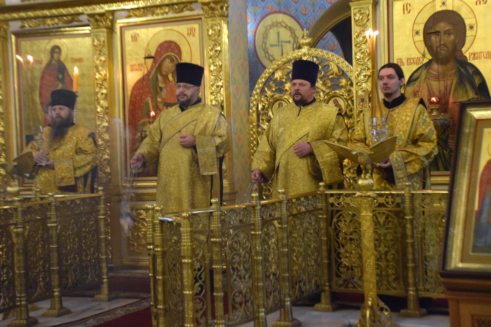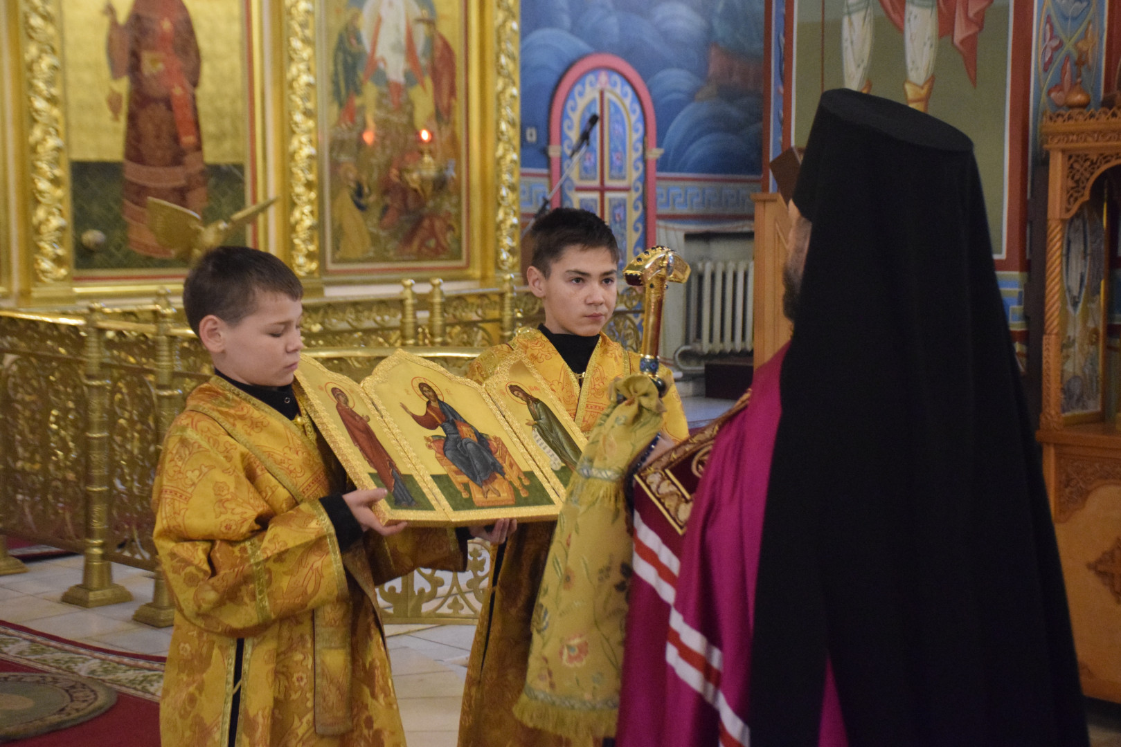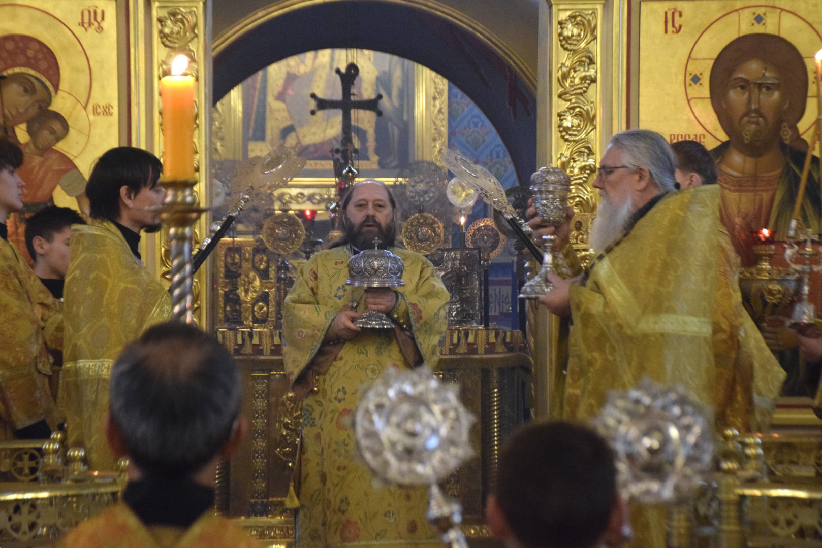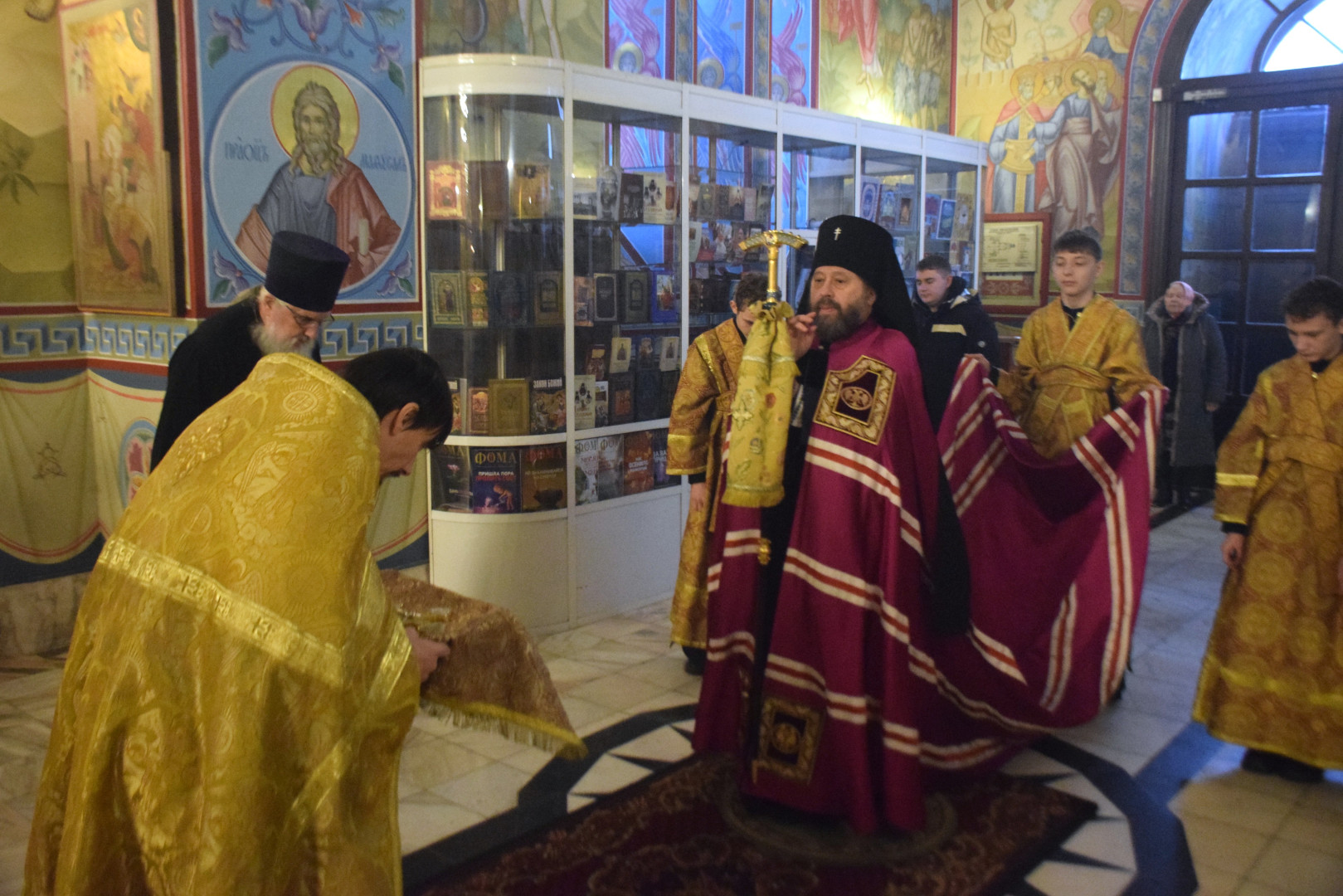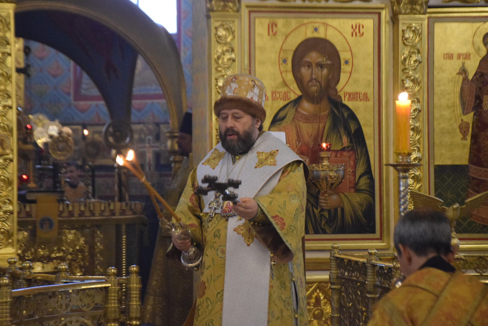 Владыке сослужили протоиерей Олег Попов и священник Евгений Девятов. Диаконский чин составили протодиакон Андрей Ермаков, диаконы Сергий Симонов и Владислав Бойченко. Богослужебные песнопения исполнил архиерейский хор под управлением Марии Ермаковой.
