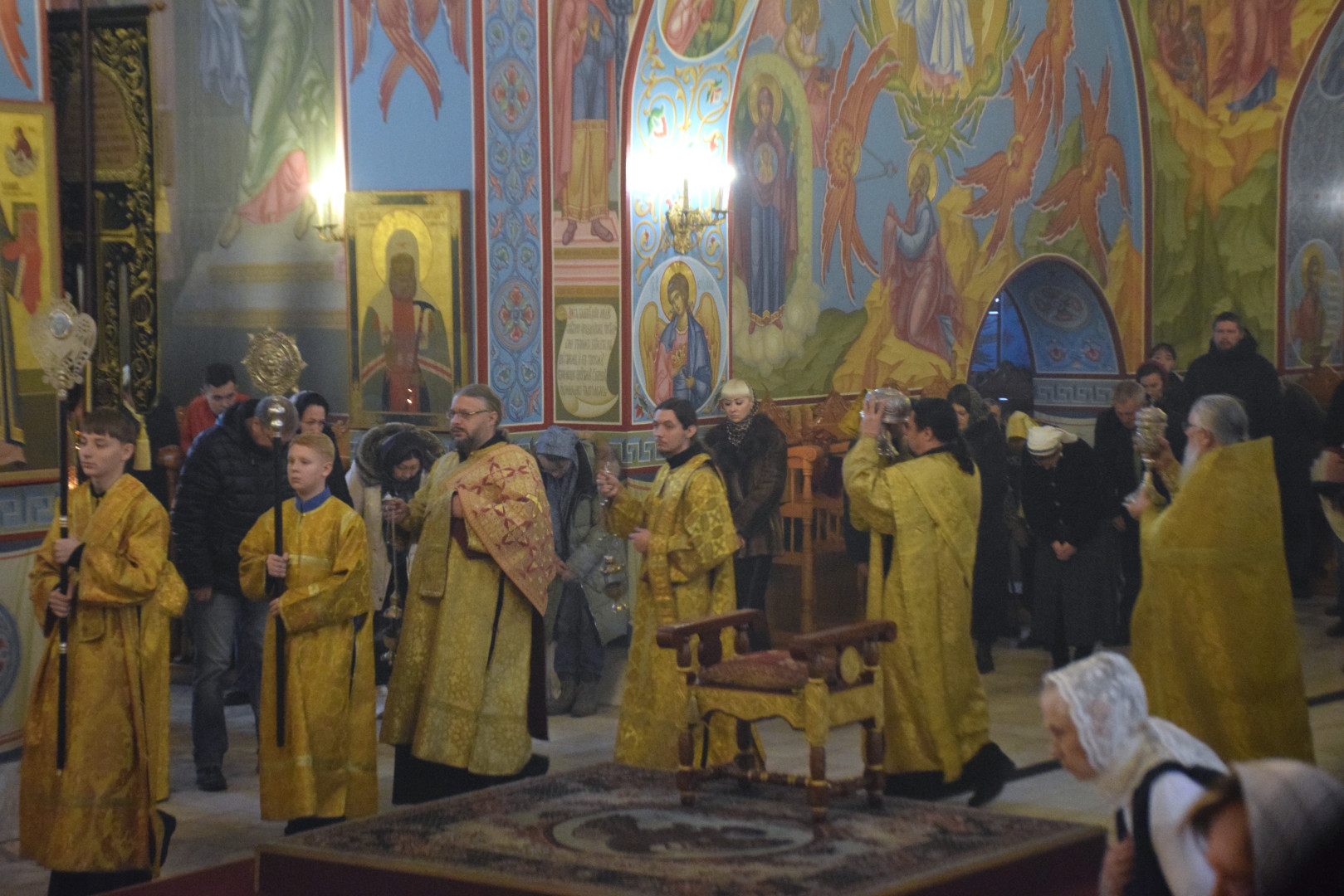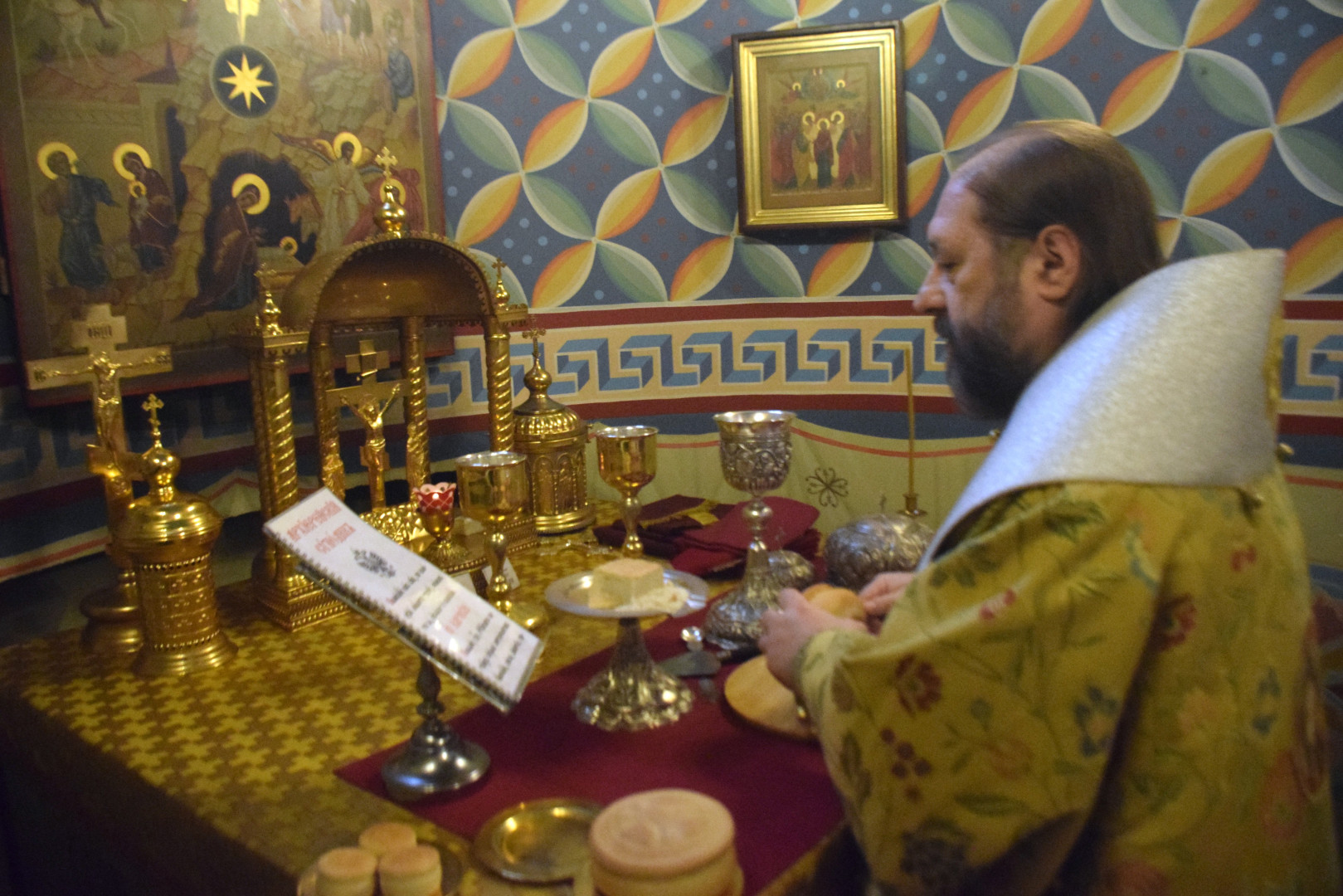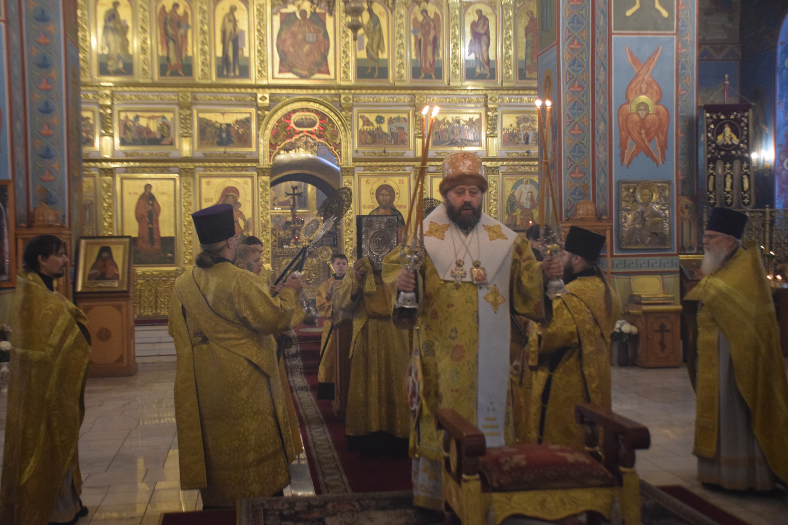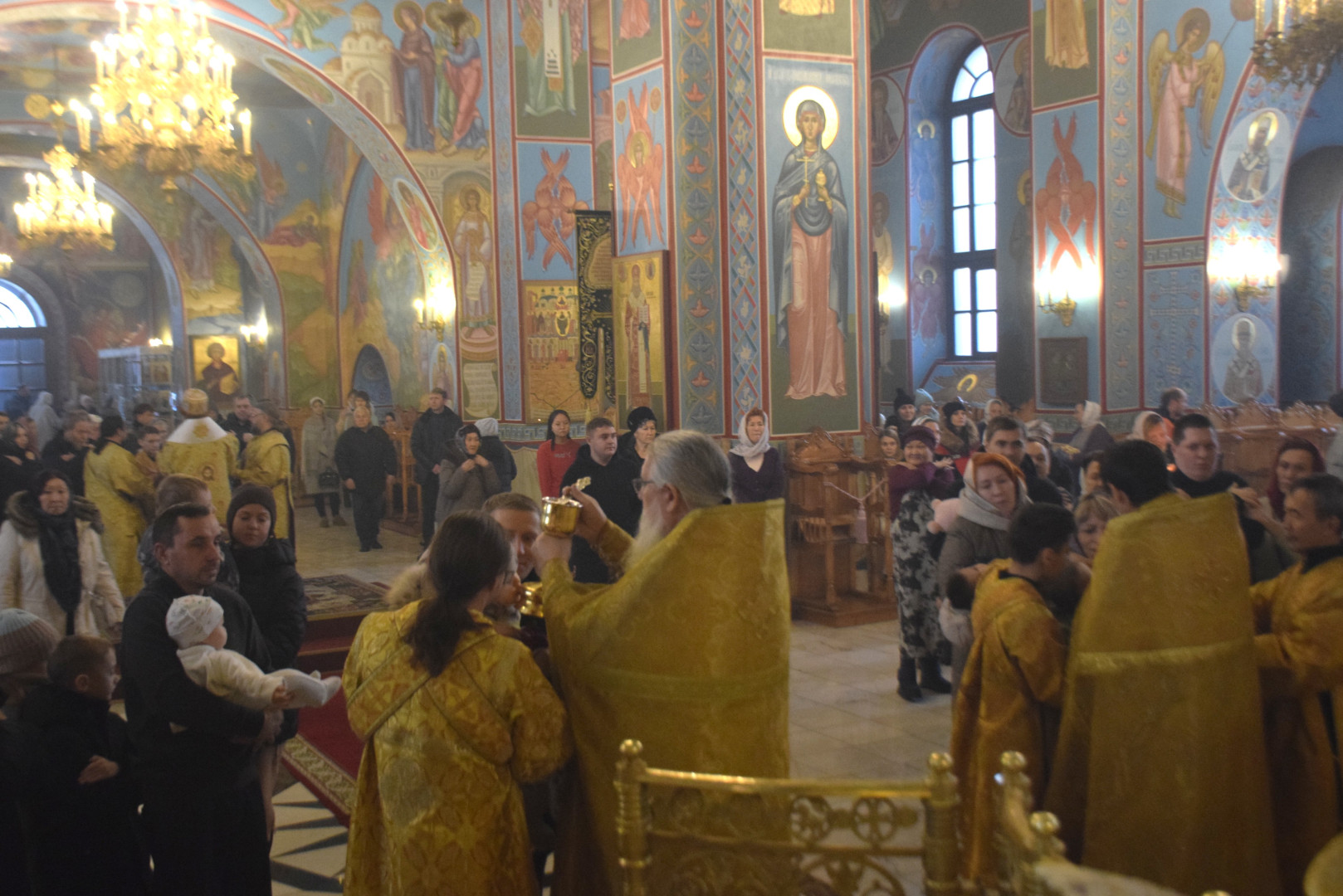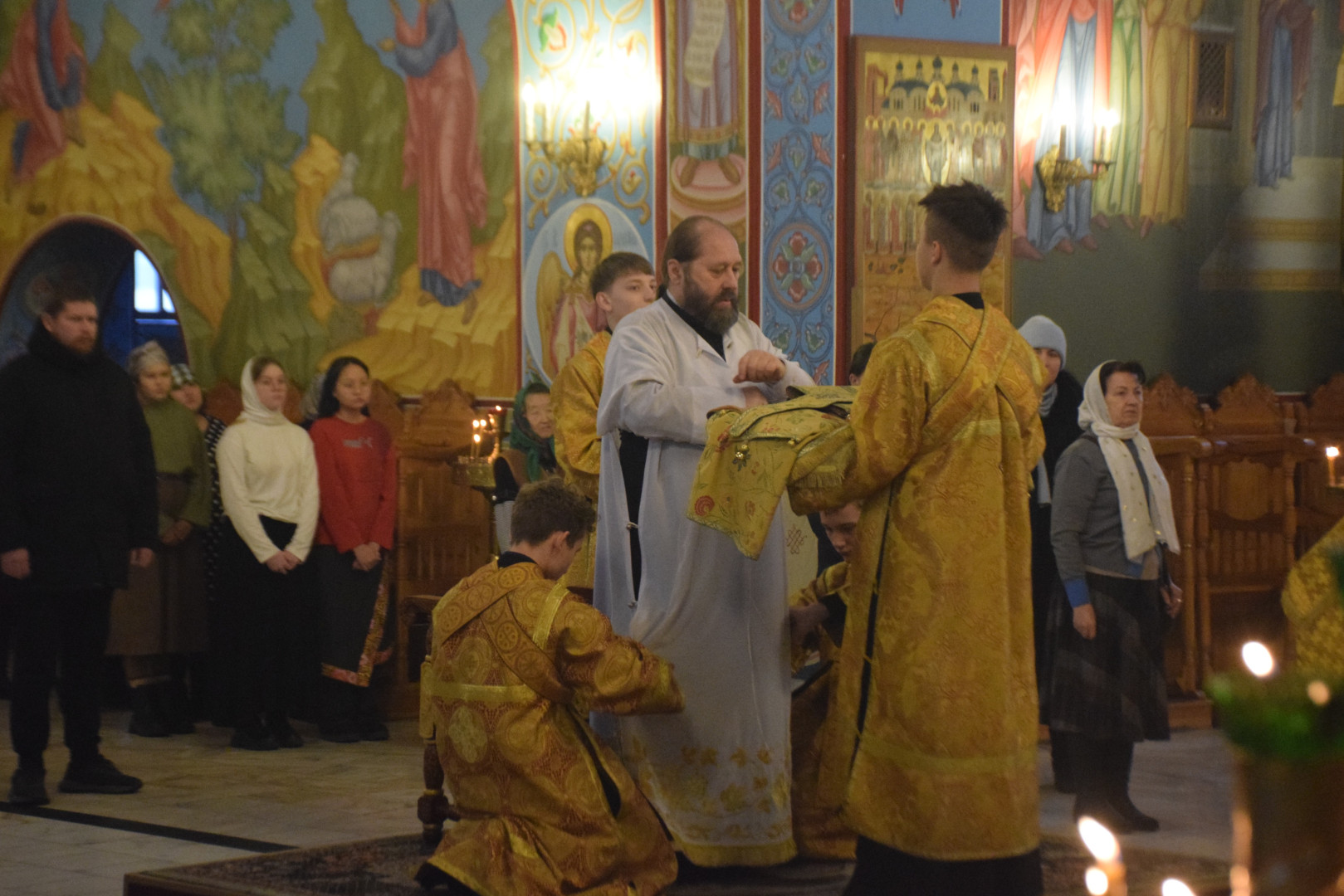 Владыке сослужили протоиерей Олег Попов и священник Евгений Девятов. Диаконский чин составили протодиакон Андрей Ермаков, диаконы Сергий Симонов и Владислав Бойченко. Богослужебные песнопения исполнил архиерейский хор под управлением Марии Ермаковой.