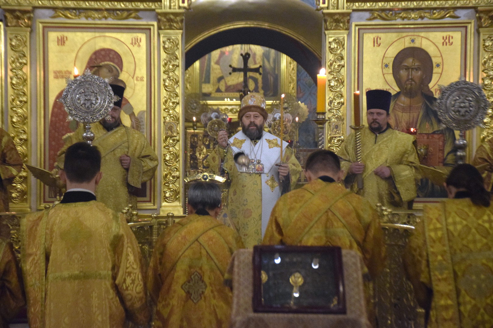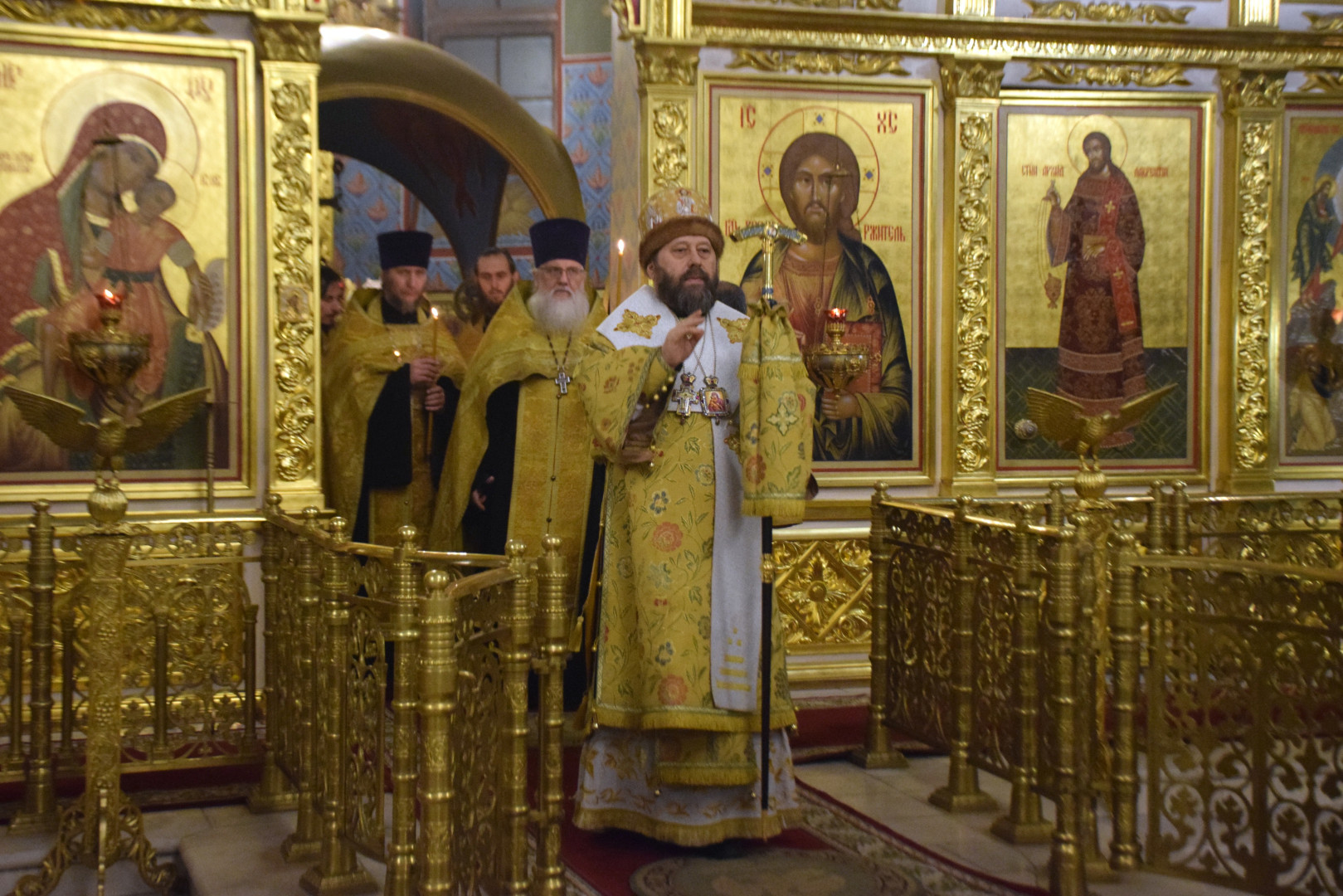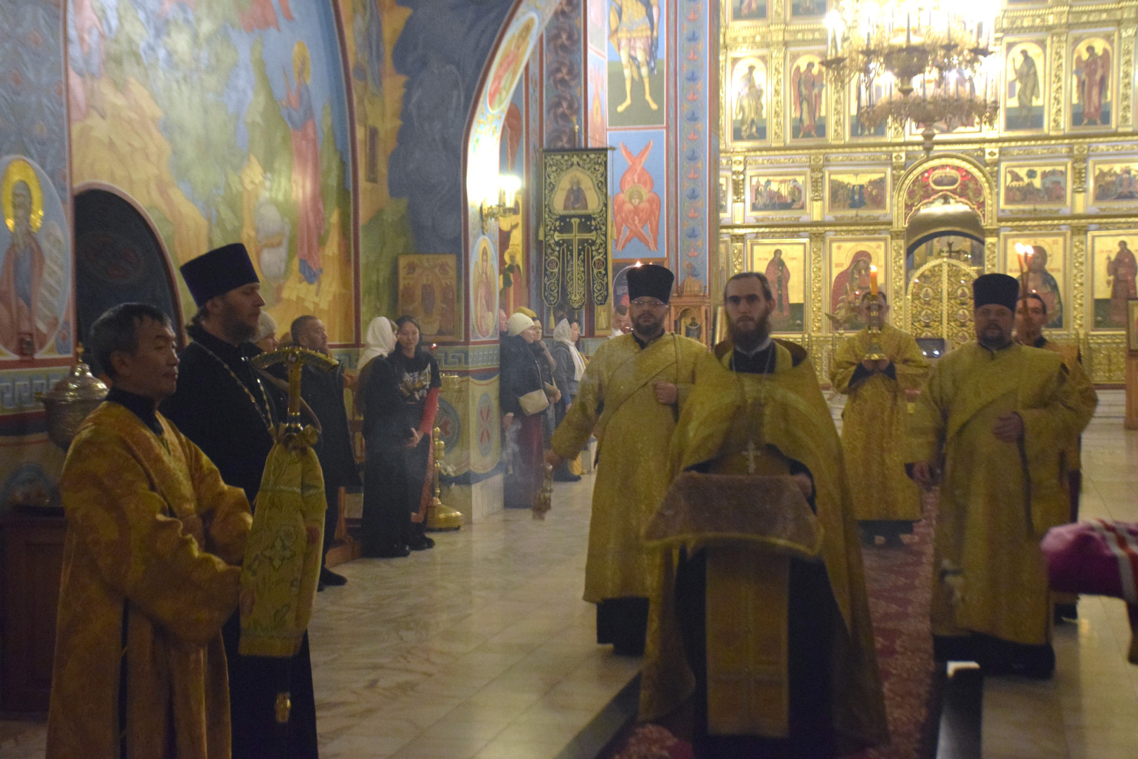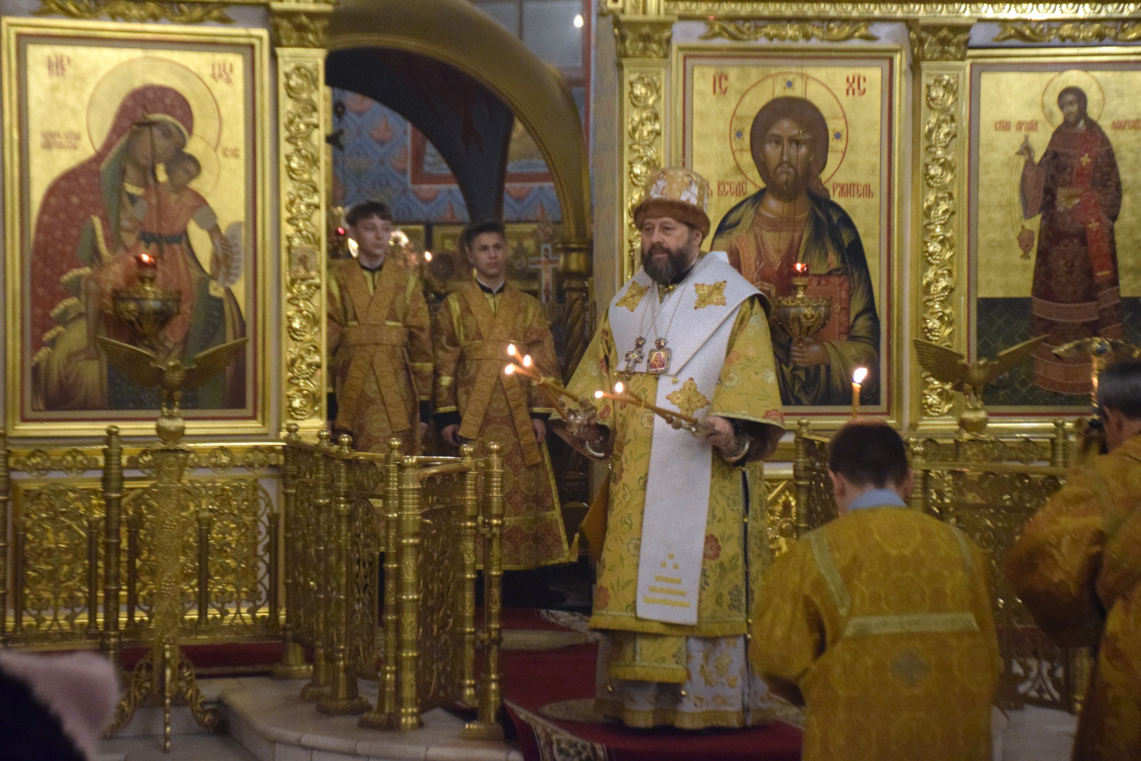 14 декабря 2025 года, накануне Недели 27-й по Пятидесятнице, дня памяти святого пророка Наума и праведного Филарета Милостивого, Преосвященный архиепископ Абаканский и Хакасский Ионафан в сослужении соборных клириков совершил Всенощное бдение с литией и освящением хлебов в Спасо-Преображенском соборе столицы Хакасии.