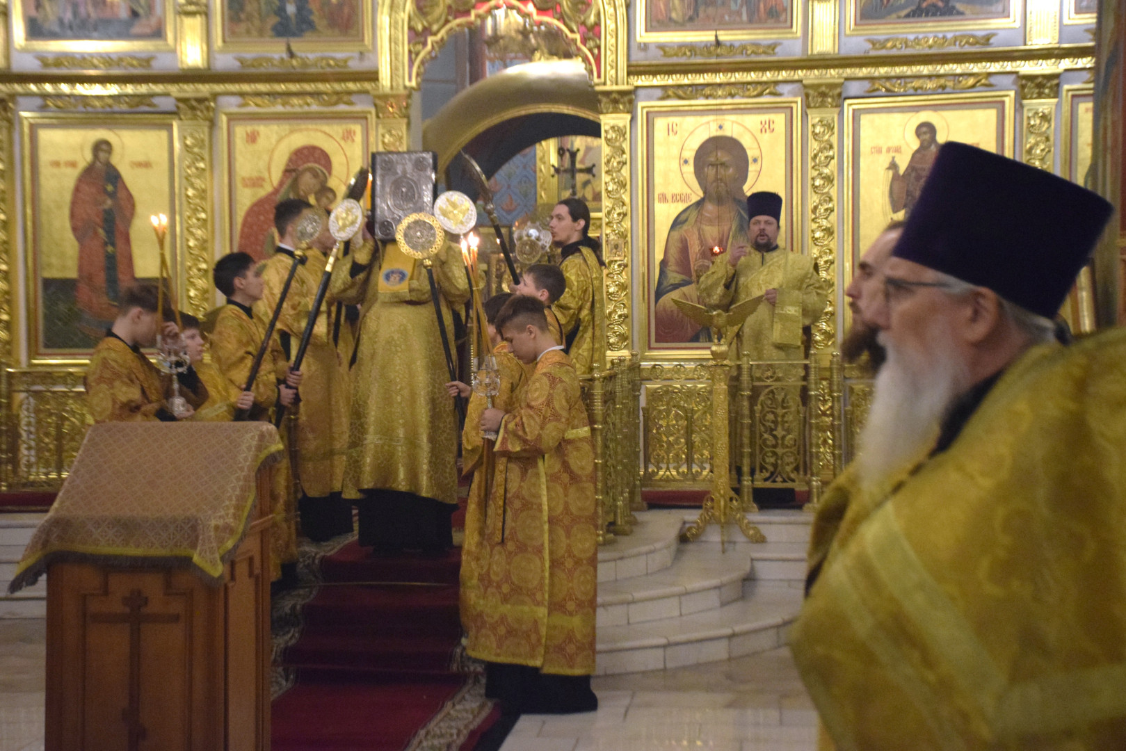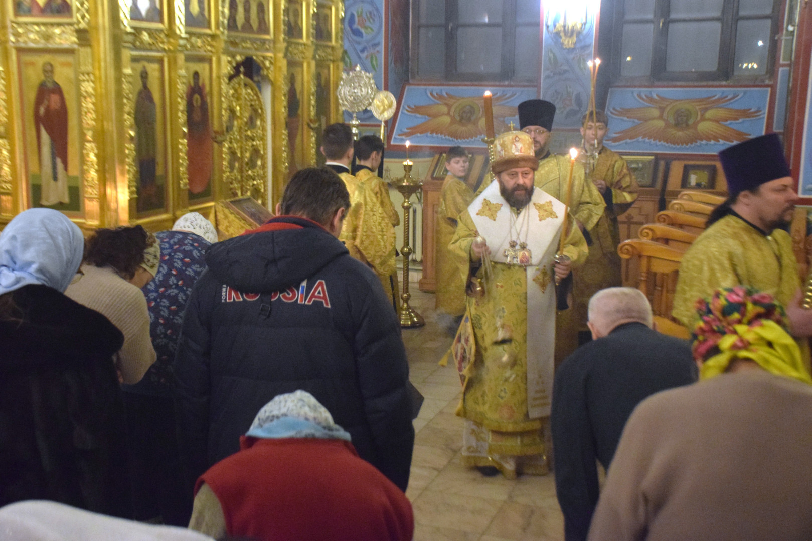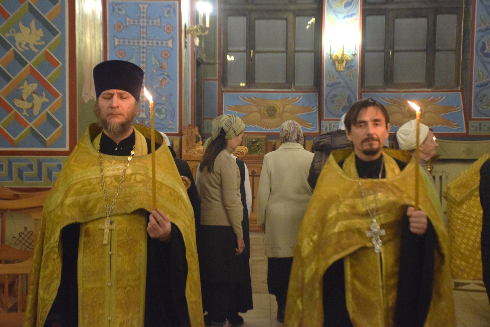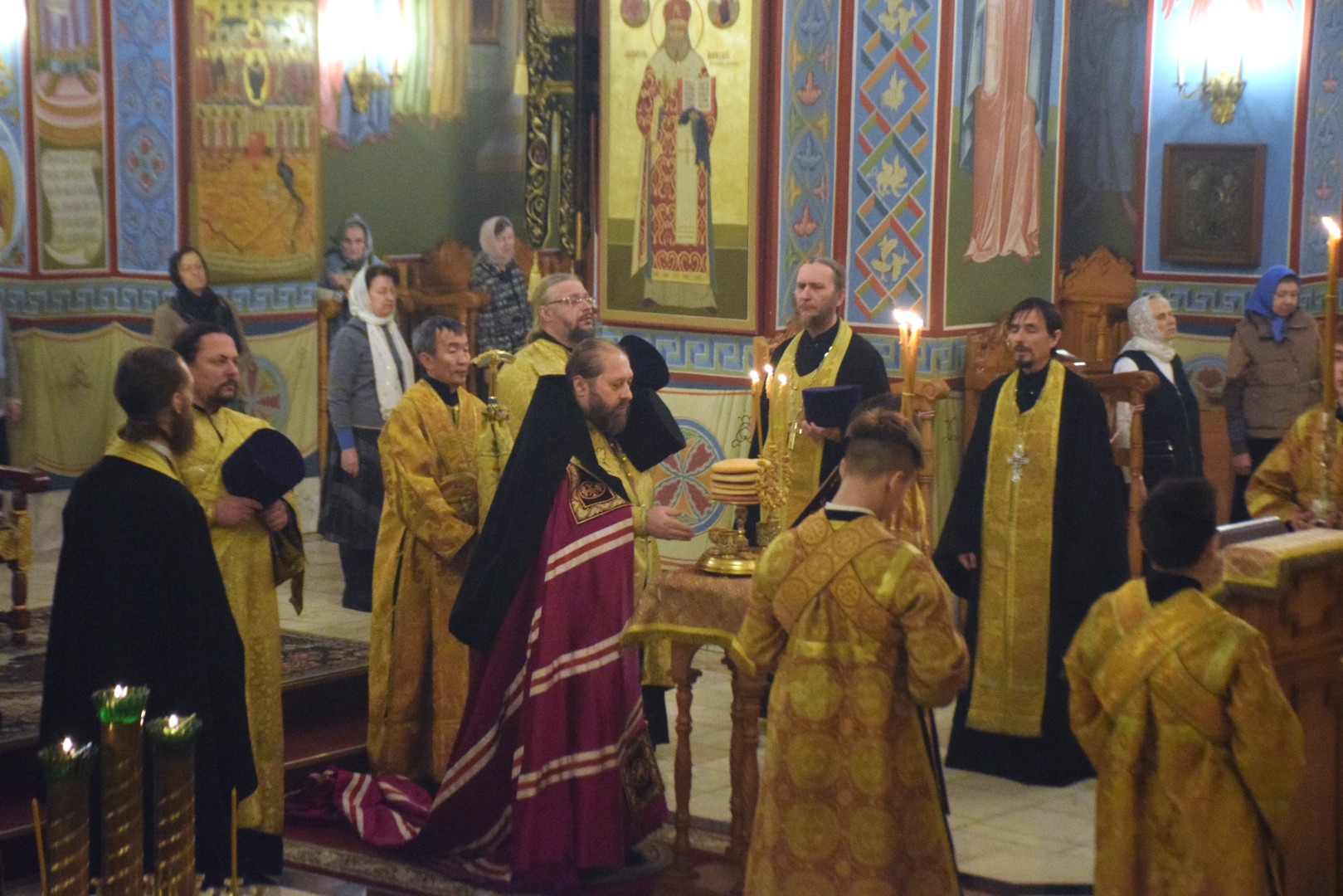 14 декабря 2025 года, накануне Недели 27-й по Пятидесятнице, дня памяти святого пророка Наума и праведного Филарета Милостивого, Преосвященный архиепископ Абаканский и Хакасский Ионафан в сослужении соборных клириков совершил Всенощное бдение с литией и освящением хлебов в Спасо-Преображенском соборе столицы Хакасии.