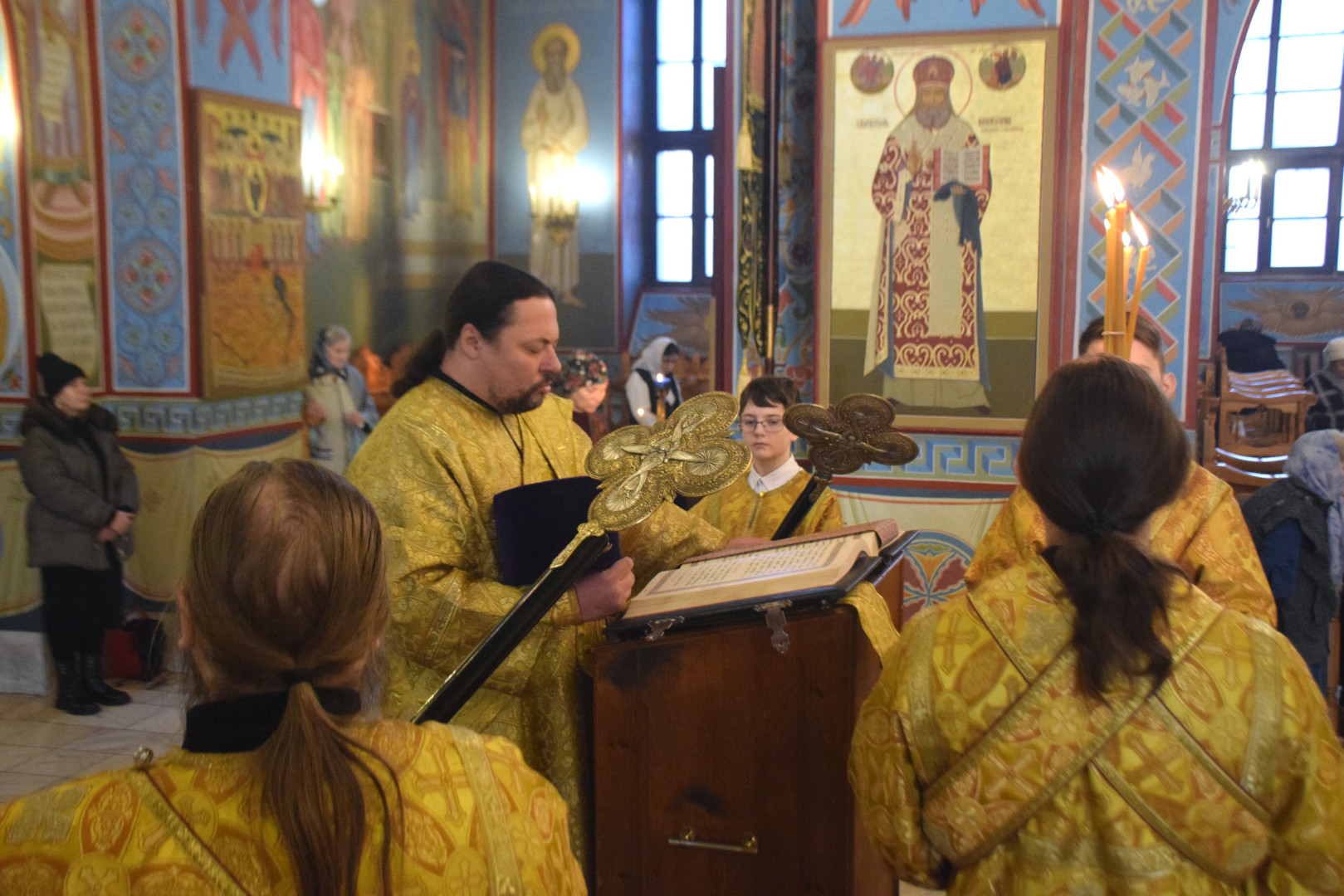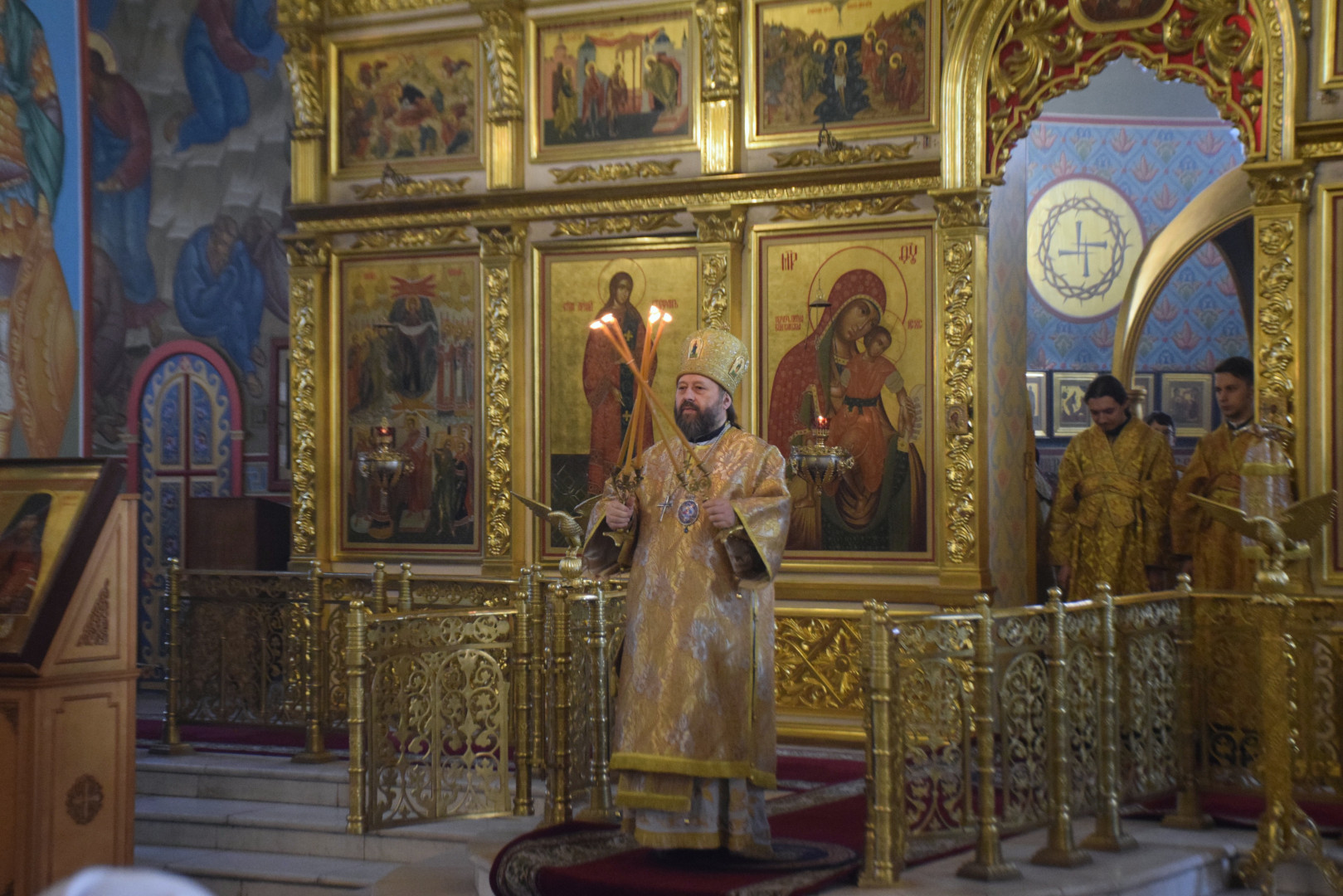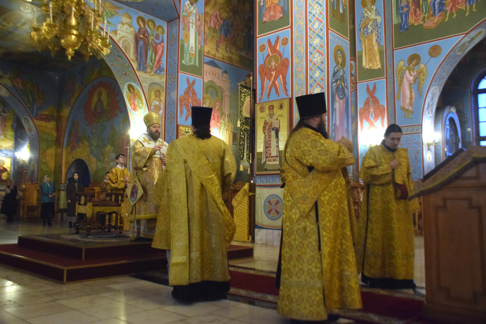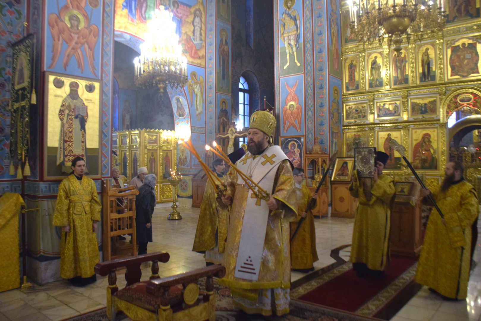 Архипастырю сослужили протоиерей Олег Попов и священник Евгений Девятов. Диаконский чин составили протодиакон Андрей Ермаков, диаконы Сергий Симонов, Владислав Бойченко, Михаил Луцик и иеродиакон Нестор (Рыбин). Богослужебные песнопения исполнил архиерейский хор под управлением М. Ермаковой.
