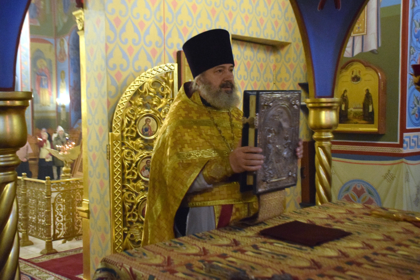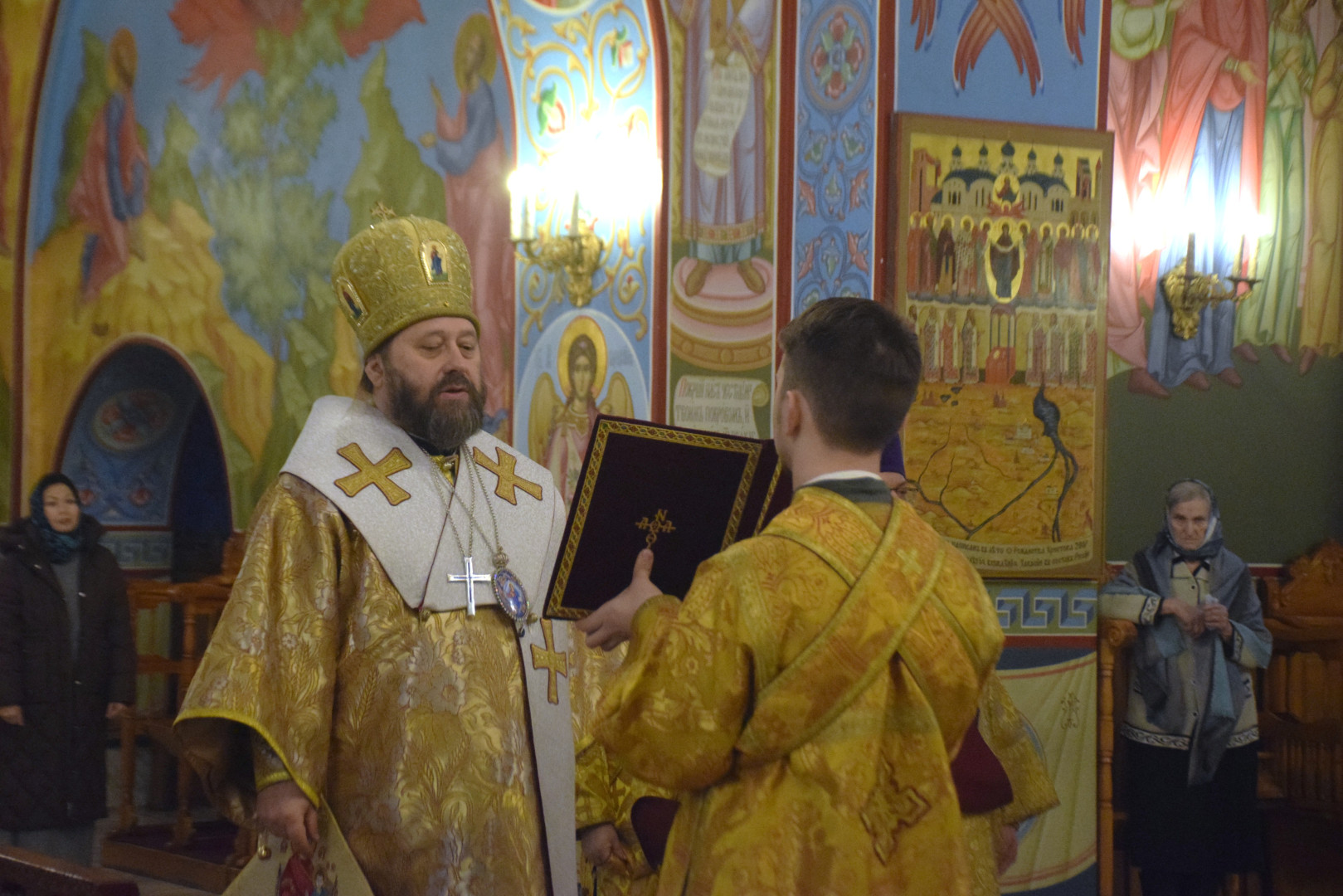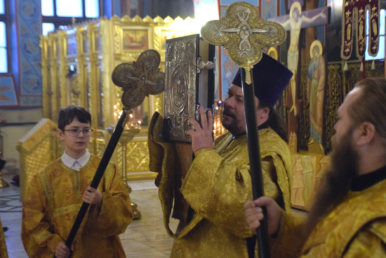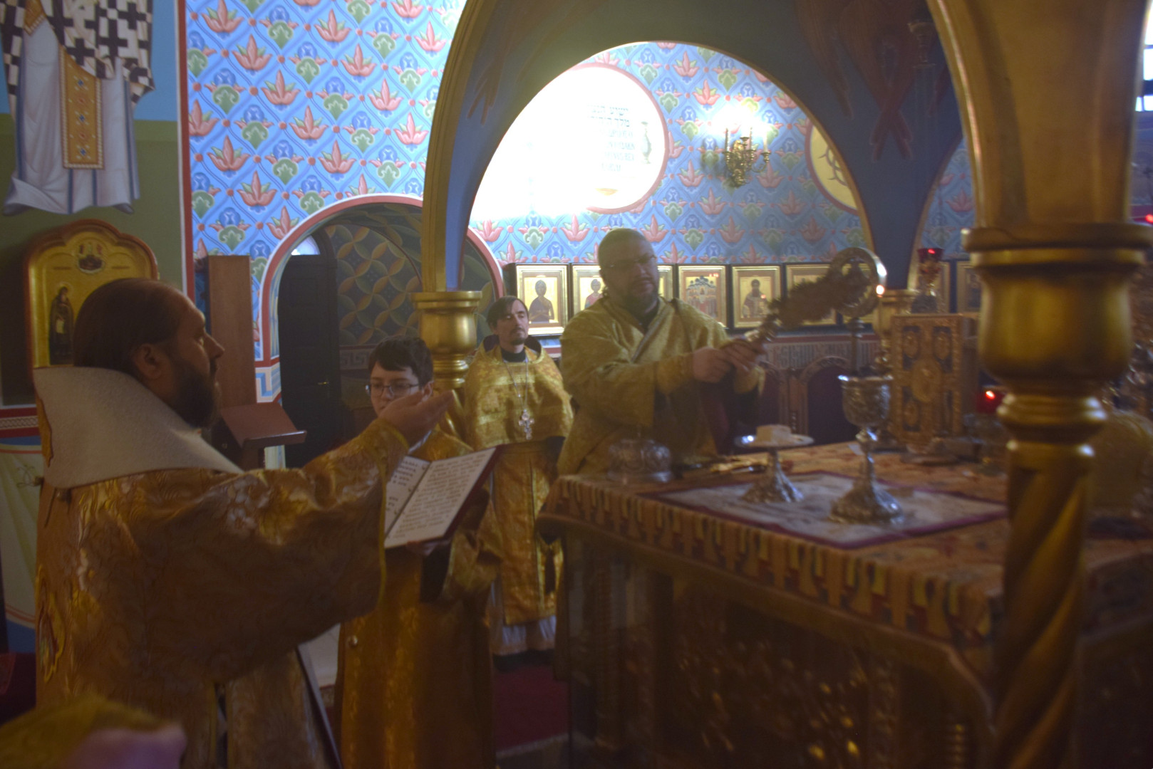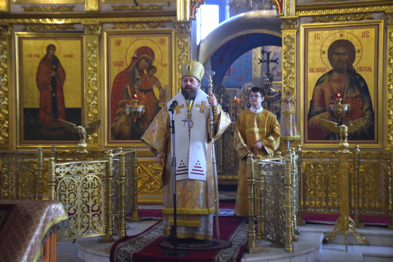 Архипастырю сослужили протоиерей Олег Попов и священник Евгений Девятов. Диаконский чин составили протодиакон Андрей Ермаков, диаконы Сергий Симонов, Владислав Бойченко, Михаил Луцик и иеродиакон Нестор (Рыбин). Богослужебные песнопения исполнил архиерейский хор под управлением М. Ермаковой.