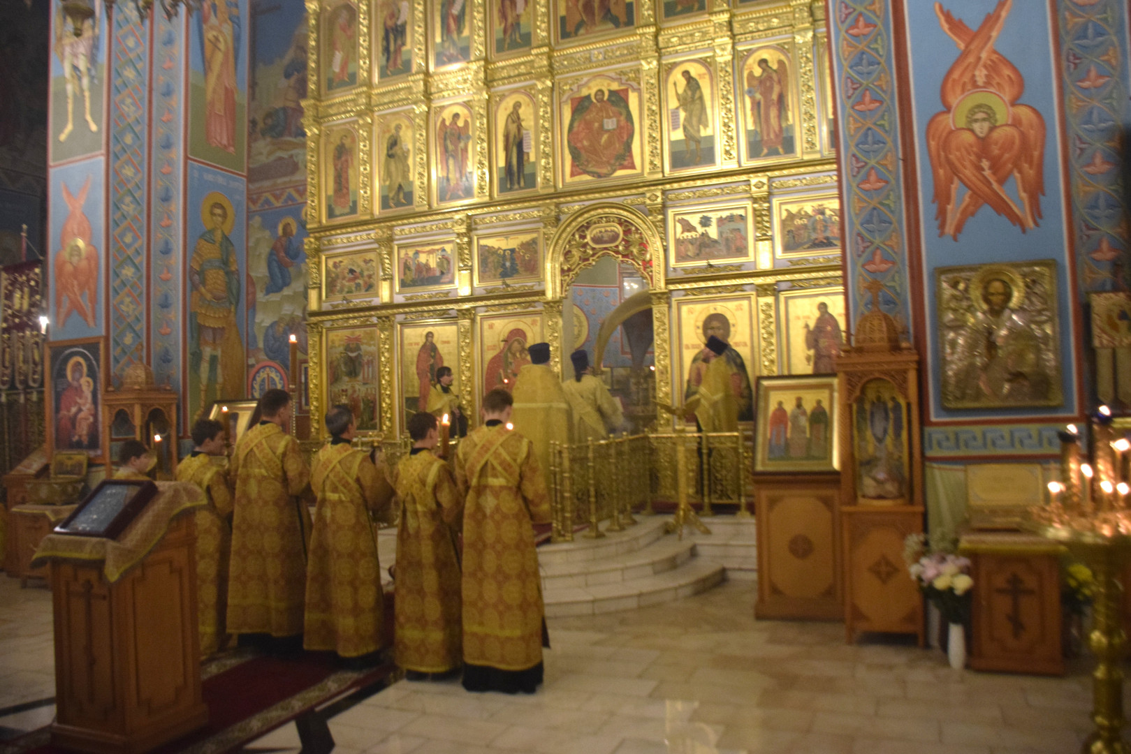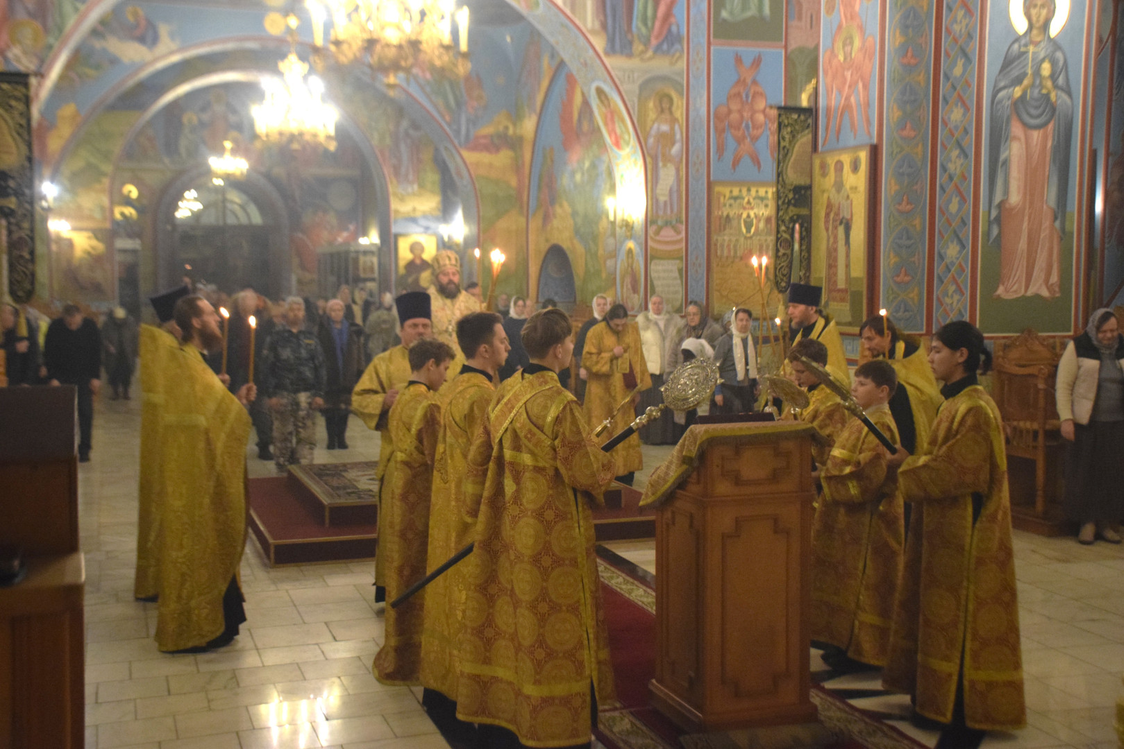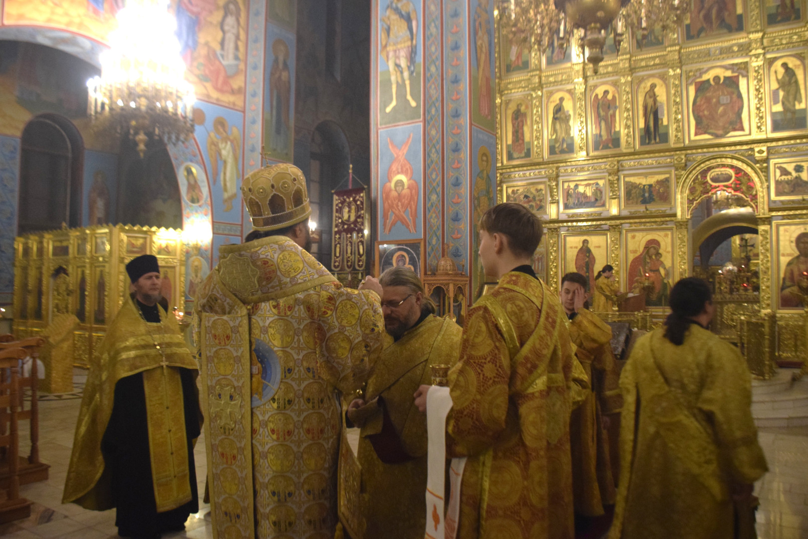 20 декабря 2025 года, накануне Недели 28-й по Пятидесятнице, дня памяти преподобного Патапия, Преосвященный архиепископ Абаканский и Хакасский Ионафан в сослужении соборного дуxовенства совершил Всенощное бдение в Спасо-Преображенском кафедральном соборе столицы Хакасии.