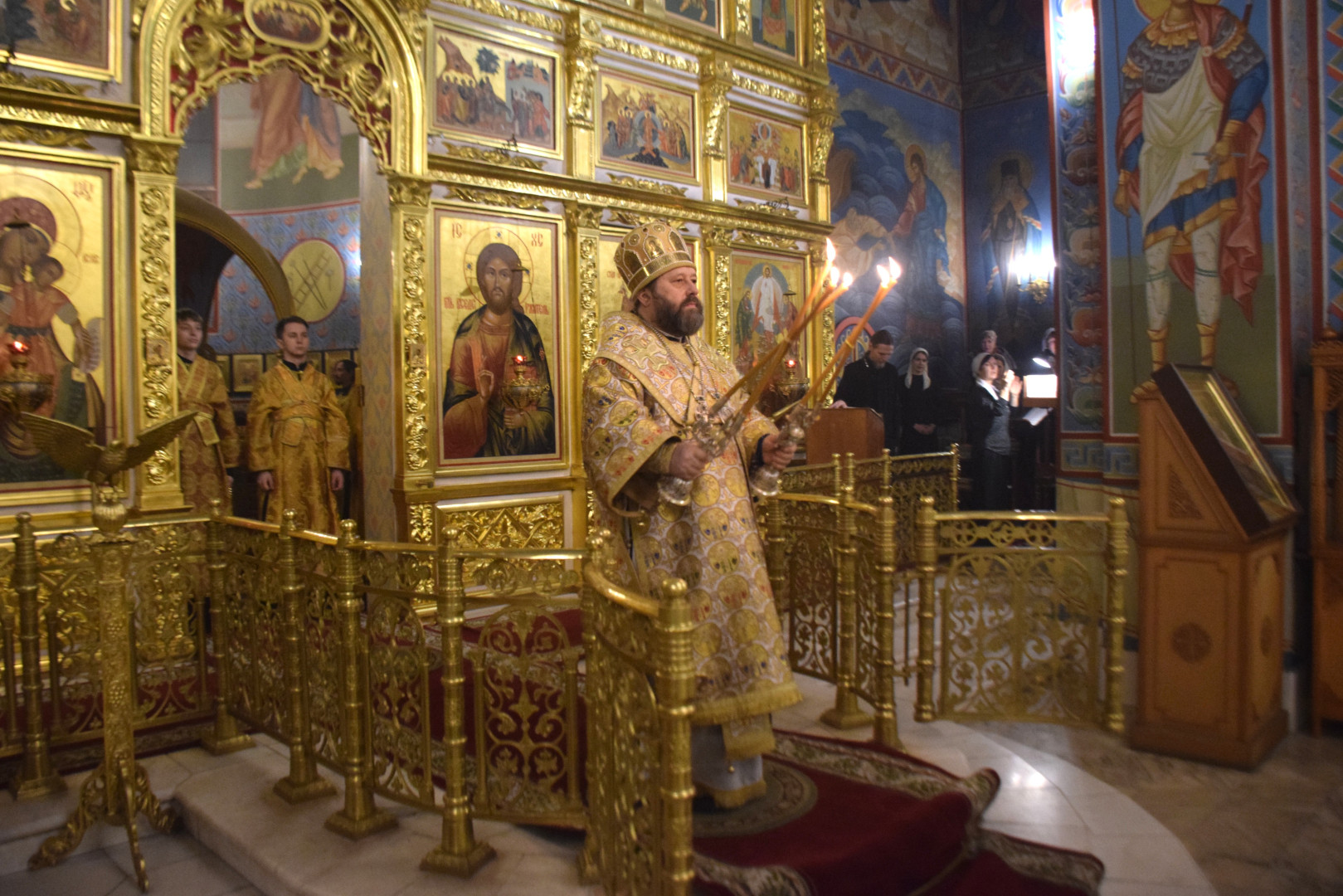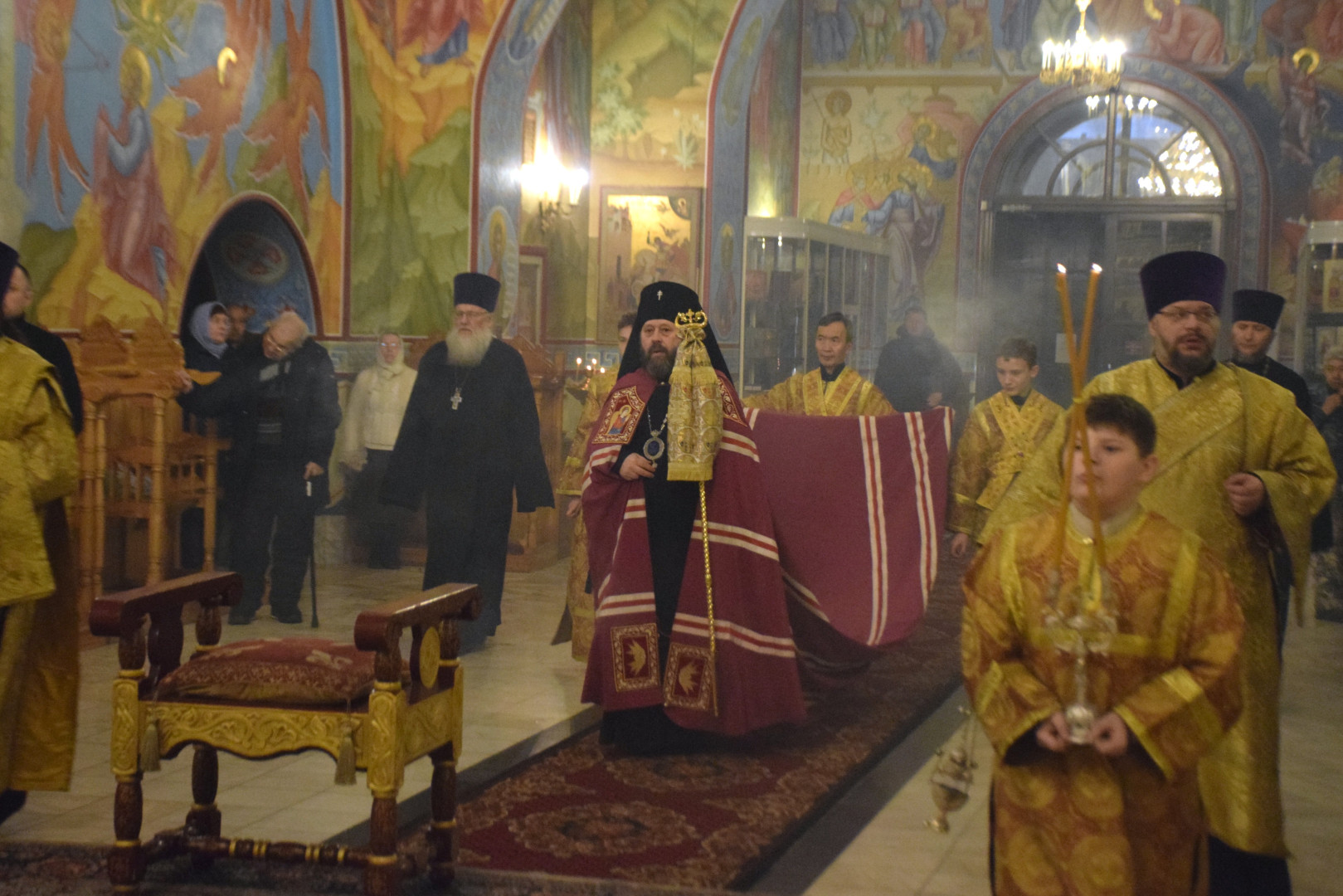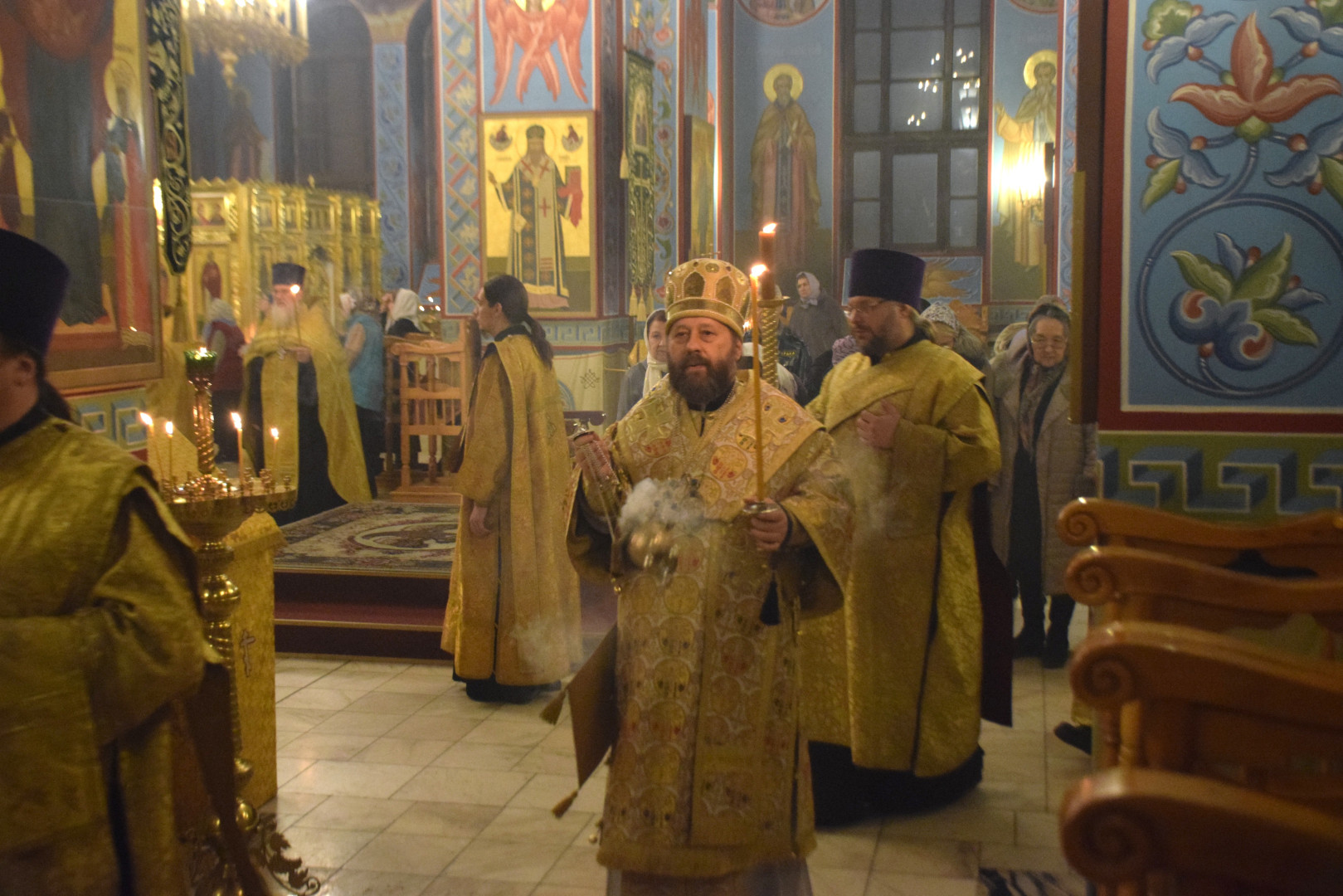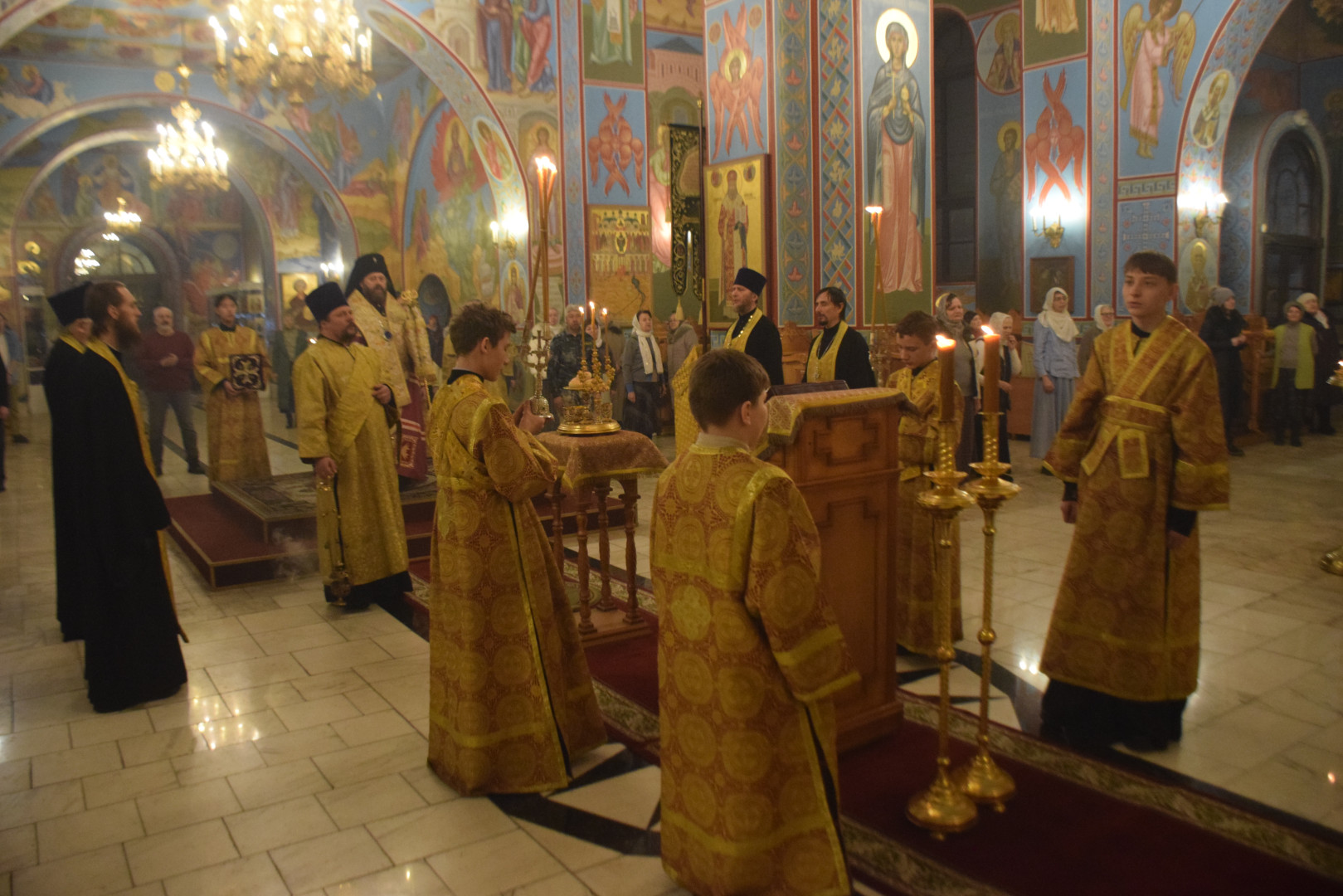 20 декабря 2025 года, накануне Недели 28-й по Пятидесятнице, дня памяти преподобного Патапия, Преосвященный архиепископ Абаканский и Хакасский Ионафан в сослужении соборного дуxовенства совершил Всенощное бдение в Спасо-Преображенском кафедральном соборе столицы Хакасии.