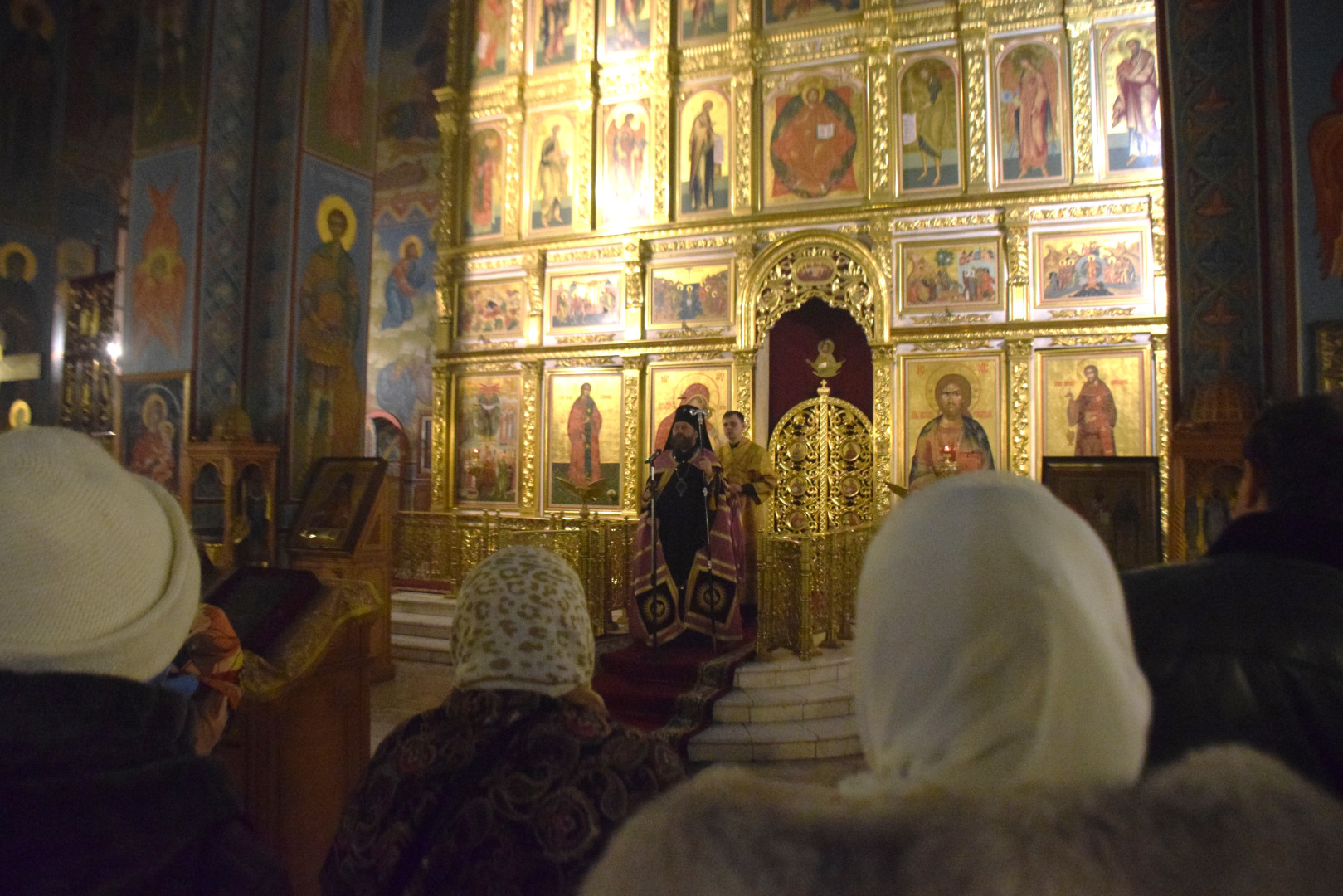 После первого часа Владыка поздравил собравшихся с наступившим праздникoм, а затем благословлял молящихся.