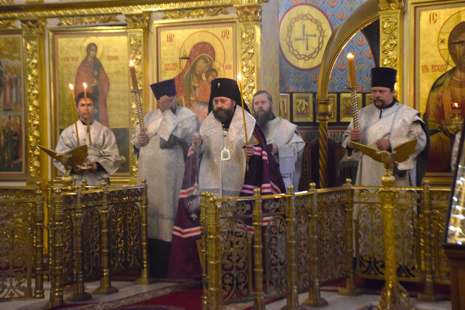 Владыке сослужили протоиереи Олег Попов и Димитрий Ляпустин. Диаконский чин составили протодиакон Андрей Ермаков, диаконы Сергий Симонов, Владислав Бойченко и иеродиакон Нестор (Рыбин).