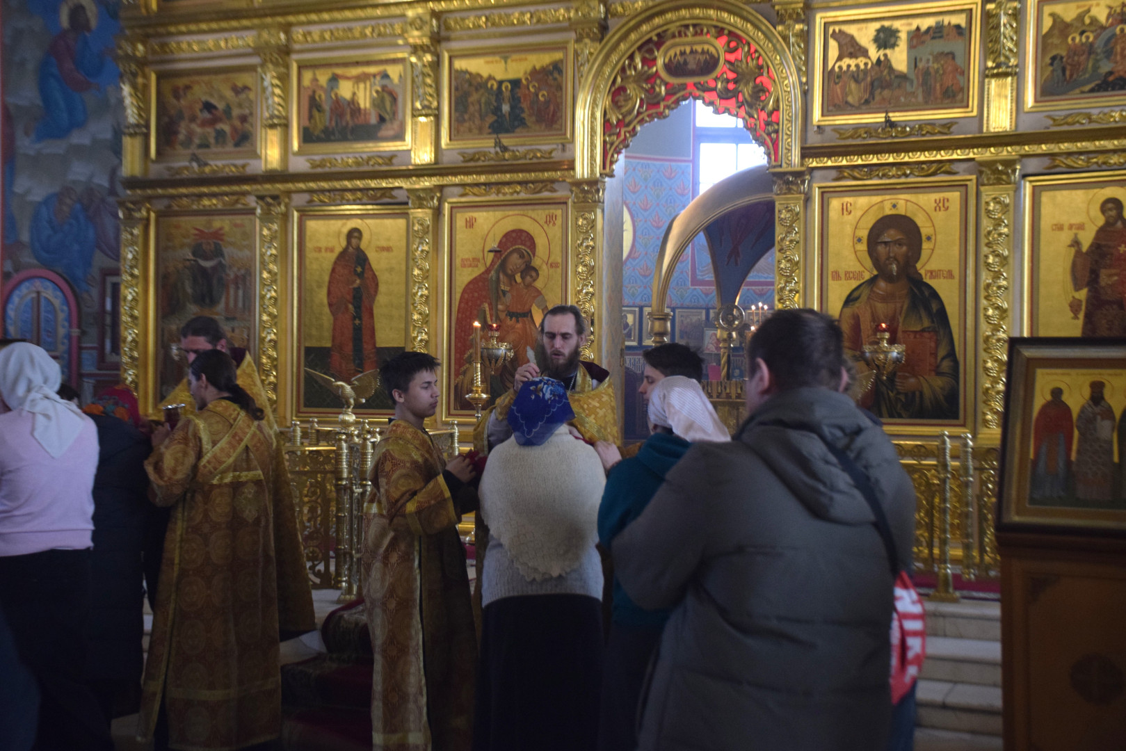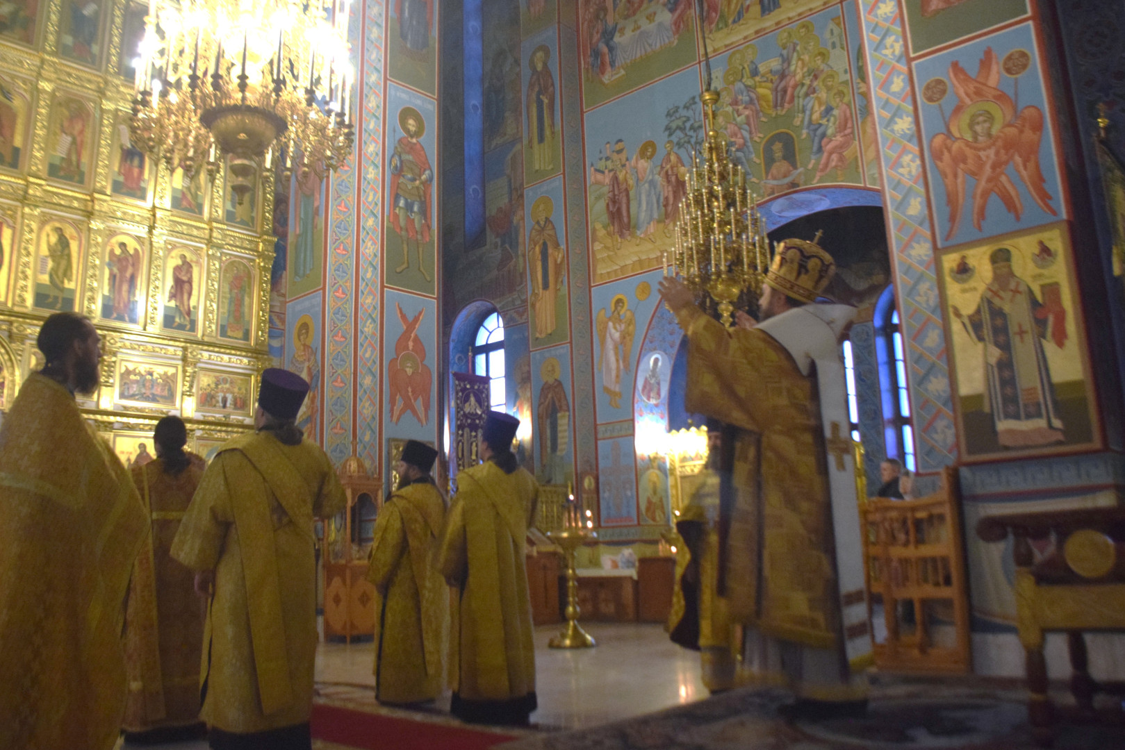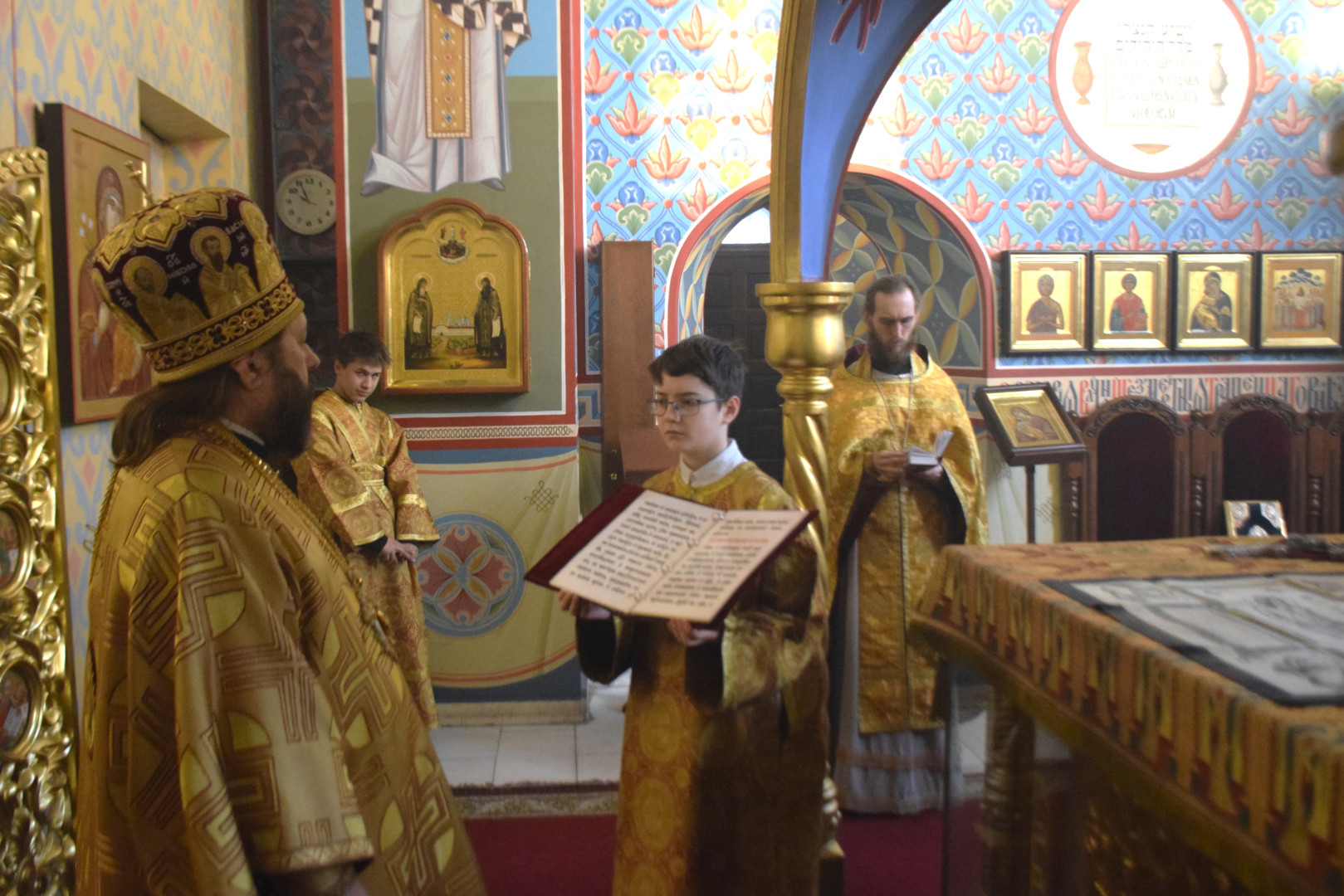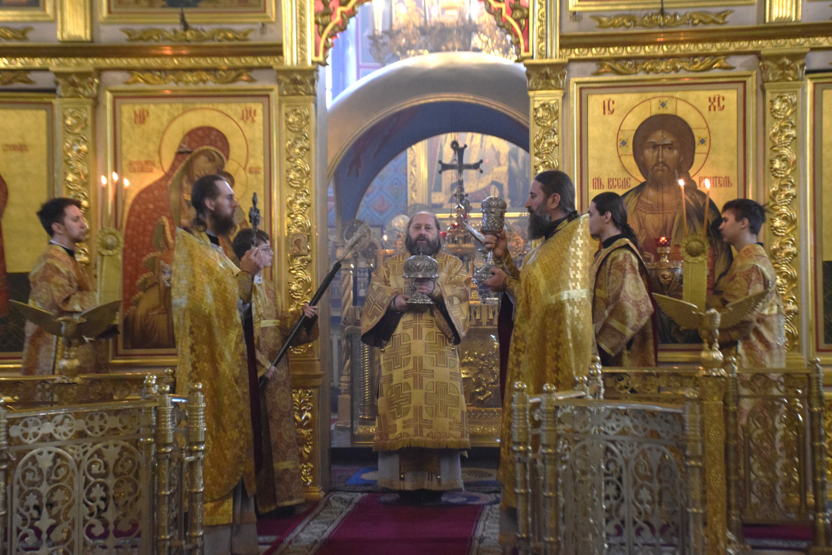Владыке сослужили священники Андрей Габченко и Николай Пугин. Диаконское служение совершали протодиакон Андрей Ермаков, диаконы Сергий Симонов, Владислав Бойченко, Михаил Луцик и иеродиакон Нестор (Рыбин). Богослужебные песнопения исполнил архиерейский хор под управлением Марии Ермаковой.