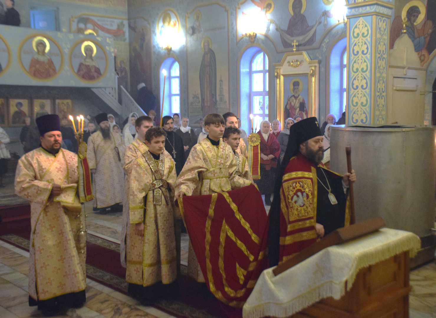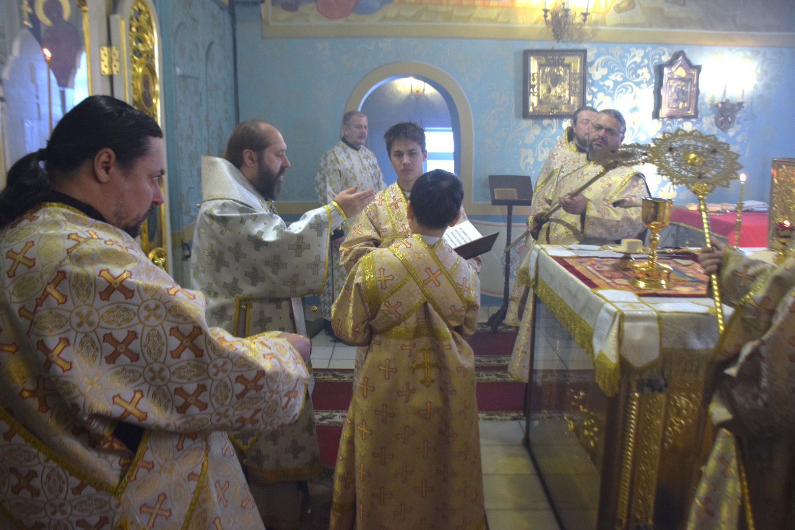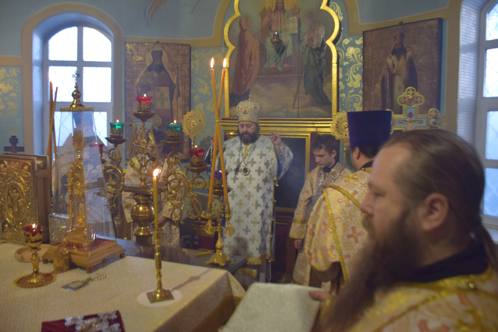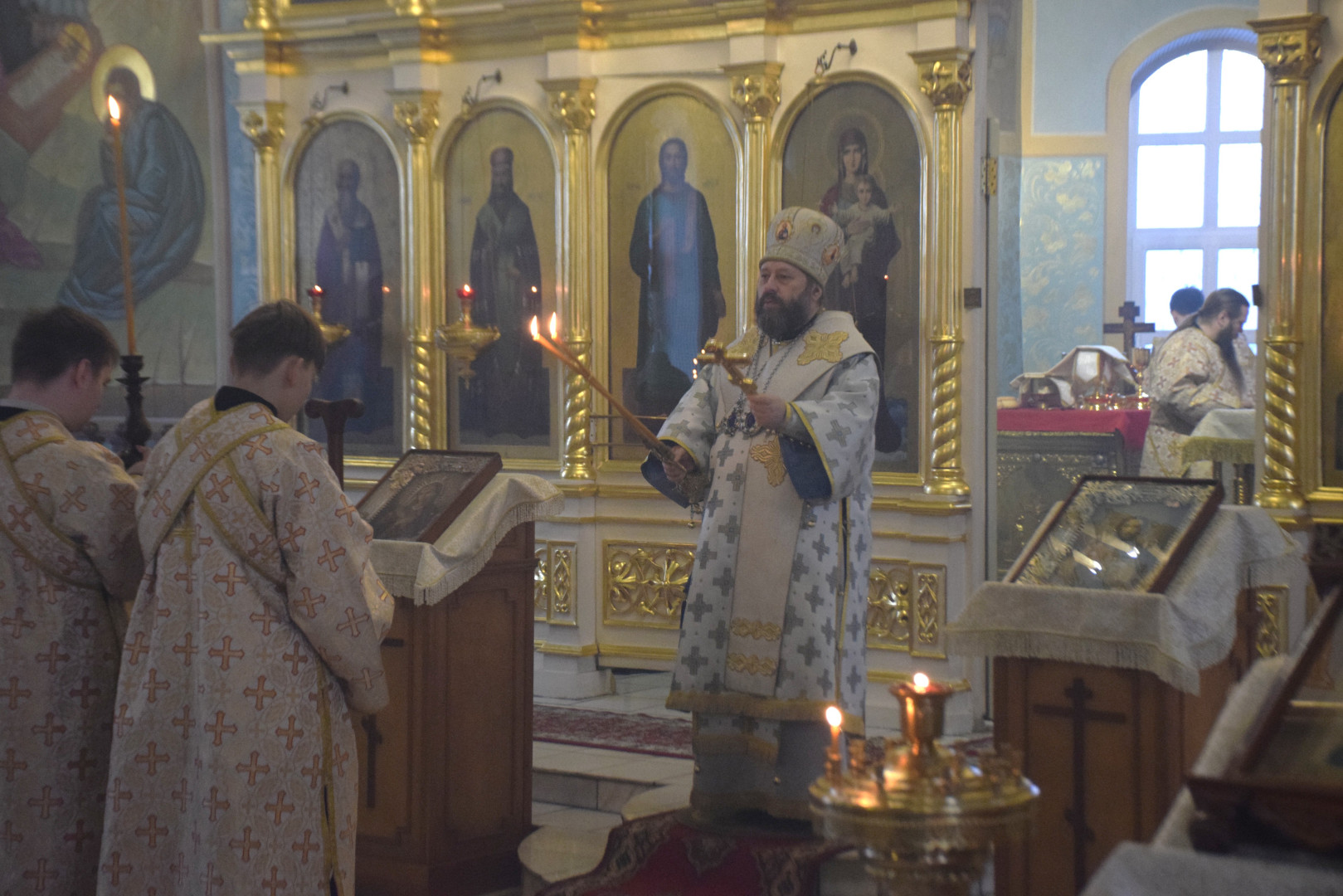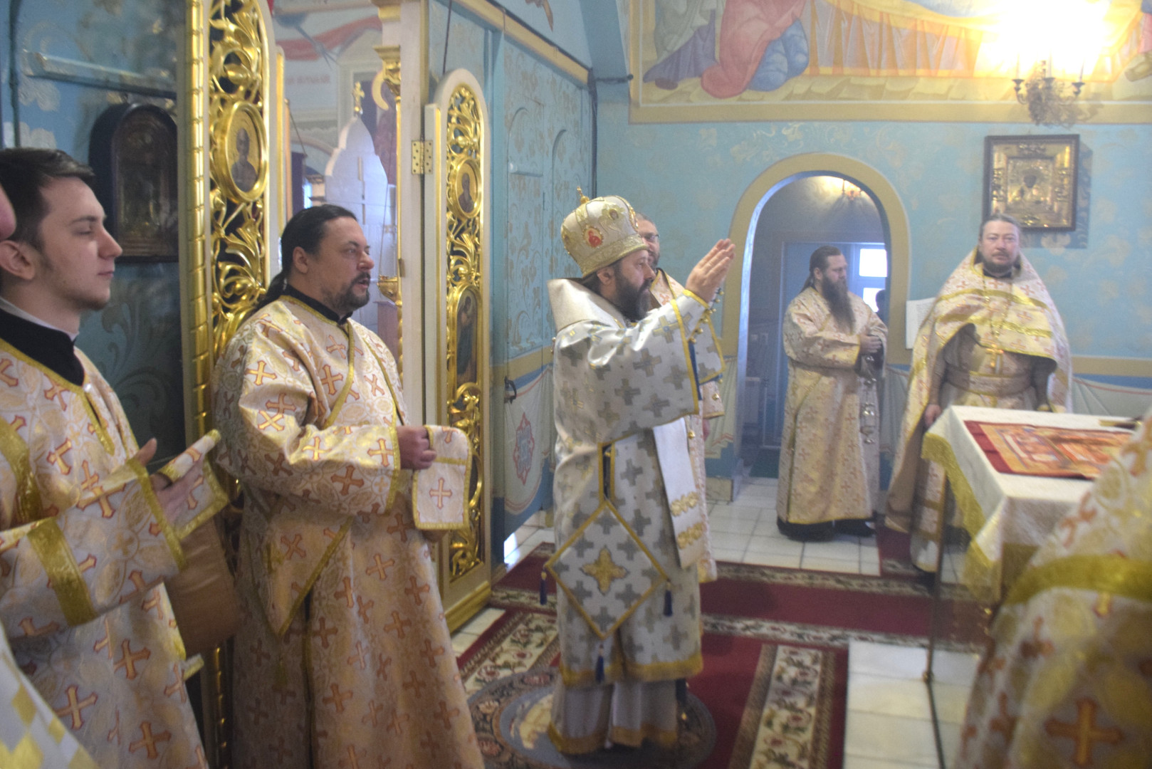 Владыке сослужили протоиерей Олег Попов, священники Андрей Спирин и Евгений Девятов. Диаконский чин составили протодиакон Андрей Ермаков, диаконы Сергий Симонов, Михаил Луцик и иеродиакон Нестор (Рыбин). За богослужением пел архиерейский хор под управлением регента Марии Ермаковой.