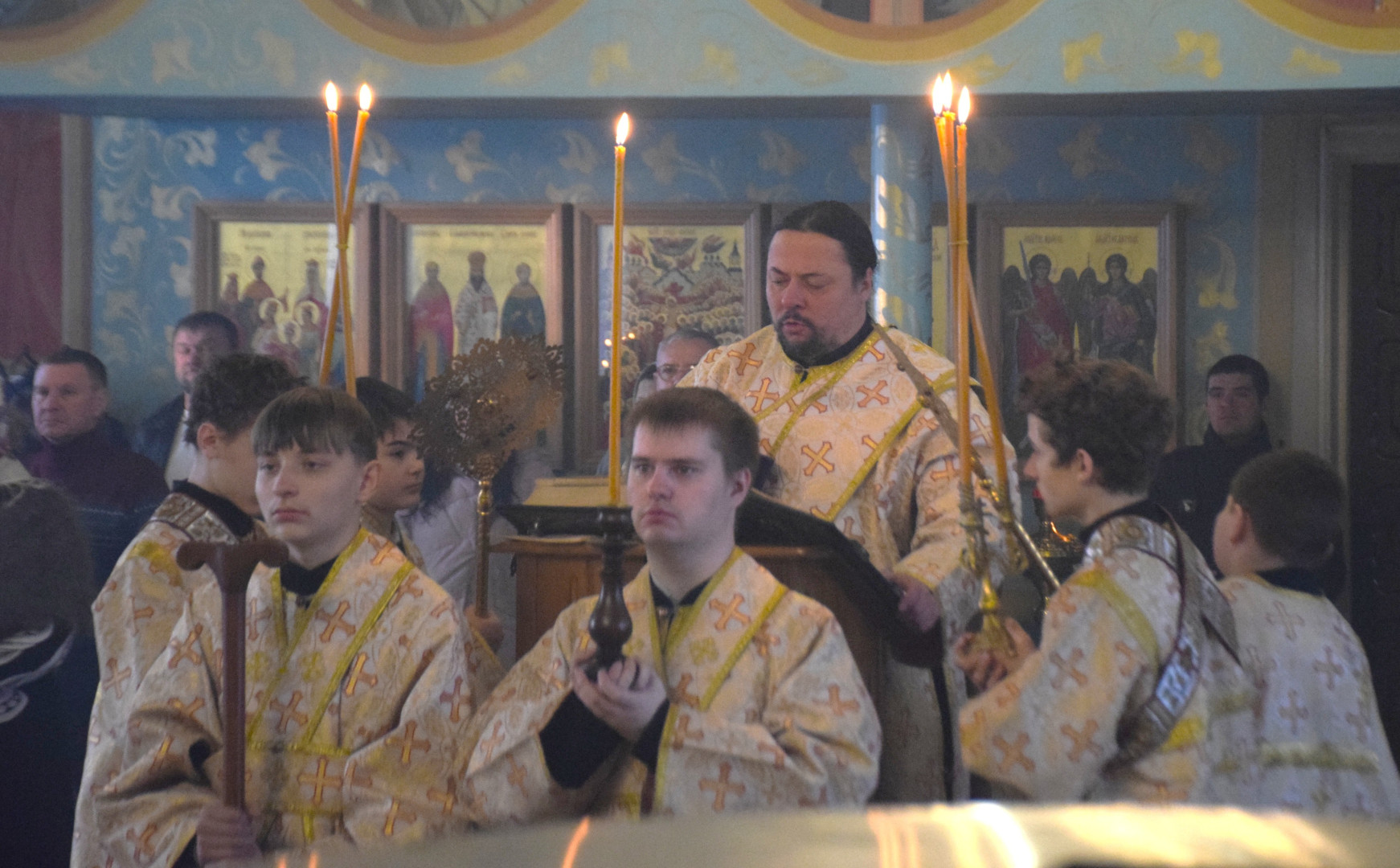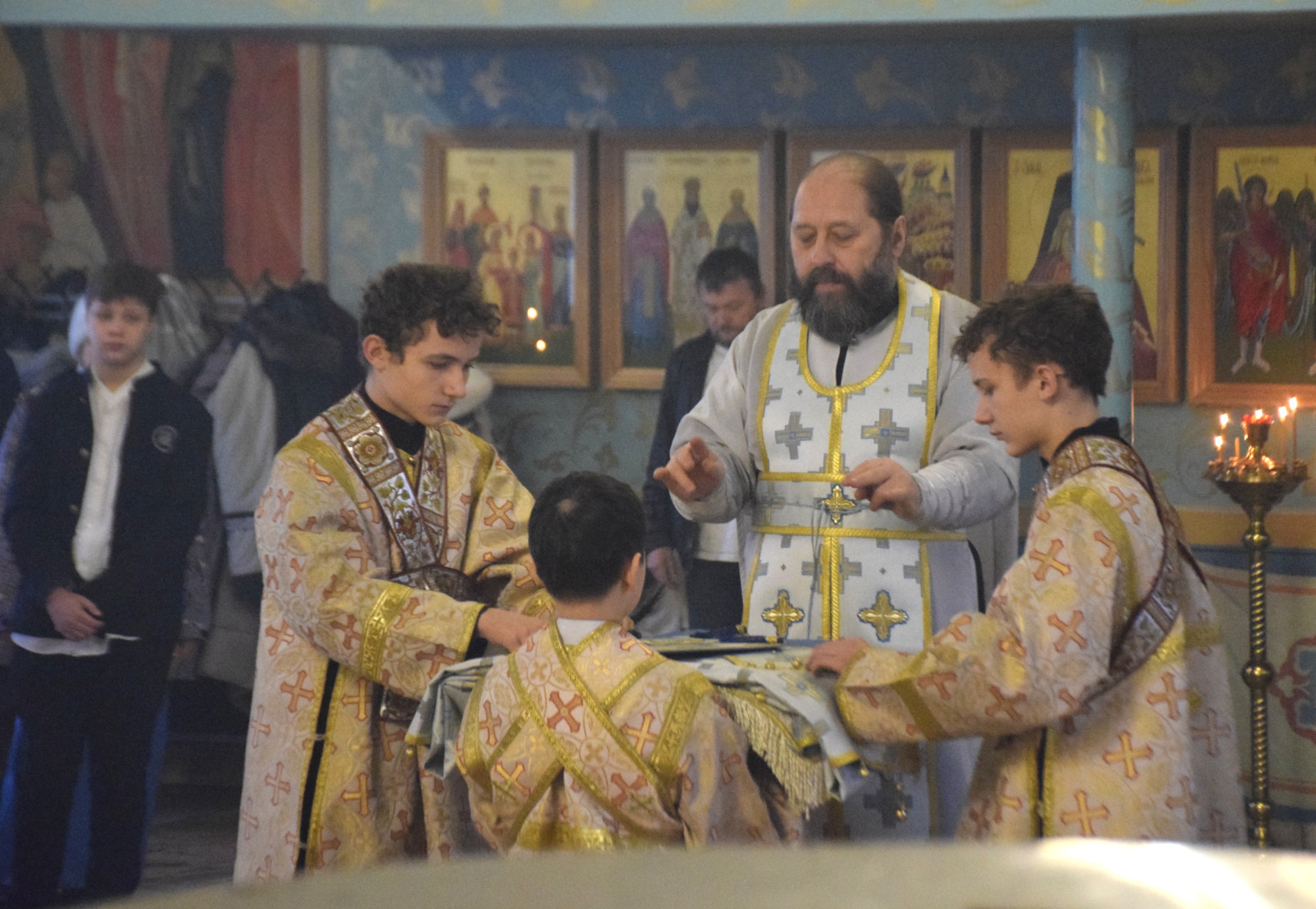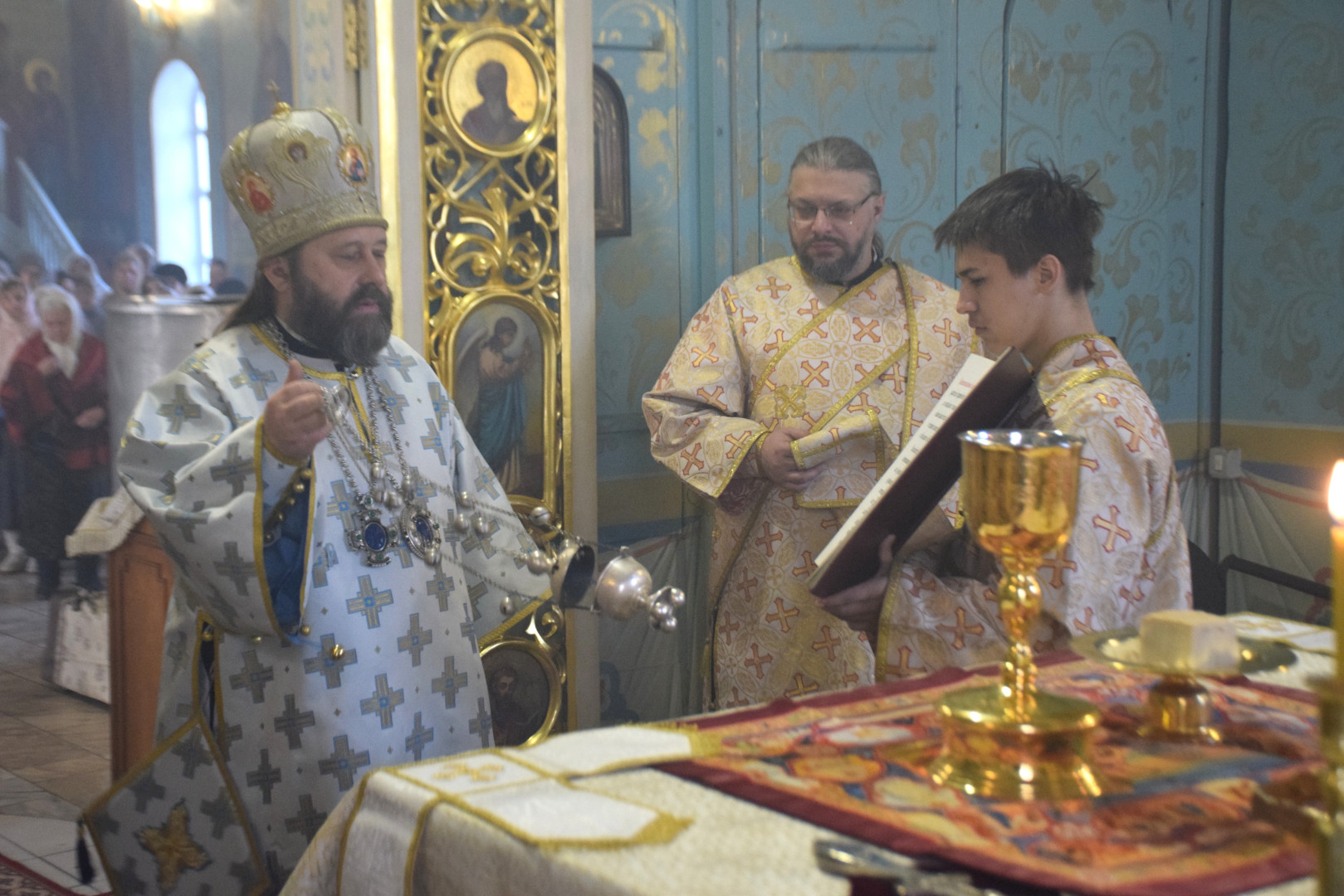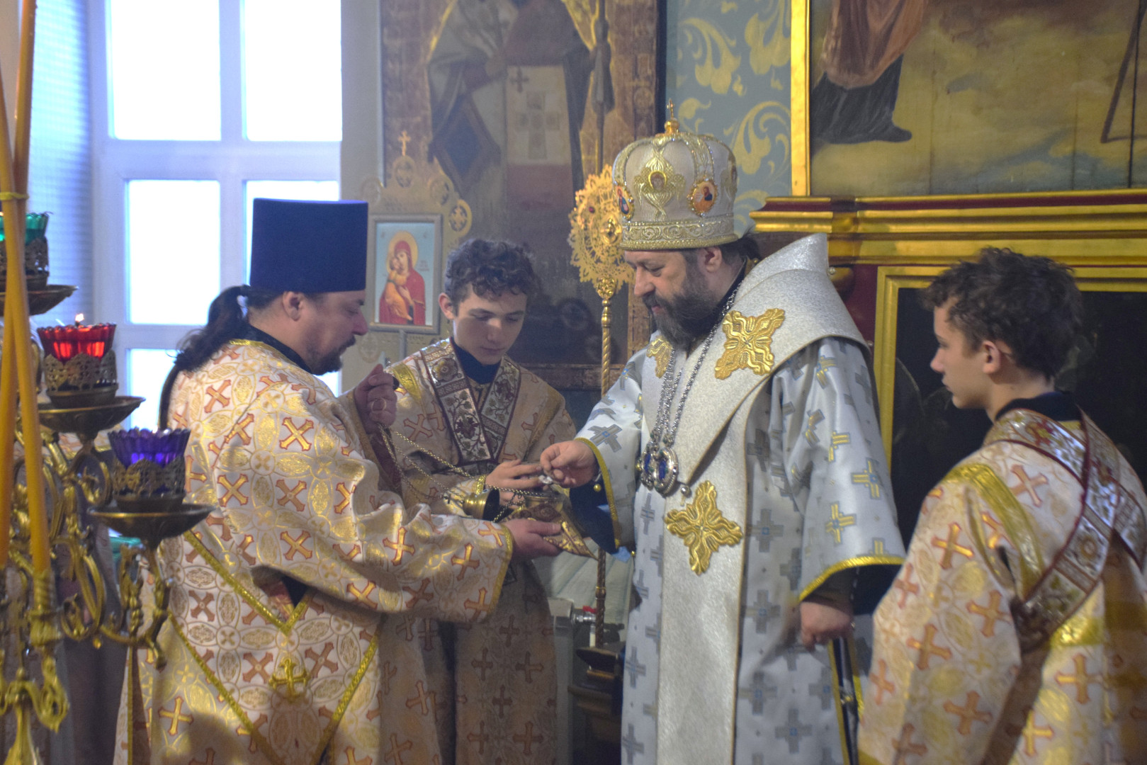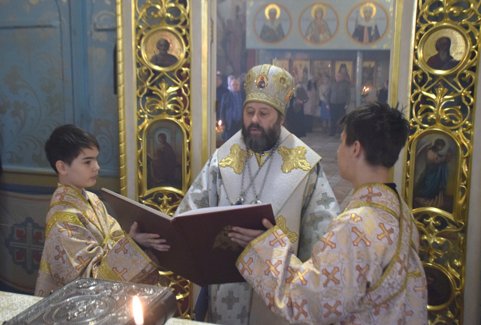 Владыке сослужили протоиерей Олег Попов, священники Андрей Спирин и Евгений Девятов. Диаконский чин составили протодиакон Андрей Ермаков, диаконы Сергий Симонов, Михаил Луцик и иеродиакон Нестор (Рыбин). За богослужением пел архиерейский хор под управлением регента Марии Ермаковой.
