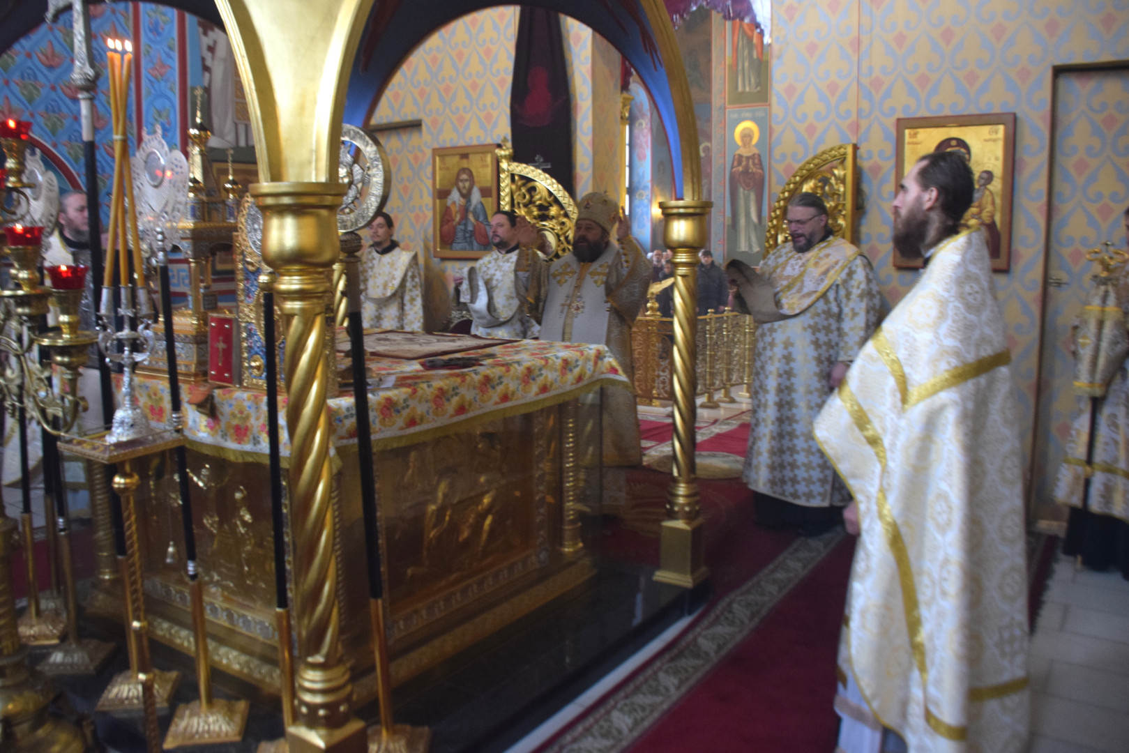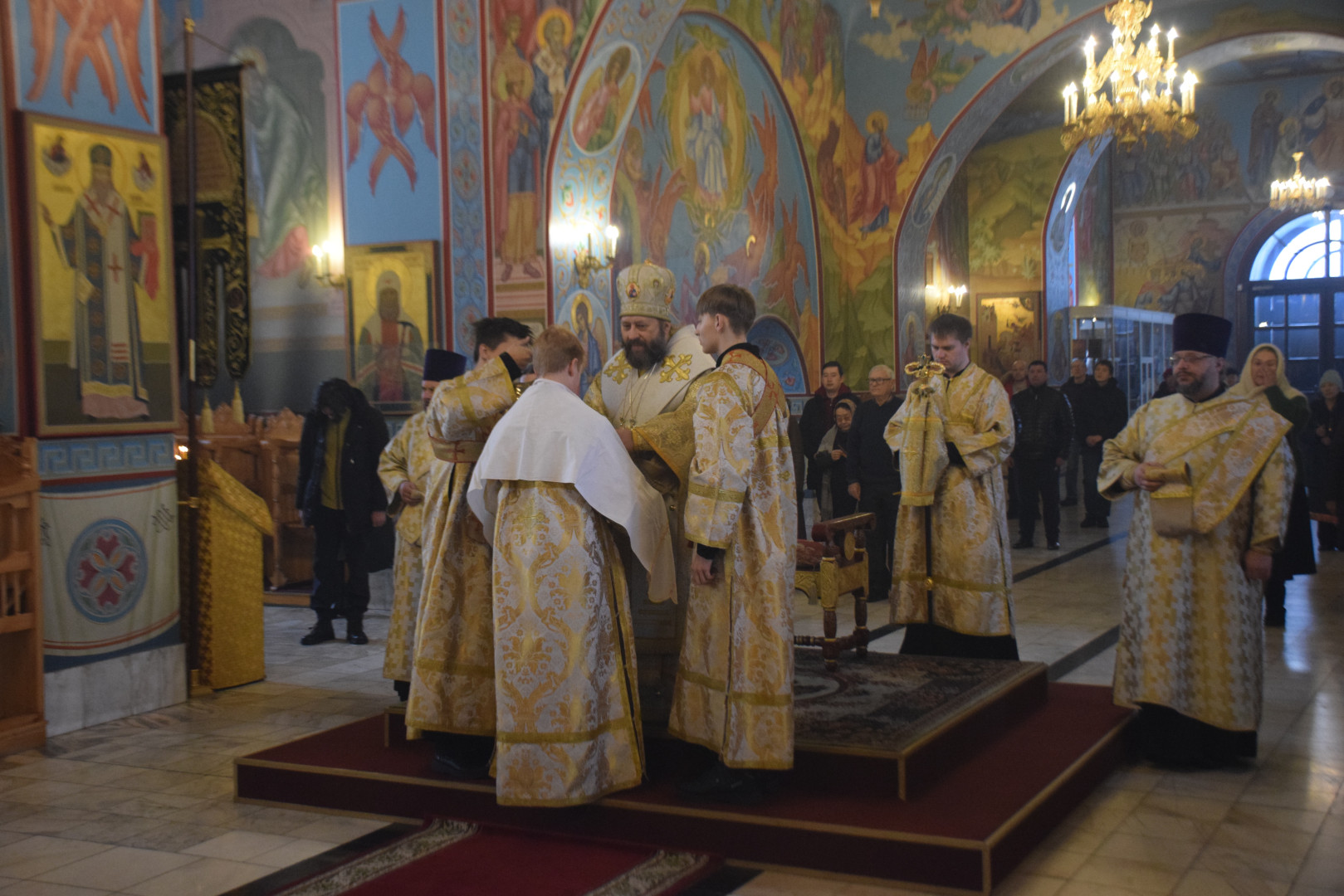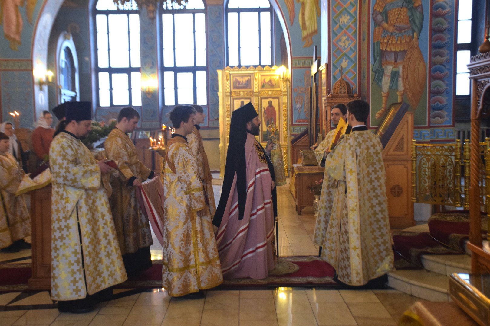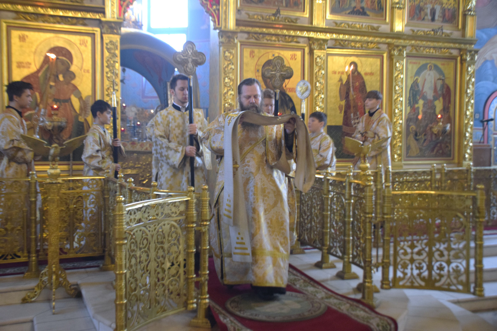 Владыке сослужили протоиерей Димитрий Ляпустин и священник Николай Пугин. Диаконский чин составили протодиакон Андрей Ермаков, диаконы Сергий Симонов, Владислав Бойченко, Михаил Луцик и иеродиакон Нестор (Рыбин). Песнопения Литургии исполнил архиерейский хор под управлением Марии Ермаковой.