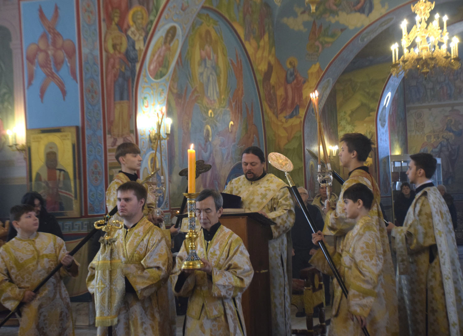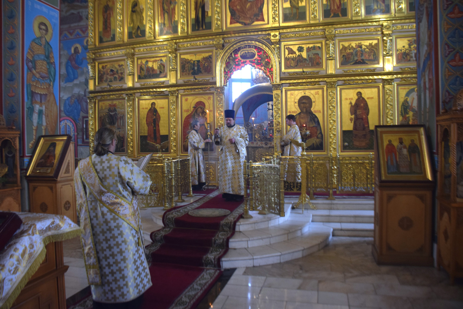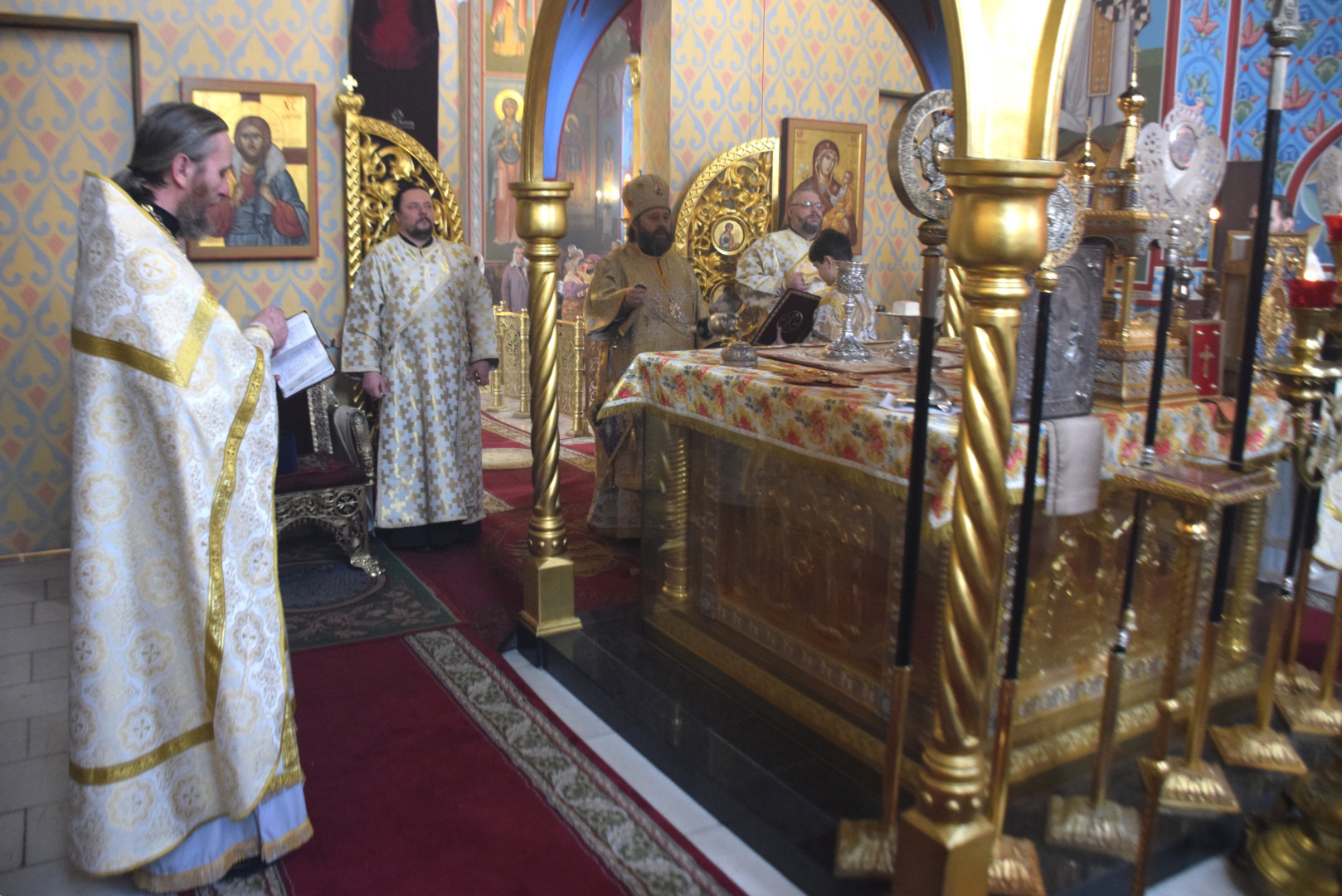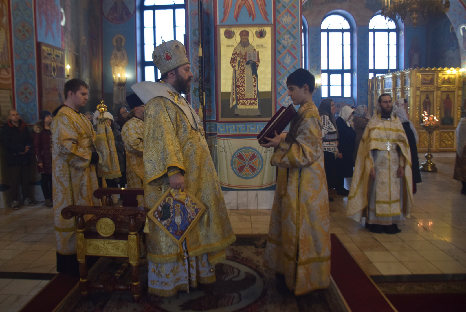 Владыке сослужили протоиерей Димитрий Ляпустин и священник Николай Пугин. Диаконский чин составили протодиакон Андрей Ермаков, диаконы Сергий Симонов, Владислав Бойченко, Михаил Луцик и иеродиакон Нестор (Рыбин). Песнопения Литургии исполнил архиерейский хор под управлением Марии Ермаковой.