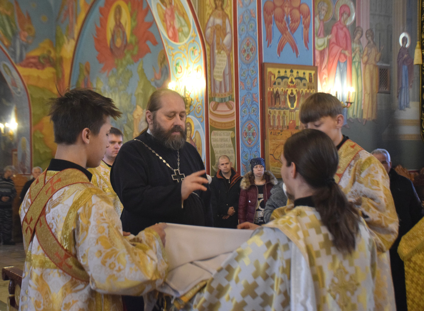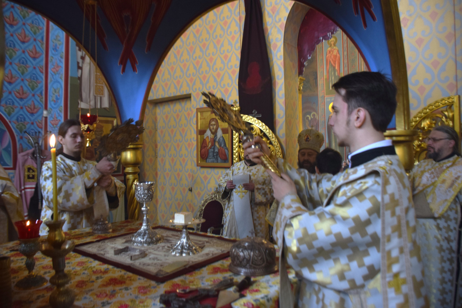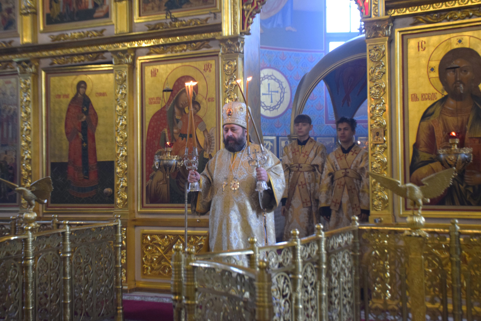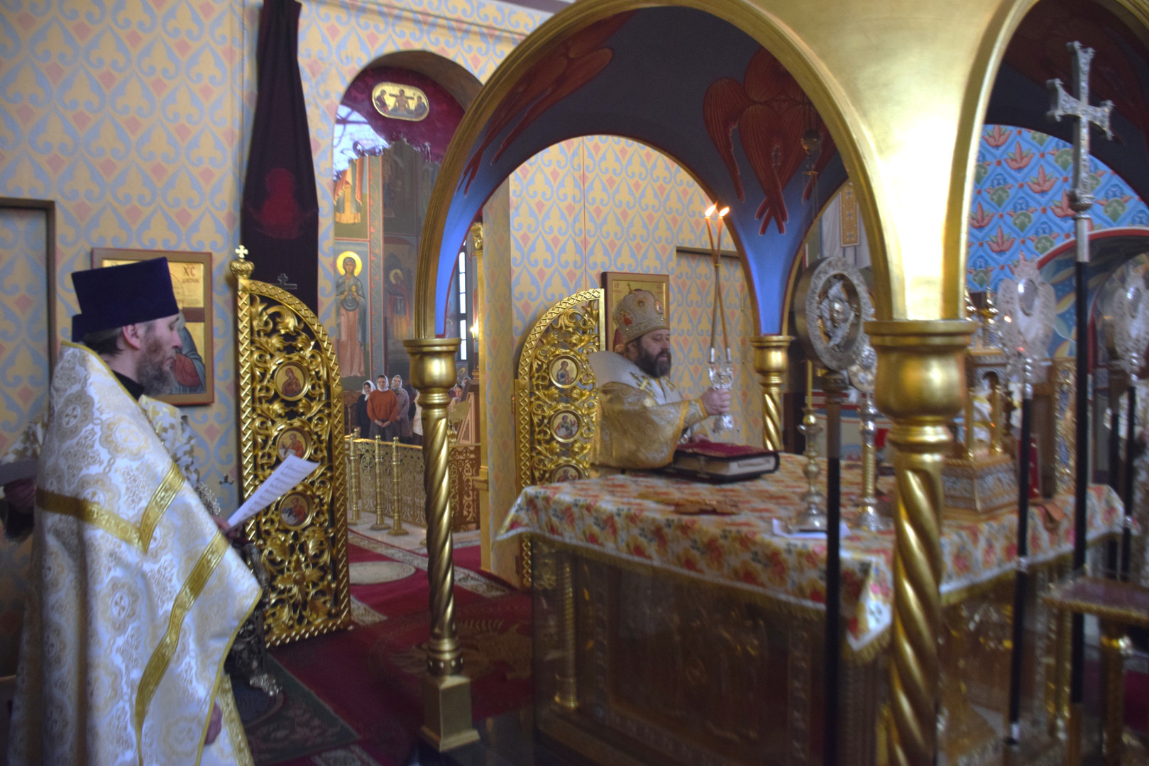 Владыке сослужили протоиерей Димитрий Ляпустин и священник Николай Пугин. Диаконский чин составили протодиакон Андрей Ермаков, диаконы Сергий Симонов, Владислав Бойченко, Михаил Луцик и иеродиакон Нестор (Рыбин). Песнопения Литургии исполнил архиерейский хор под управлением Марии Ермаковой.