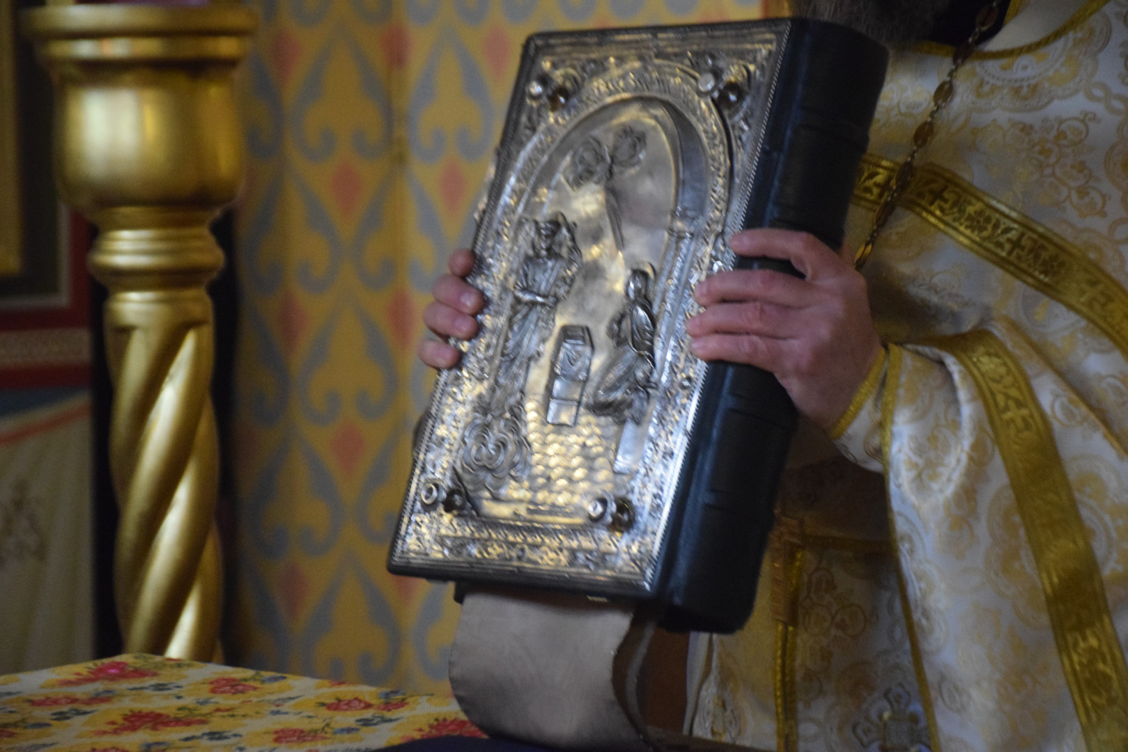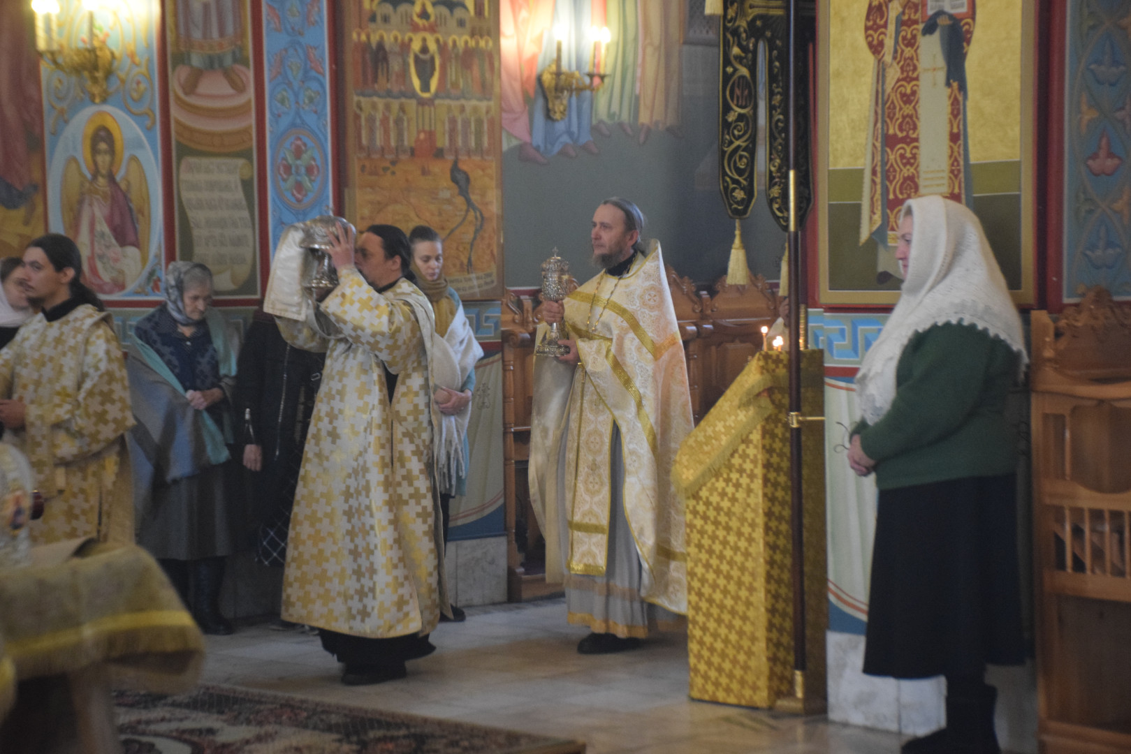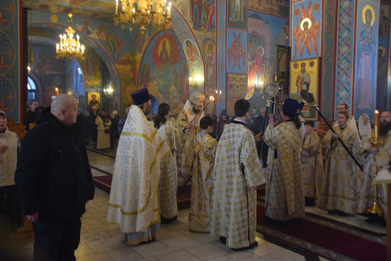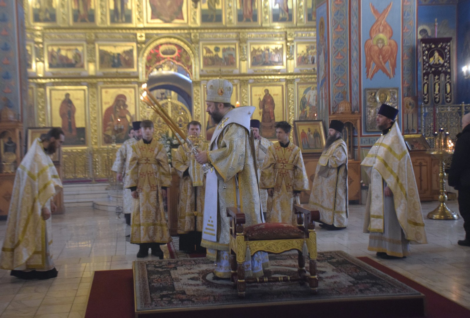 Завершая служение, Правящий архиерей обратился к собравшимся со словом по прочитанному за Литургией Евангелию (обращение Закхея), а также поздравил именинниц, после чего благословлял молящихся.