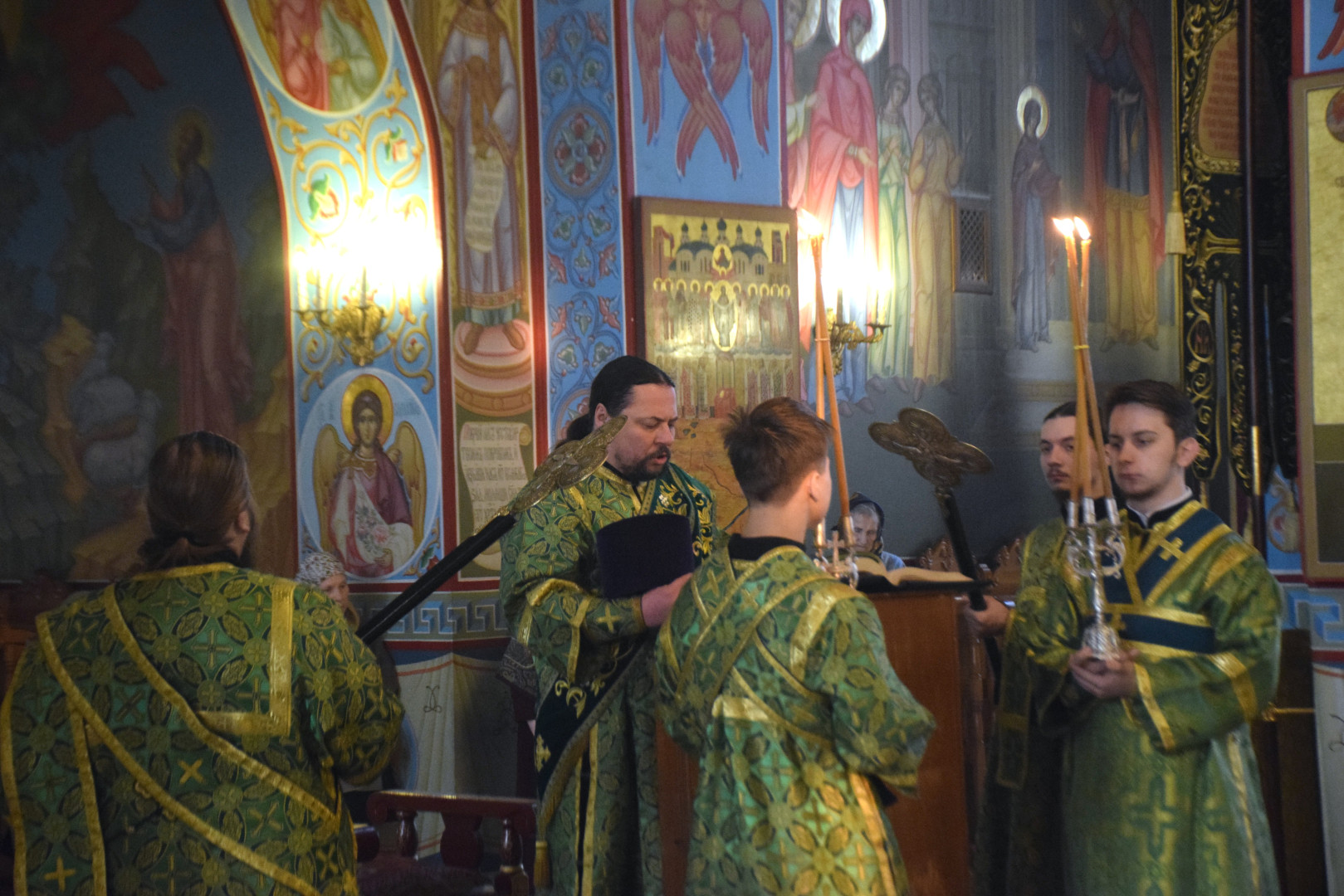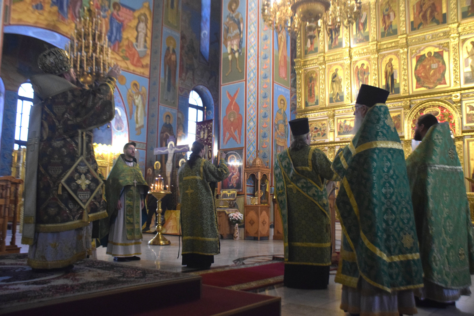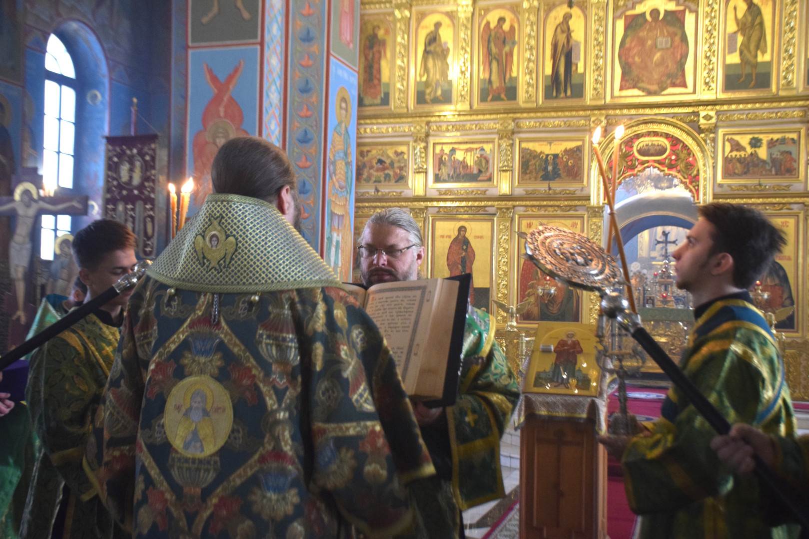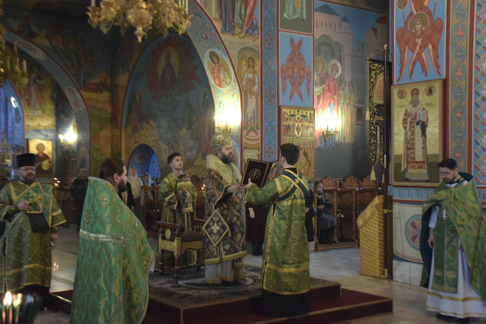 Архипастырю сослужили протоиереи Олег Попов, Димитрий Ляпустин, священники Евгений Мотькин и Димитрий Чабан (Томская епархия). Диаконский чин составили протодиакон Андрей Ермаков, диаконы Сергий Симонов, Владислав Бойченко, Михаил Луцик и иеродиакон Нестор (Рыбин).