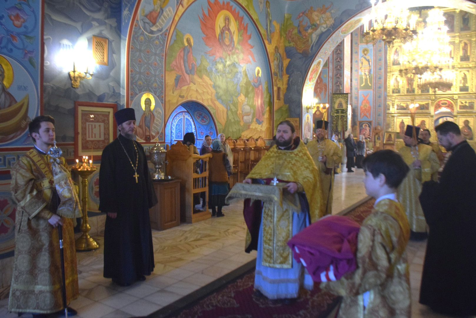 12 февраля 2026 года, в день празднования Собора вселенских учителей и святителей Василия Великого, Григория Богослова и Иоанна Златоустого, Преосвященный архиепископ Абаканский и Хакасский Ионафан возглавил совершение Божественной Литургии в Спасо-Преображенском кафедральном соборе столицы Хакасии.