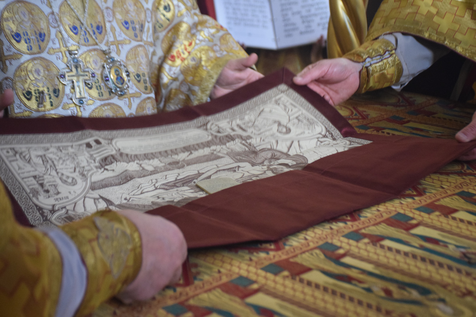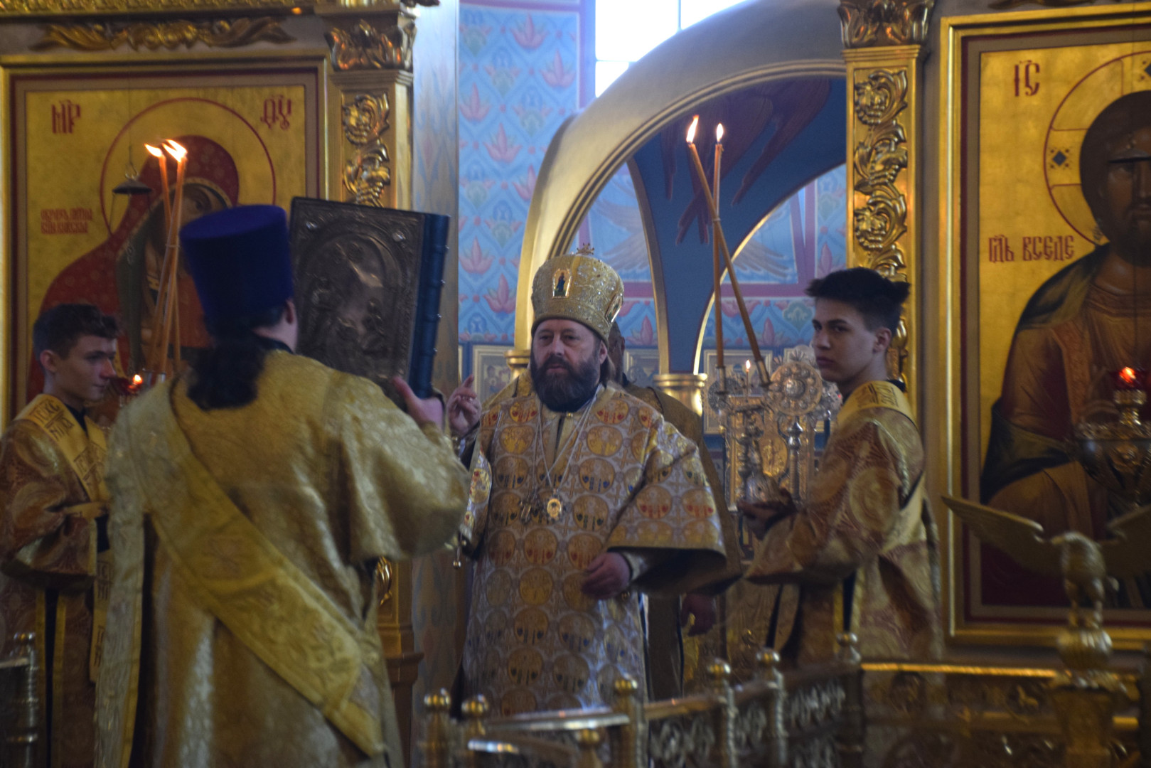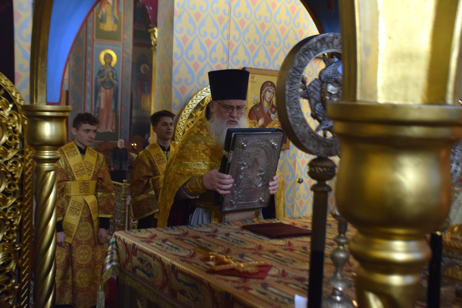 По отпусте Литургии архипастырь проповедовал на тему празднования и благословлял молящихся.