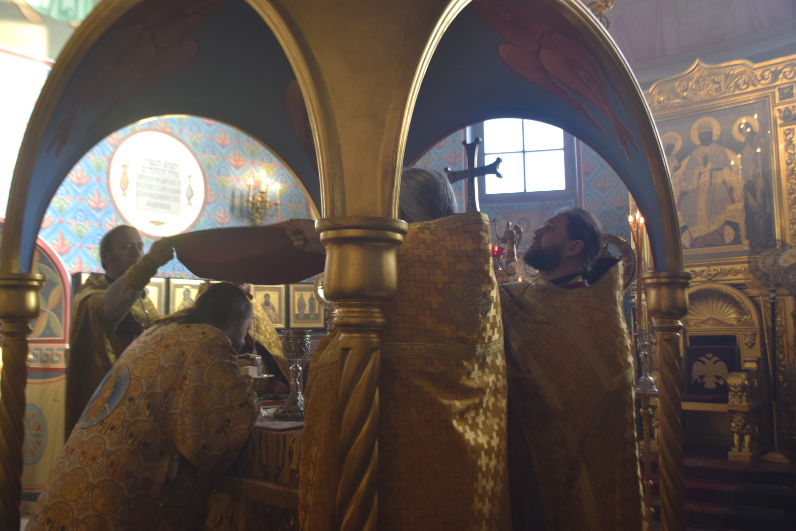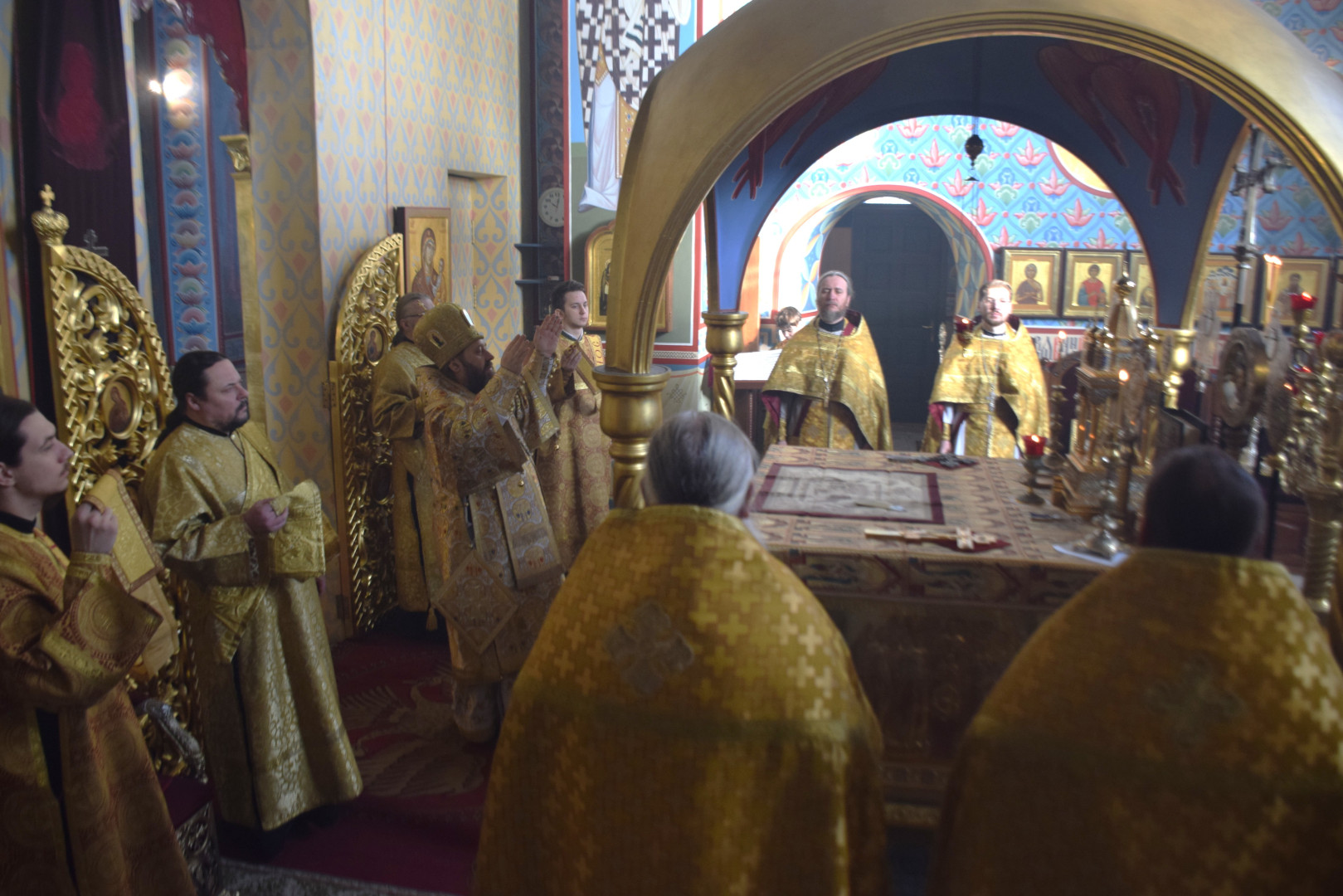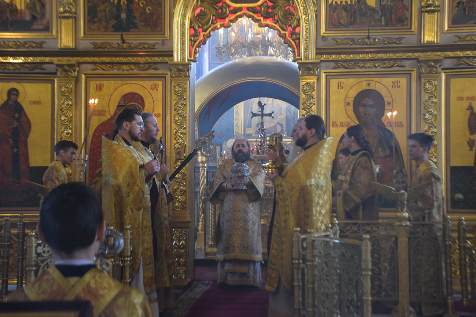 Владыке сослужили протоиерей Олег Попов, священники Георгий Жаткин, Евгений Мотькин и Димитрий Чабан (Томская епархия). Диаконский чин составили протодиакон Андрей Ермаков, диаконы Сергий Симонов, Владислав Бойченко, Михаил Луцик и иеродиакон Нестор (Рыбин). За богослужением пел архиерейский хор под управлением Марии Ермаковой.