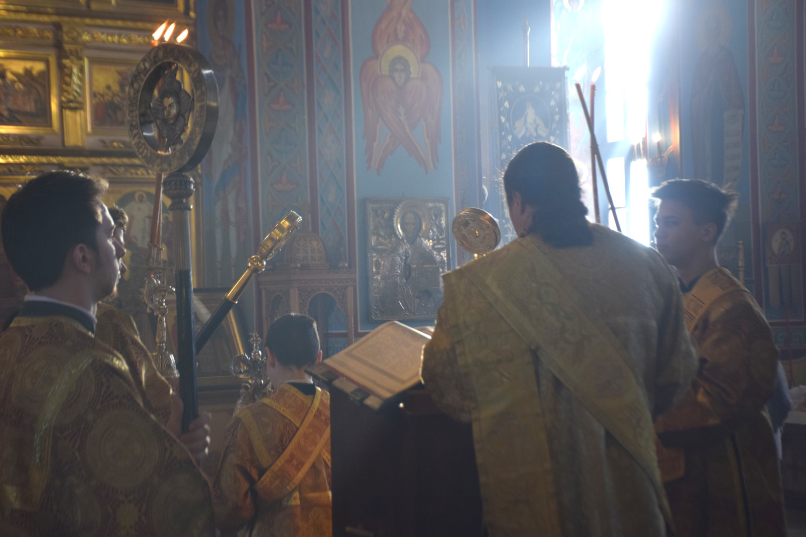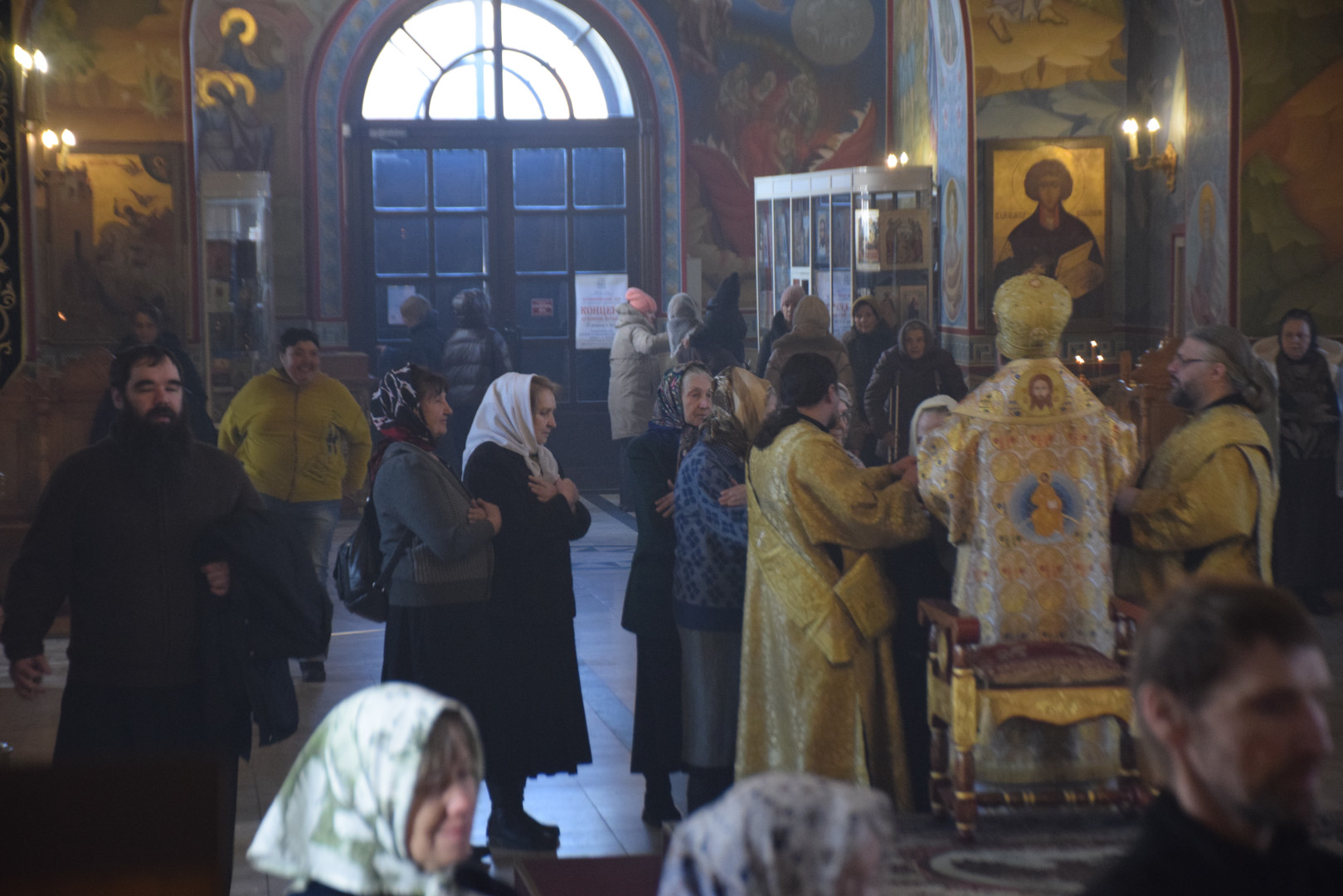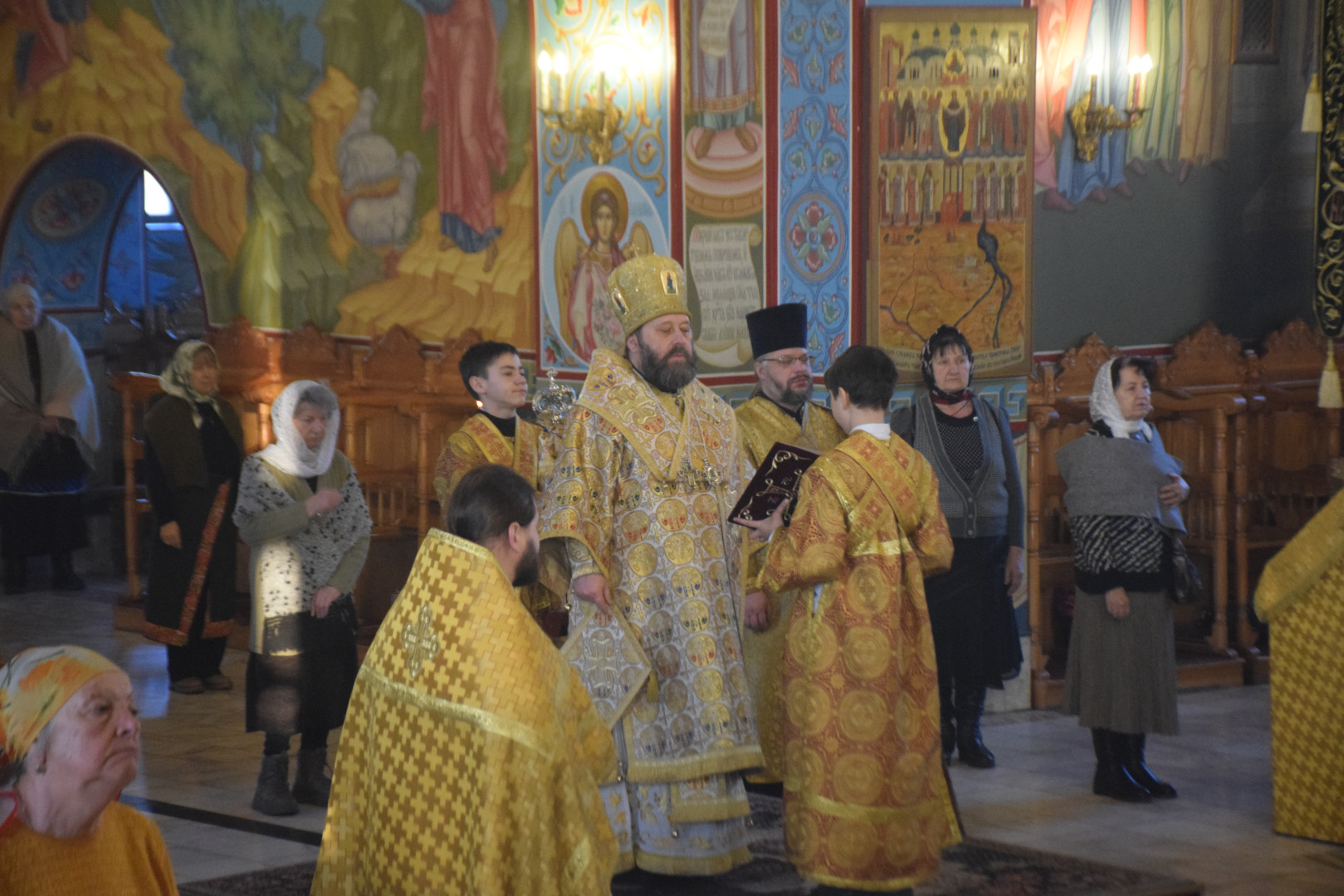 Владыке сослужили протоиерей Олег Попов, священники Георгий Жаткин, Евгений Мотькин и Димитрий Чабан (Томская епархия). Диаконский чин составили протодиакон Андрей Ермаков, диаконы Сергий Симонов, Владислав Бойченко, Михаил Луцик и иеродиакон Нестор (Рыбин). За богослужением пел архиерейский хор под управлением Марии Ермаковой.