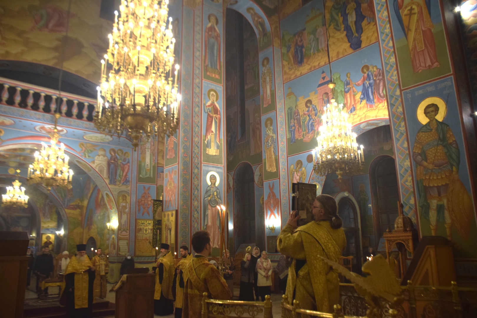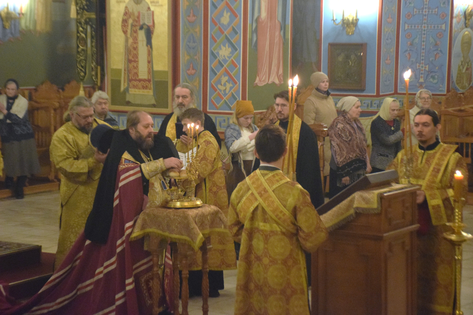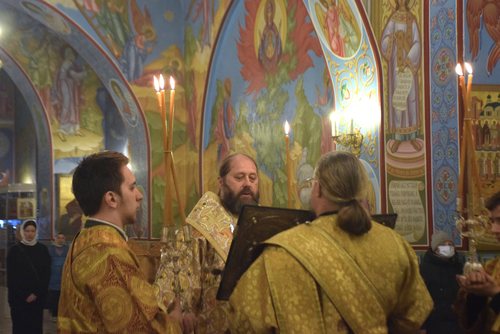 На полиелее было пропето величание святителям: «Величаем вас, святителие Христовы, и чтим святую память вашу, вы бо молите за нас Христа Бога нашего».