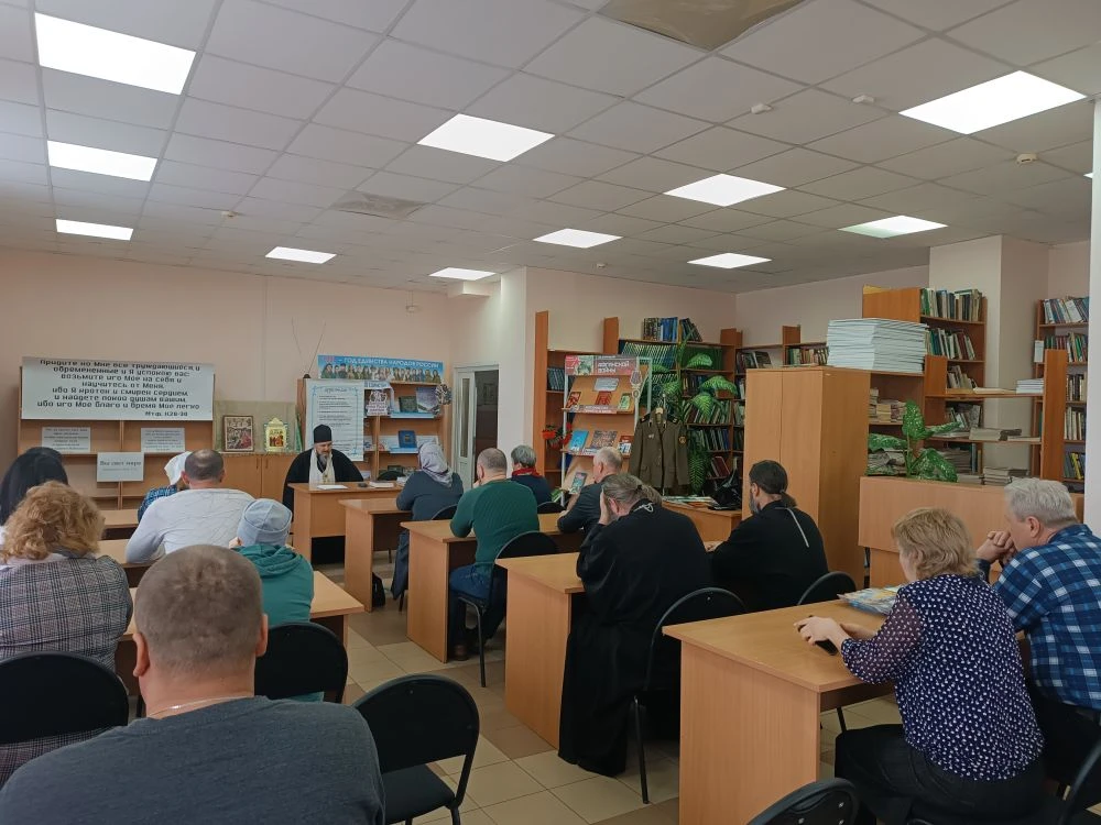 Перед собравшимися в районной библиотеке поселка Шира выступил игумен Лазарь (Казанцев) с рассказом о празднике и о подготовительных неделях к Великому посту. Затем он ответил на вопросы слушателей.