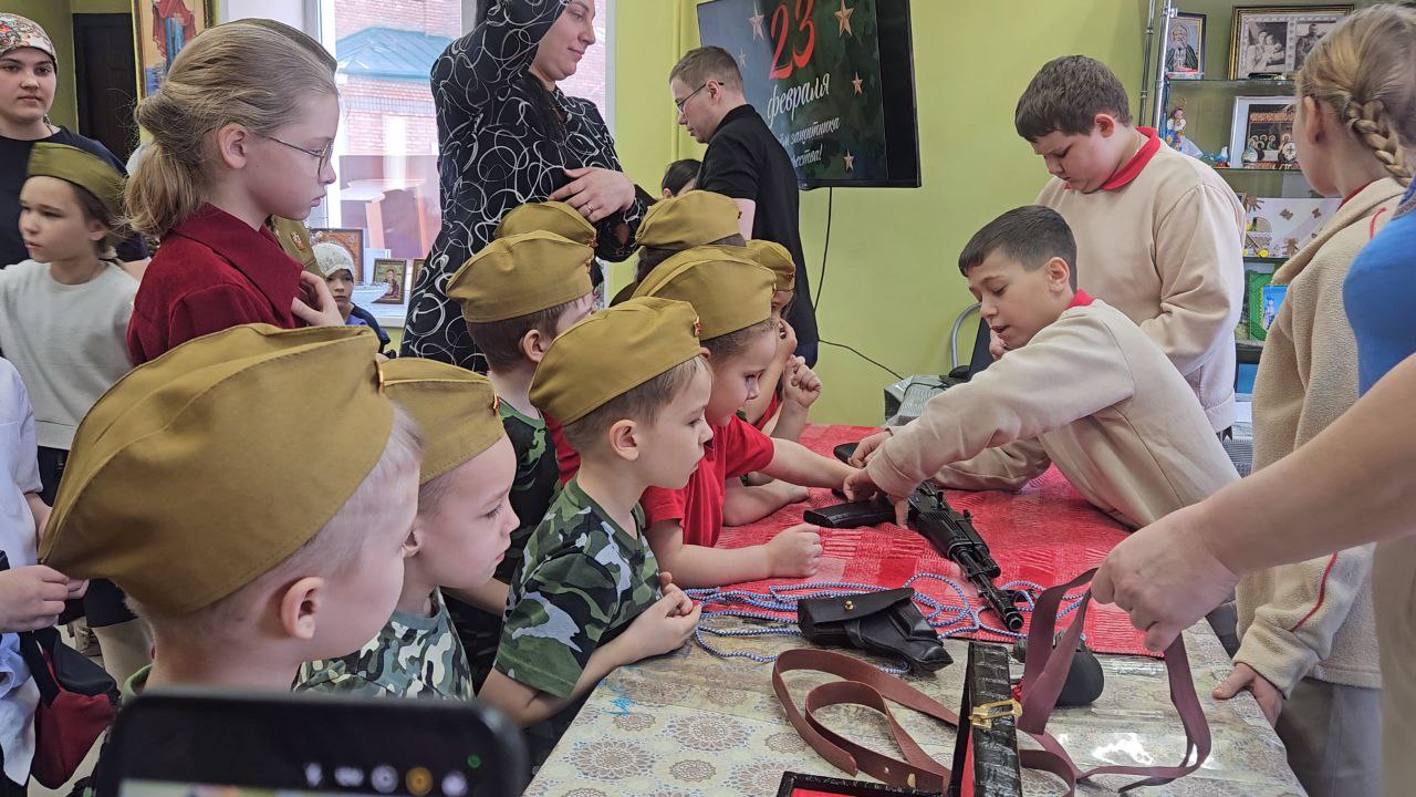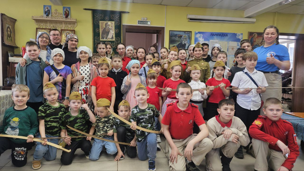 Особое внимание уделили духовной стороне подвига. Ведущие воскресной школы рассказали ребятам о святых воинах земли Русской — тех, кто защищал нашу веру и народ не только мечом, но и молитвой.