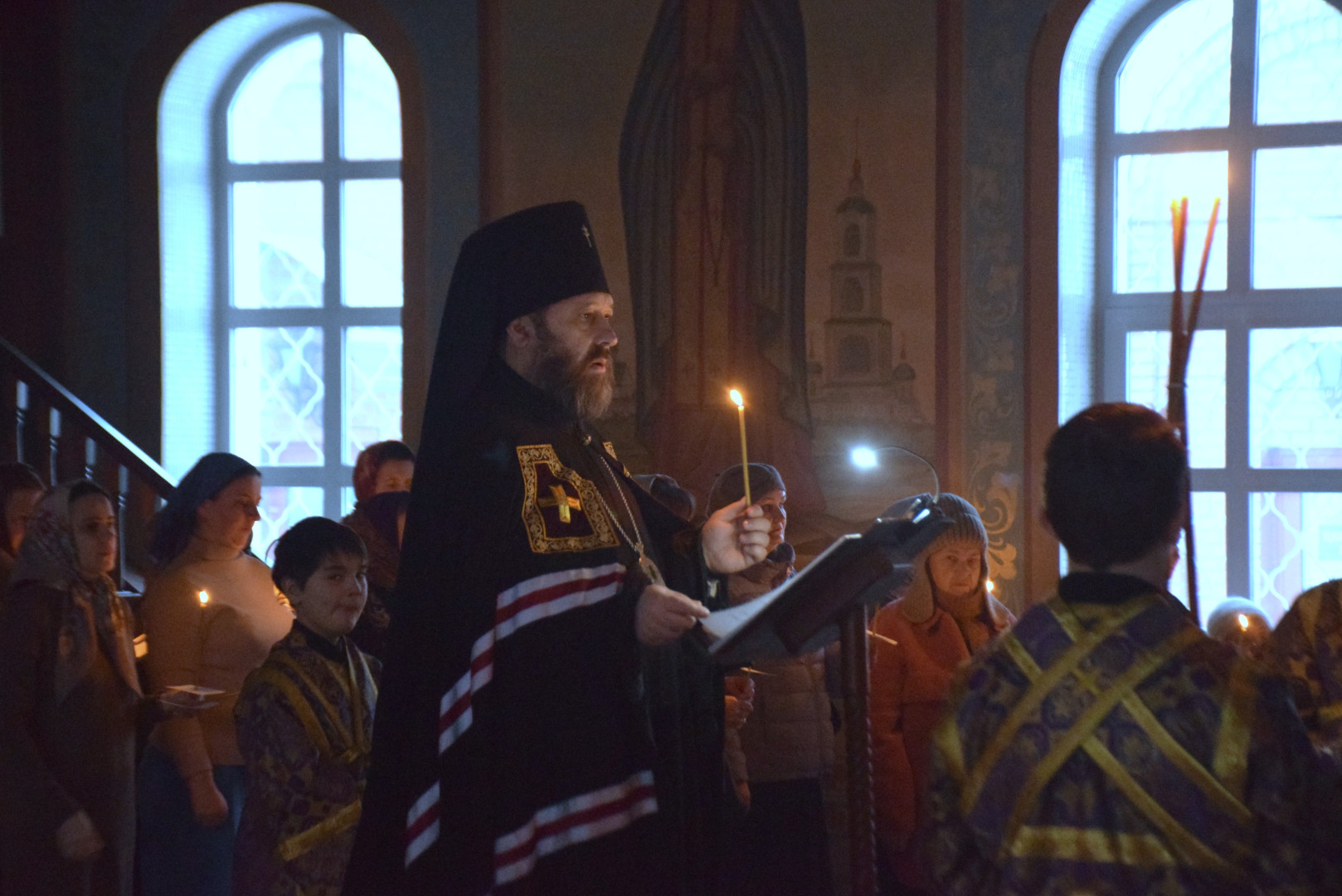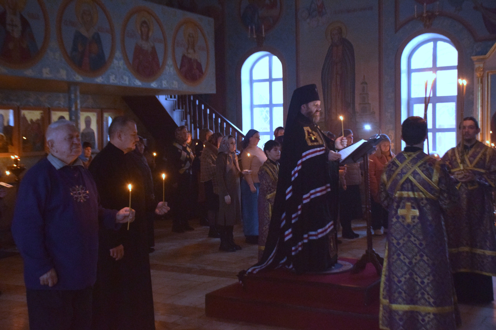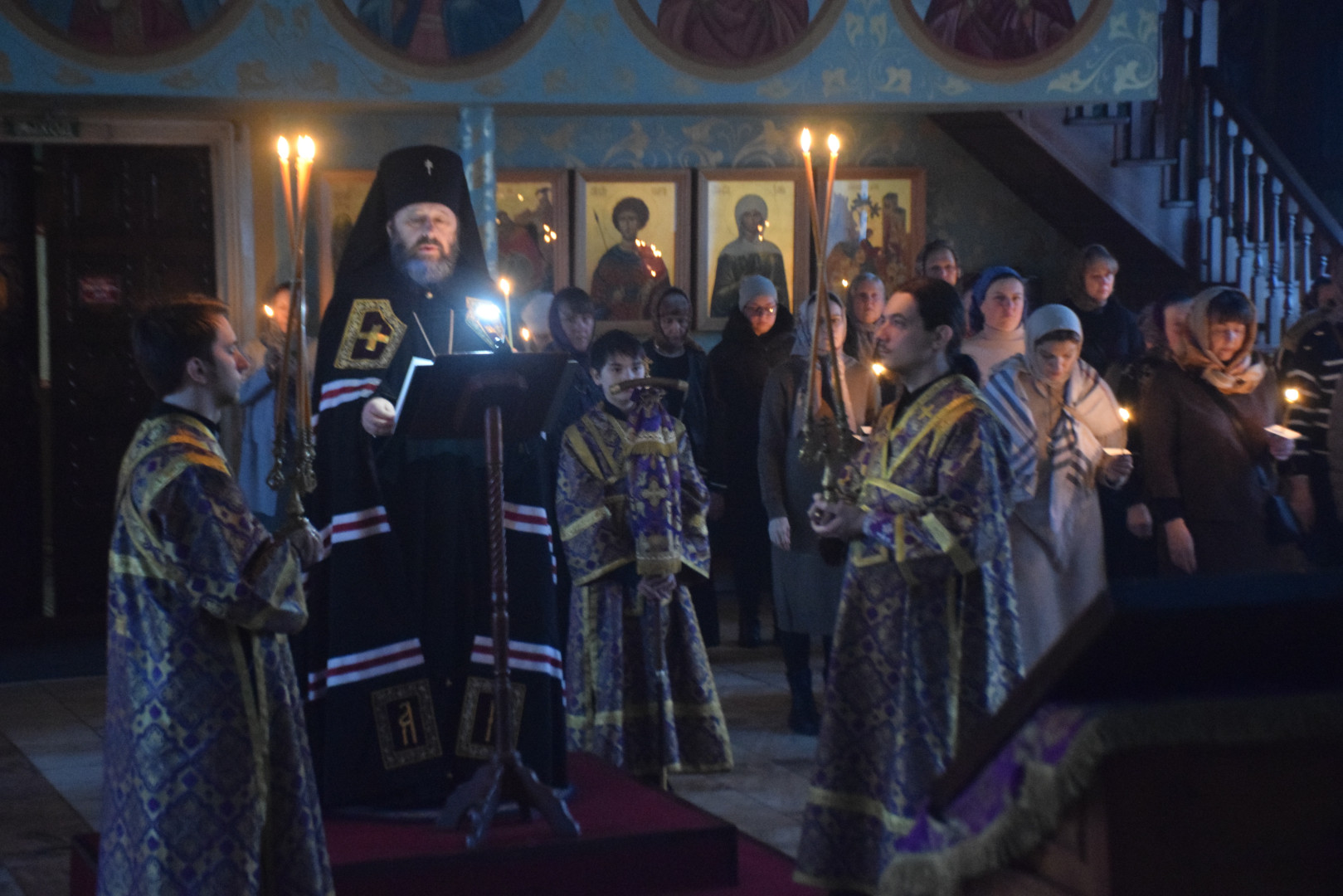 Вечером архипастырь читал Великий покаянный канон преподобного Андрея Критского в Никольском соборном храме в г. Абакане.