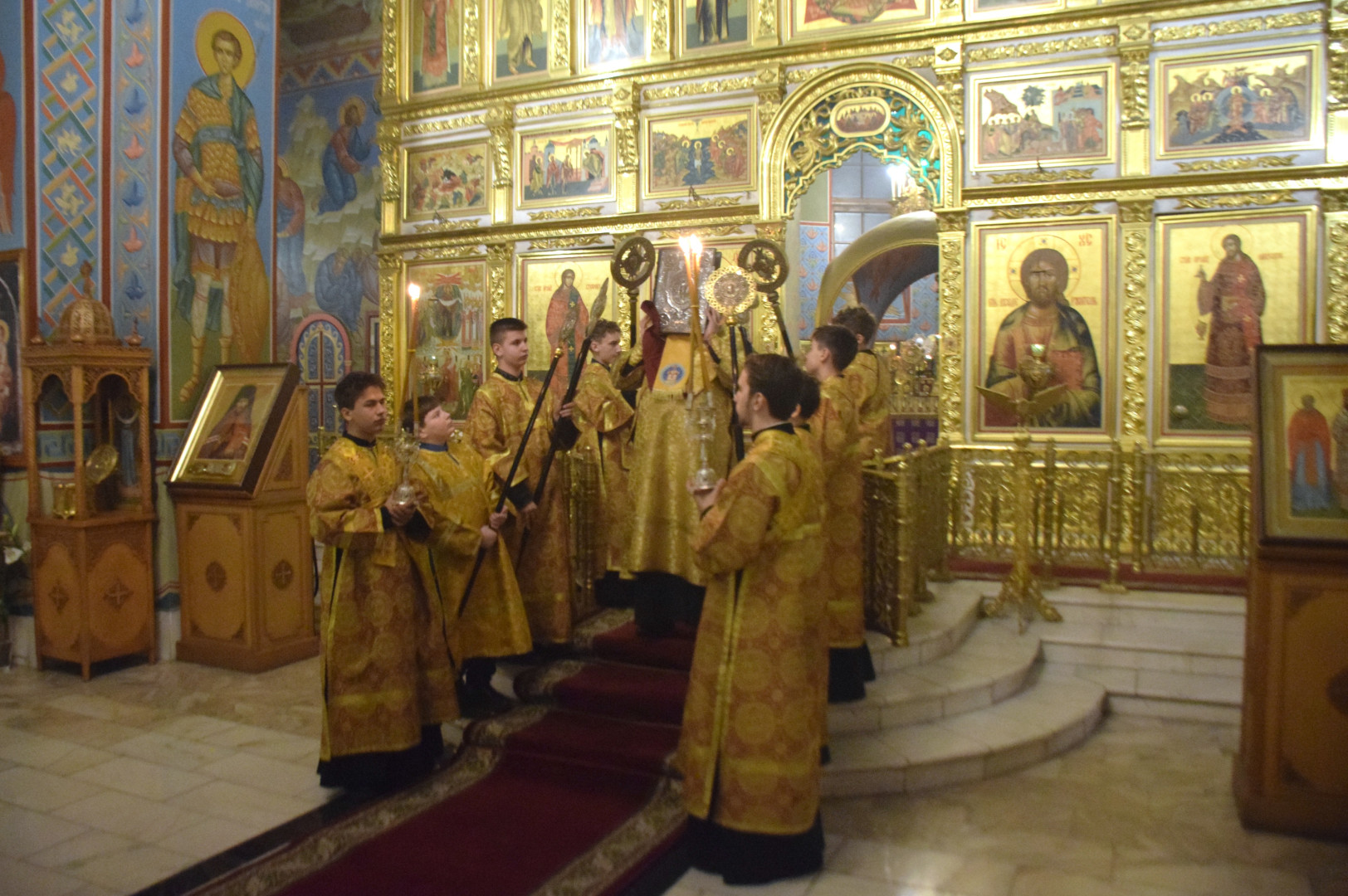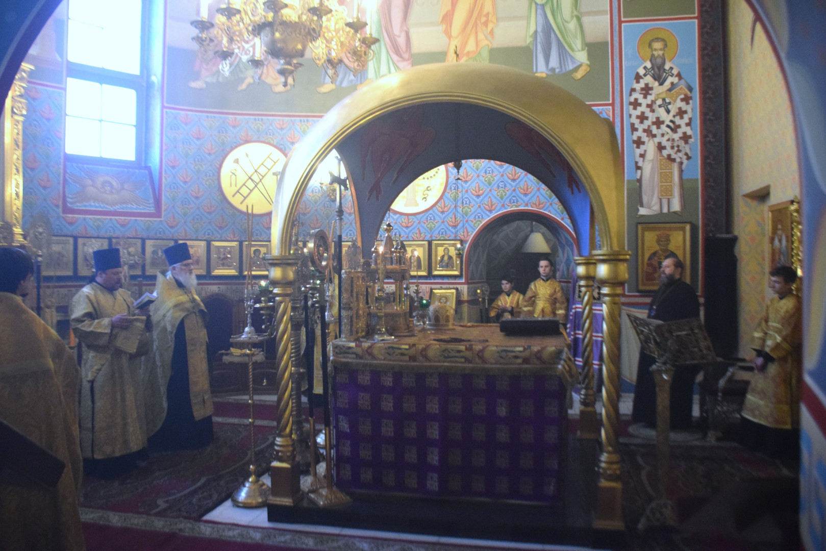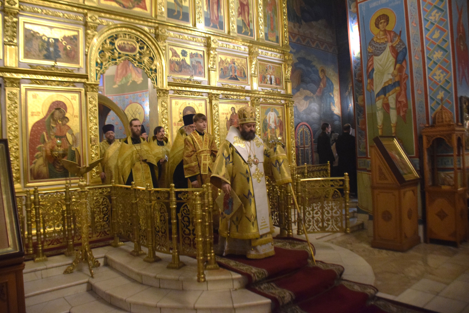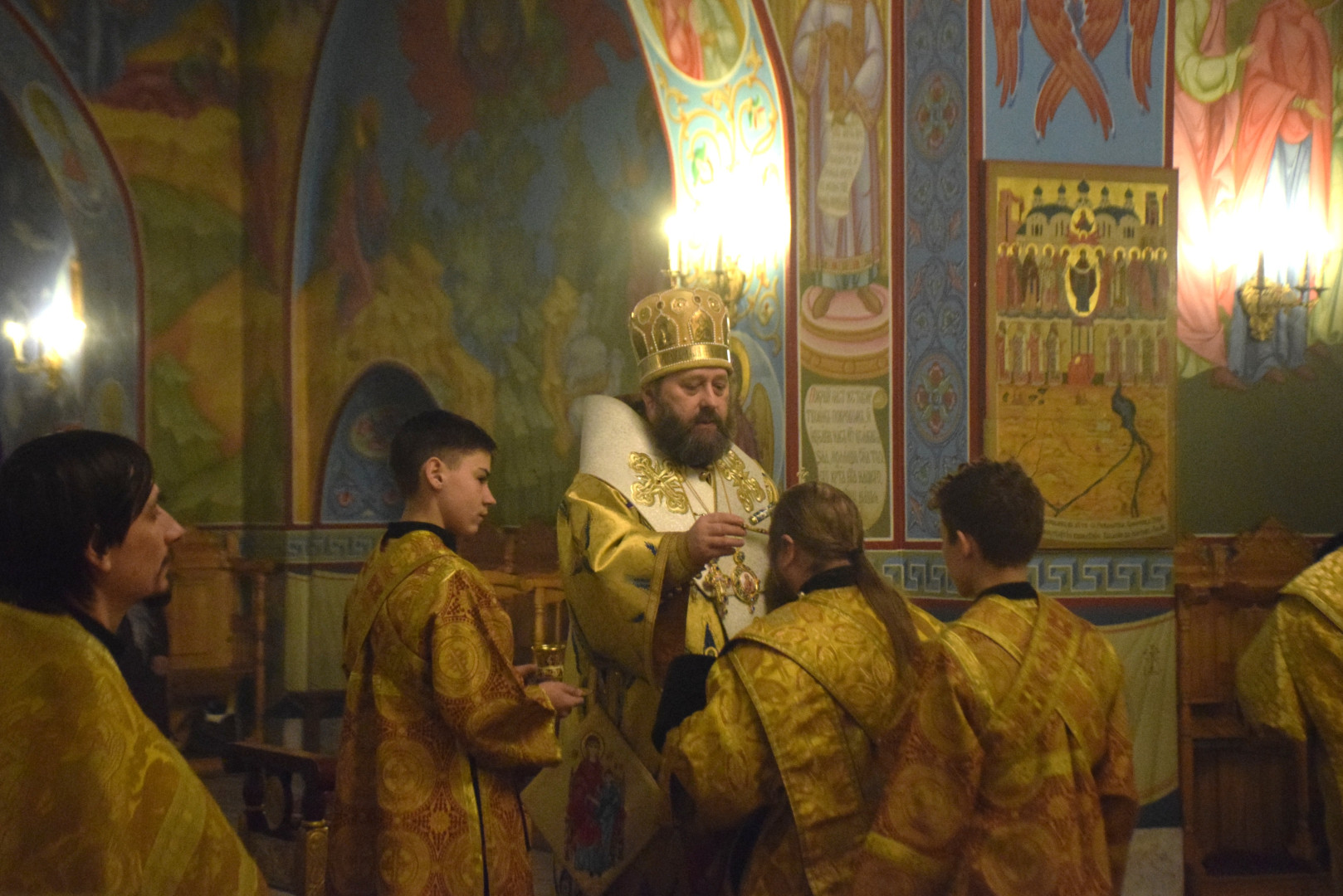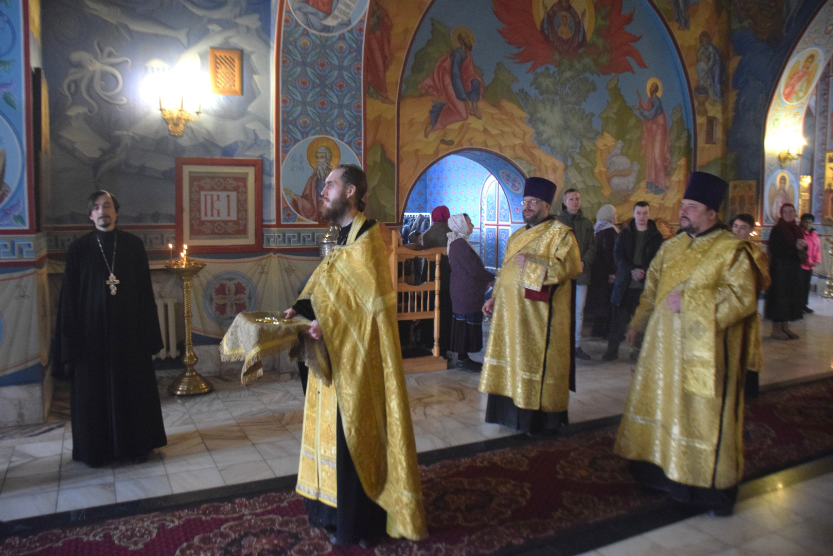 Архипастырю сослужили протоиерей Олег Попов, священники Николай Пугин и Евгений Девятов. Диаконский чин составили протодиакон Андрей Ермаков, диаконы Сергий Симонов, Владислав Бойченко и иеродиакон Нестор (Рыбин). Песнопения Всенощного бдения исполнил архиерейский хор под управлением М. Ермаковой.